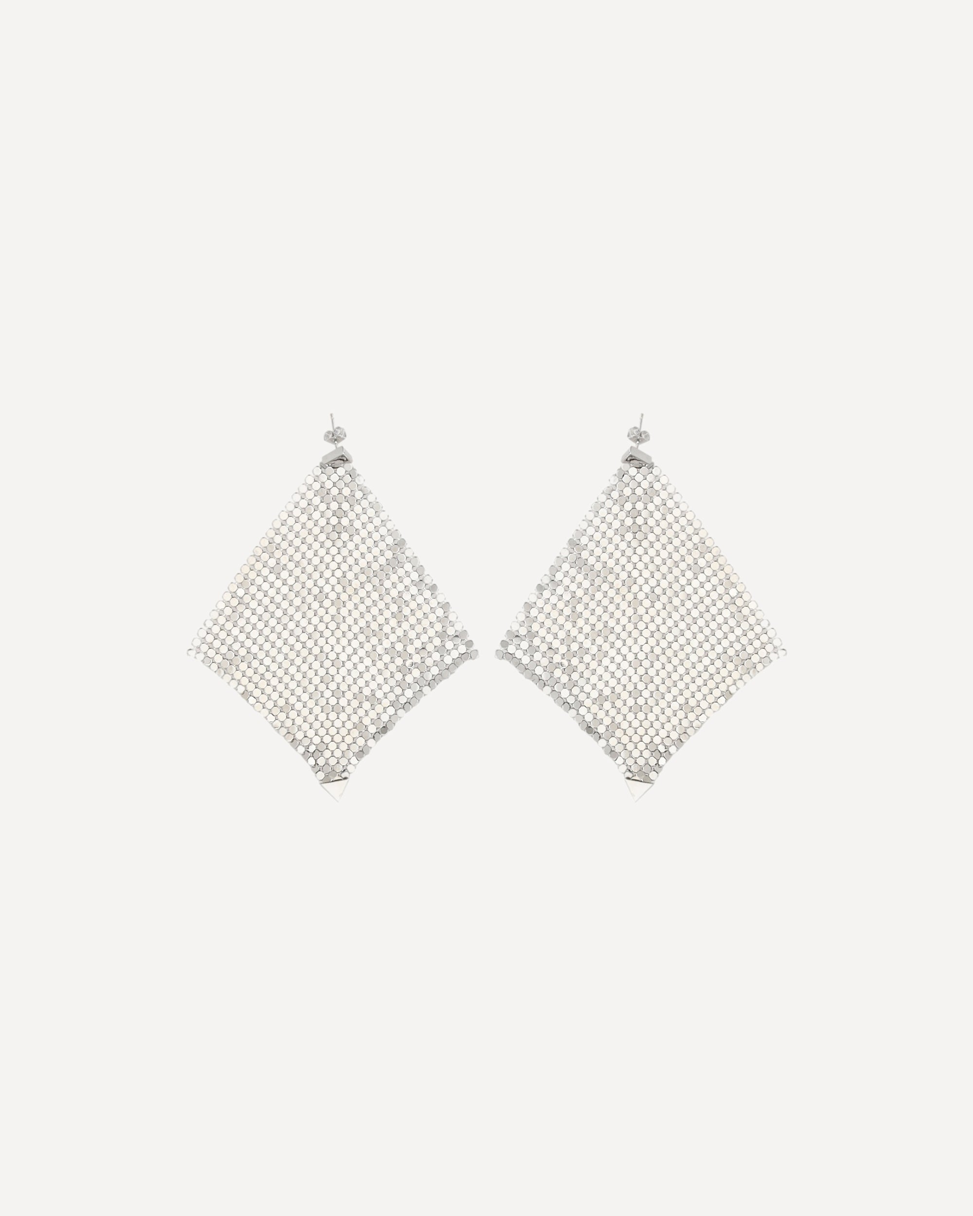 The Pixel Chainmail Earrings by Rabanne feature a classic butterfly clasp for secure application. The chainmail design offers a unique texture, while the square shape falls in an elegant drape, creating a sophisticated and modern effect.