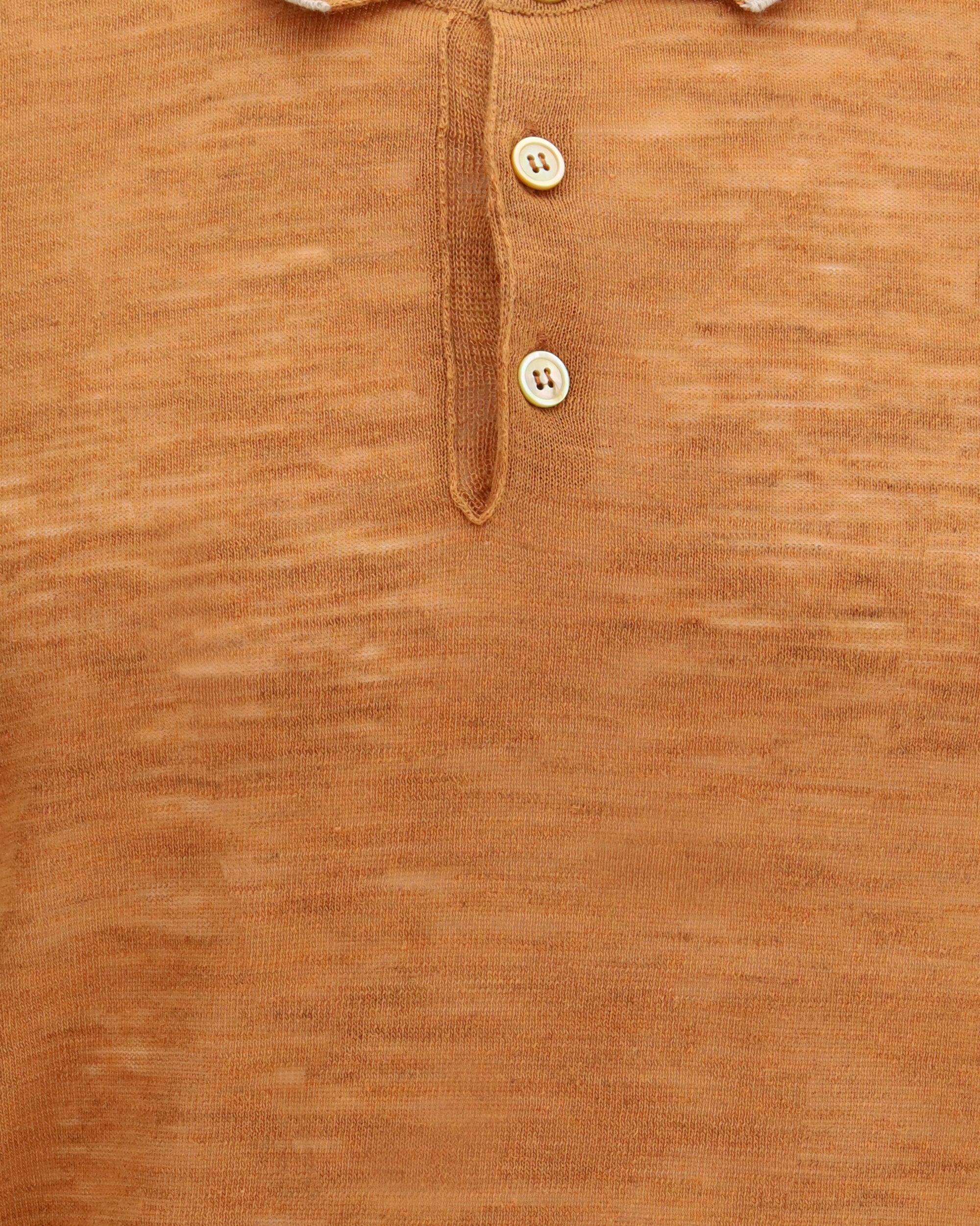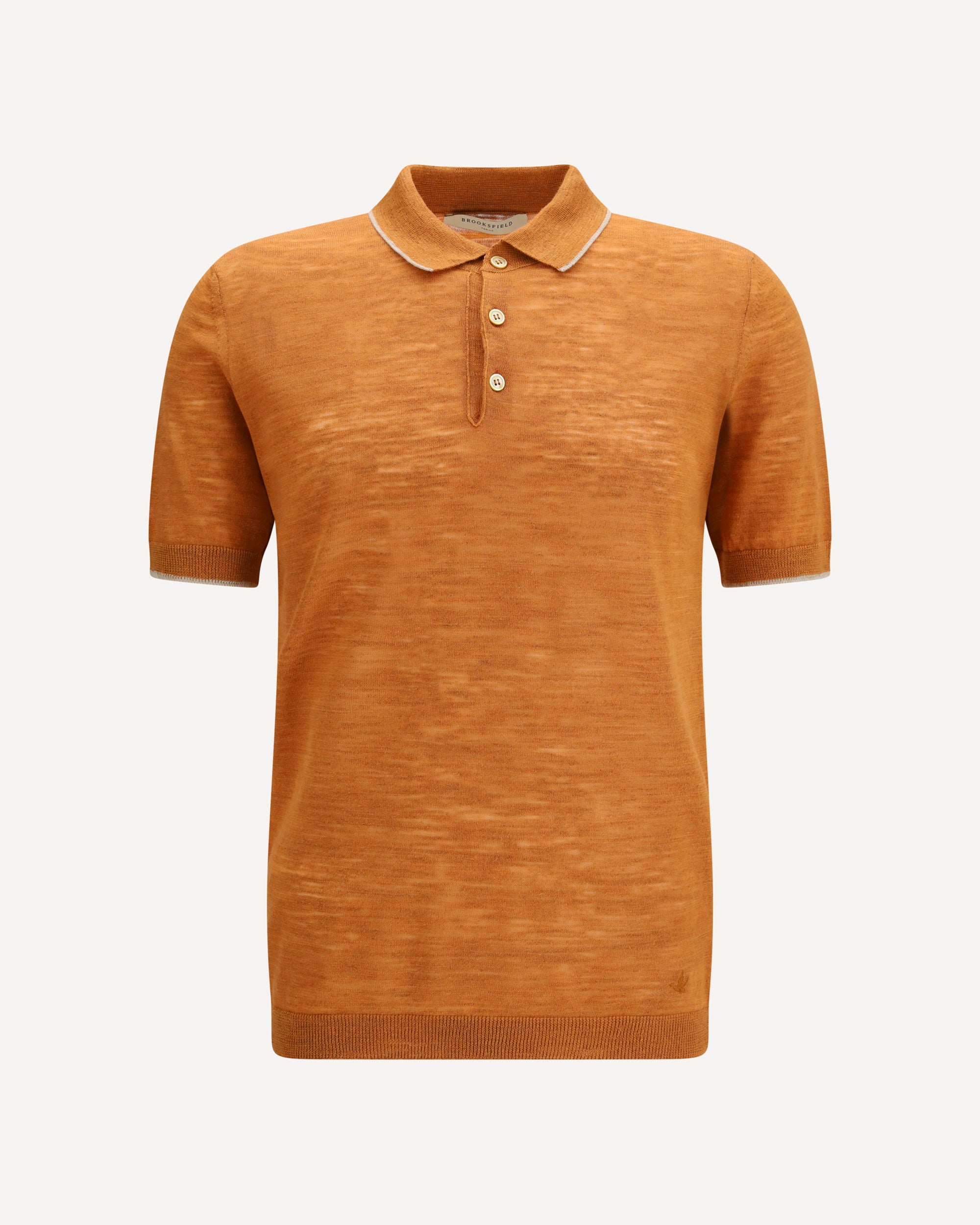 The linen blend Polo Shirt by Brooksfield is a lightweight and versatile garment, ideal for the warmer months. The linen blend fabric ensures freshness and comfort, while the three-button collar adds a classic and refined touch. The hem and sleeve hems are elegantly tailored, while the embroidered logo at the bottom front completes the design with a distinctive and discreet detail.