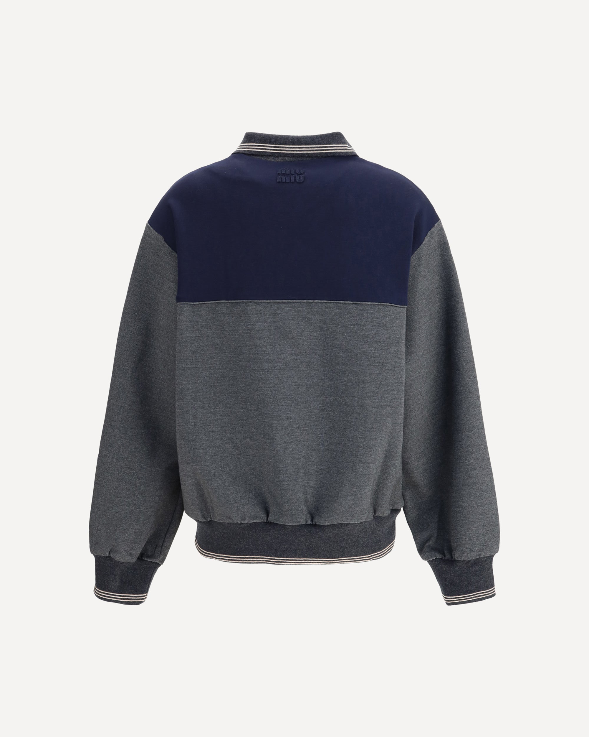 Zip polo Sweatshirt by Miu Miu features a loose, comfortable fit perfect for a casual, modern look. It features long sleeves with knit cuffs, a polo neck and a front zipper closure. Side pockets, a straight hem with knit trim and an embroidered logo complete the design, adding a distinctive and refined touch.
