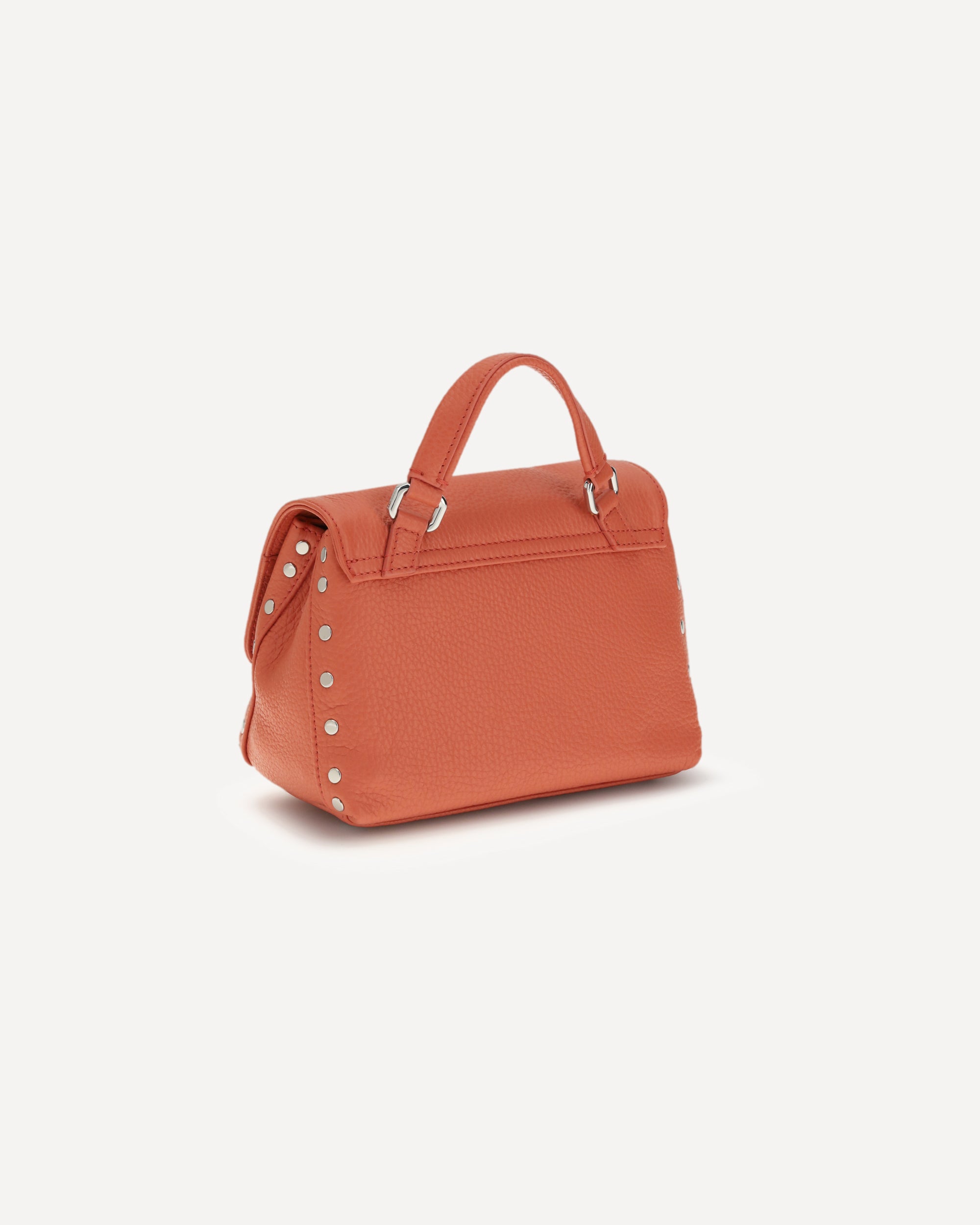 The leather Postina Daily Shoulder Bag by Zanellato is an icon of functional elegance and Italian craftsmanship. Made of grained leather, it is distinguished by its soft, structured design enhanced by refined contrasting metallic studs. Featuring a short leather handle and an adjustable, removable shoulder strap, it offers versatility of use. The front hook-and-eye closure adds a classic touch, while the interior, with a single compartment and flat zippered pocket, provides practicality and order.