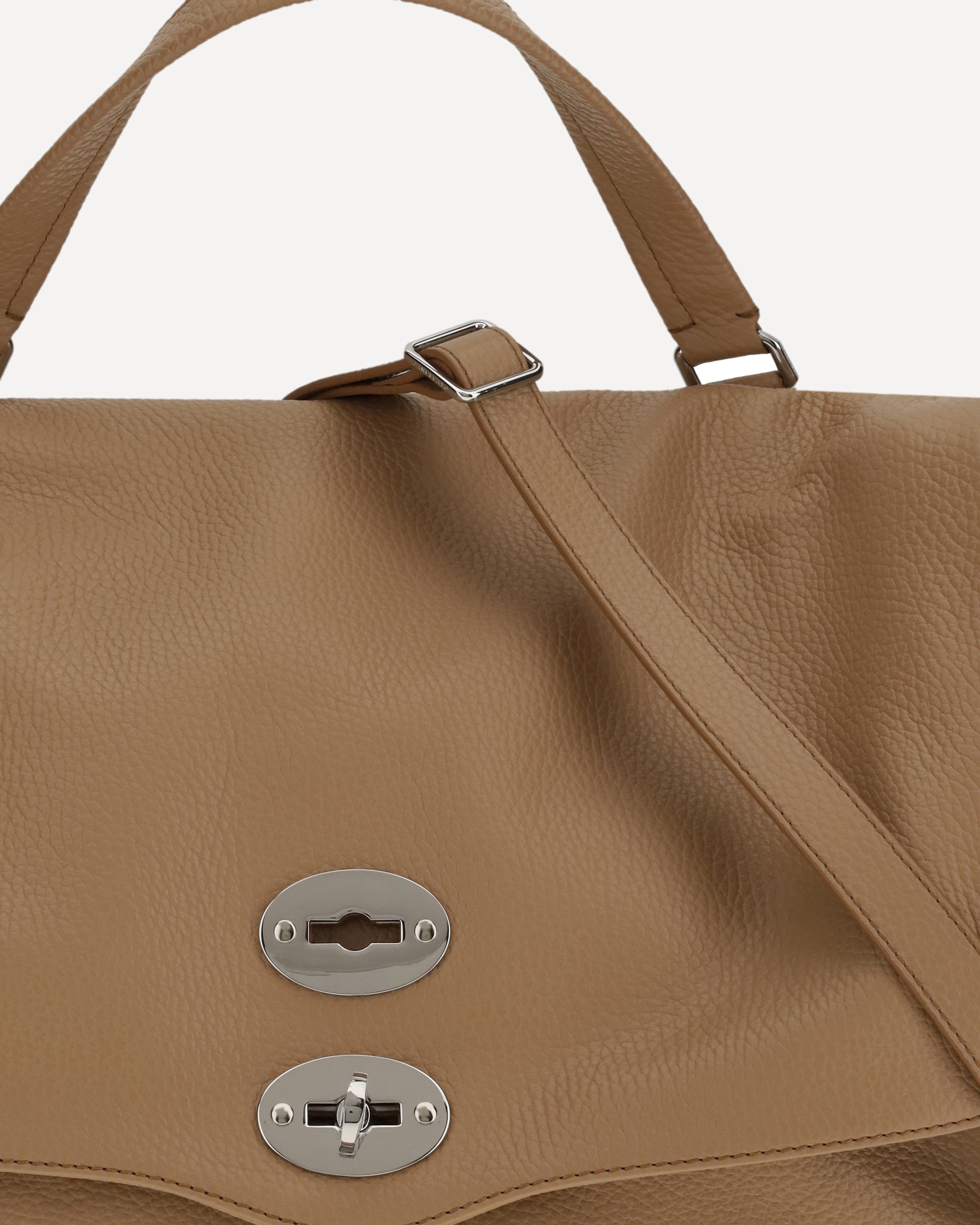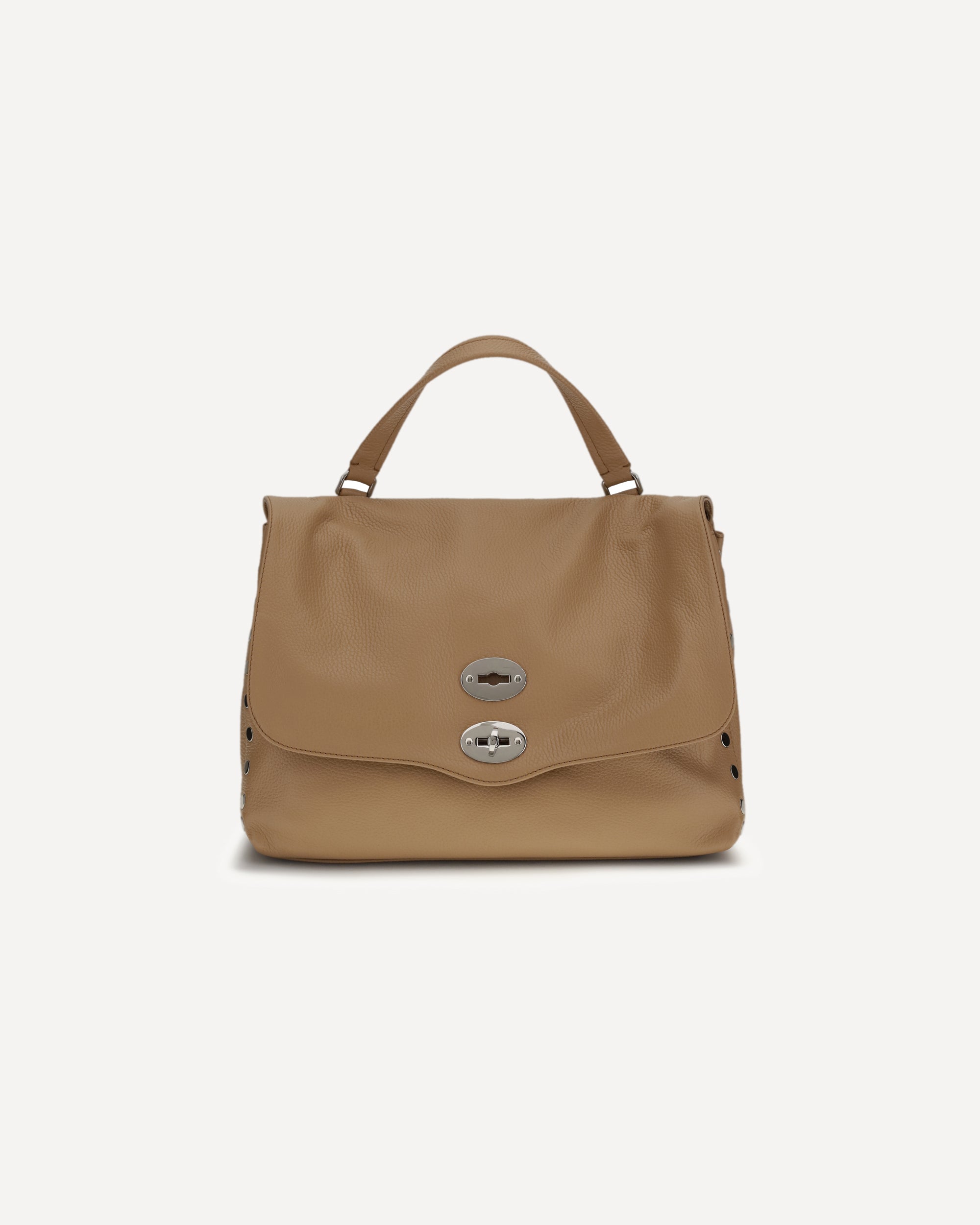 The Postina Daily leather Shoulder Bag by Zanellato is an icon of understated elegance and everyday functionality. Made of soft and durable leather, it features a single flat top handle and a front closure with swivel hook, a distinctive detail of the Postina model. The adjustable, removable shoulder strap offers several carrying options, while flat studs on the side panels add a contemporary touch. The well-organized interior is divided into two compartments with a handy welt pocket designed to neatly store essentials. A versatile accessory, ideal for accompanying the day in style.