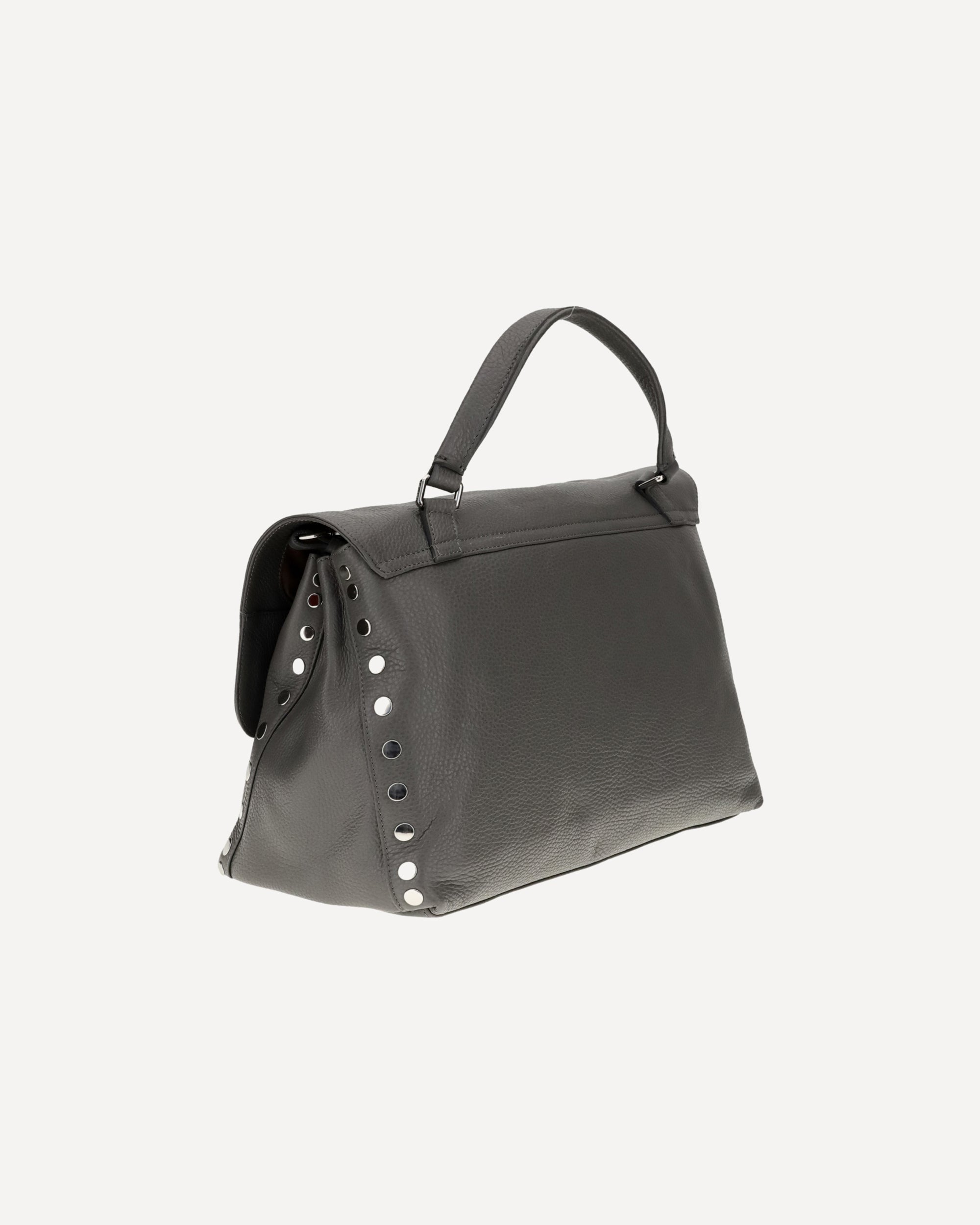 The Postina Daily leather Shoulder Bag by Zanellato is an icon of understated elegance and everyday functionality. Made of soft and durable leather, it features a single flat top handle and a front closure with swivel hook, a distinctive detail of the Postina model. The adjustable, removable shoulder strap offers several carrying options, while flat studs on the side panels add a contemporary touch. The well-organized interior is divided into two compartments with a handy welt pocket designed to neatly store essentials. A versatile accessory, ideal for accompanying the day in style.