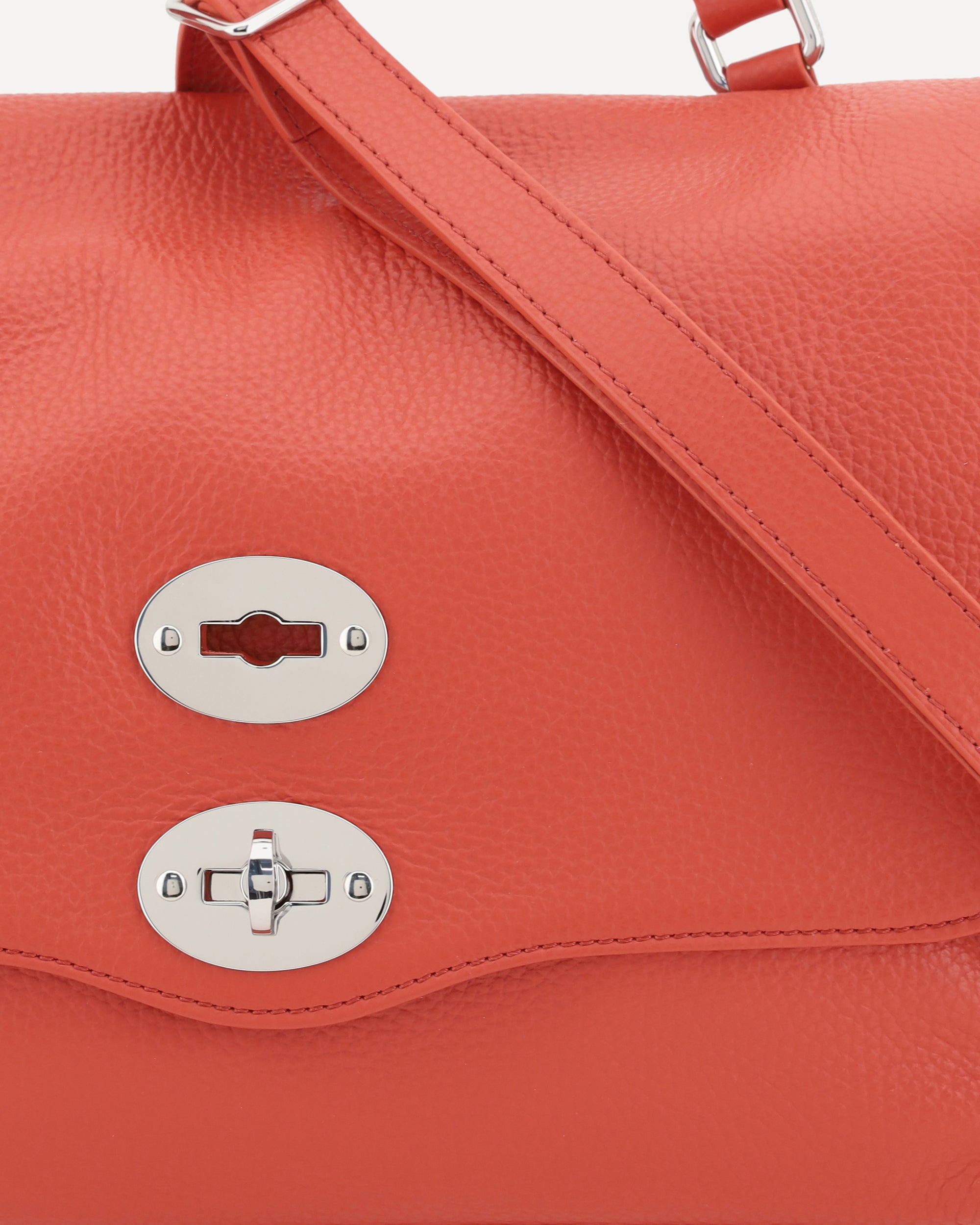 The leather Postina Daily Shoulder Bag by Zanellato is an elegant example of functionality and refined style. Featuring a single flat leather handle on top, it offers a front swivel hook closure that adds a touch of practicality. The adjustable and removable shoulder strap allows for different modes of use, while flat studs on the side panels add a characterful accent. Inside, two compartments and a welt pocket offer ample organization, making this bag an accessory as chic as it is functional.