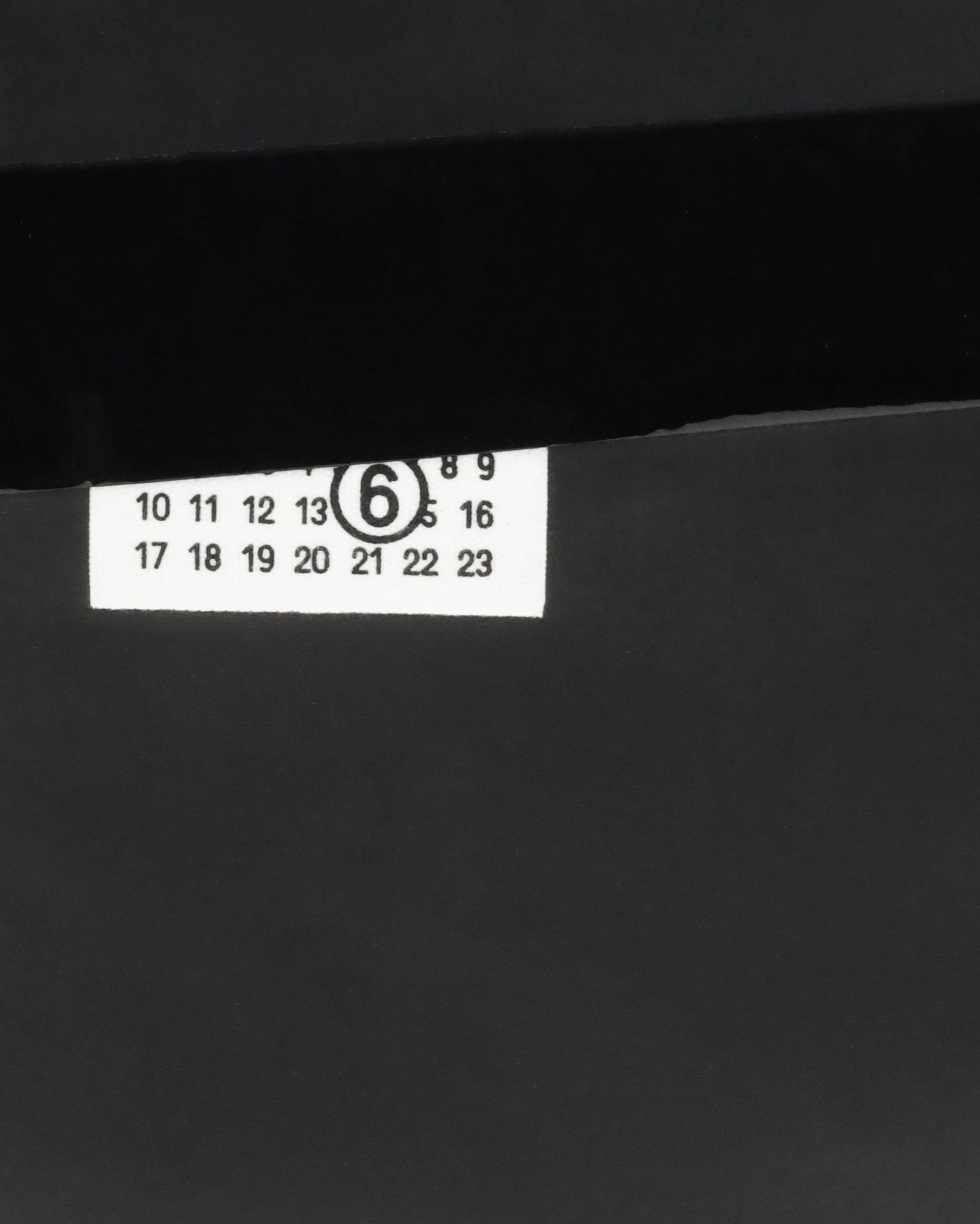 The Handbag by MM6 Maison Margiela stands out for its minimalist design enriched with conceptual details. Featuring a large rectangular shape, it has a zip closure and a bold textured finish. The front logo patch is partially covered with a strip of tape, a direct nod to the brand’s signature deconstructed aesthetic. A spacious, statement accessory perfect for completing contemporary looks.