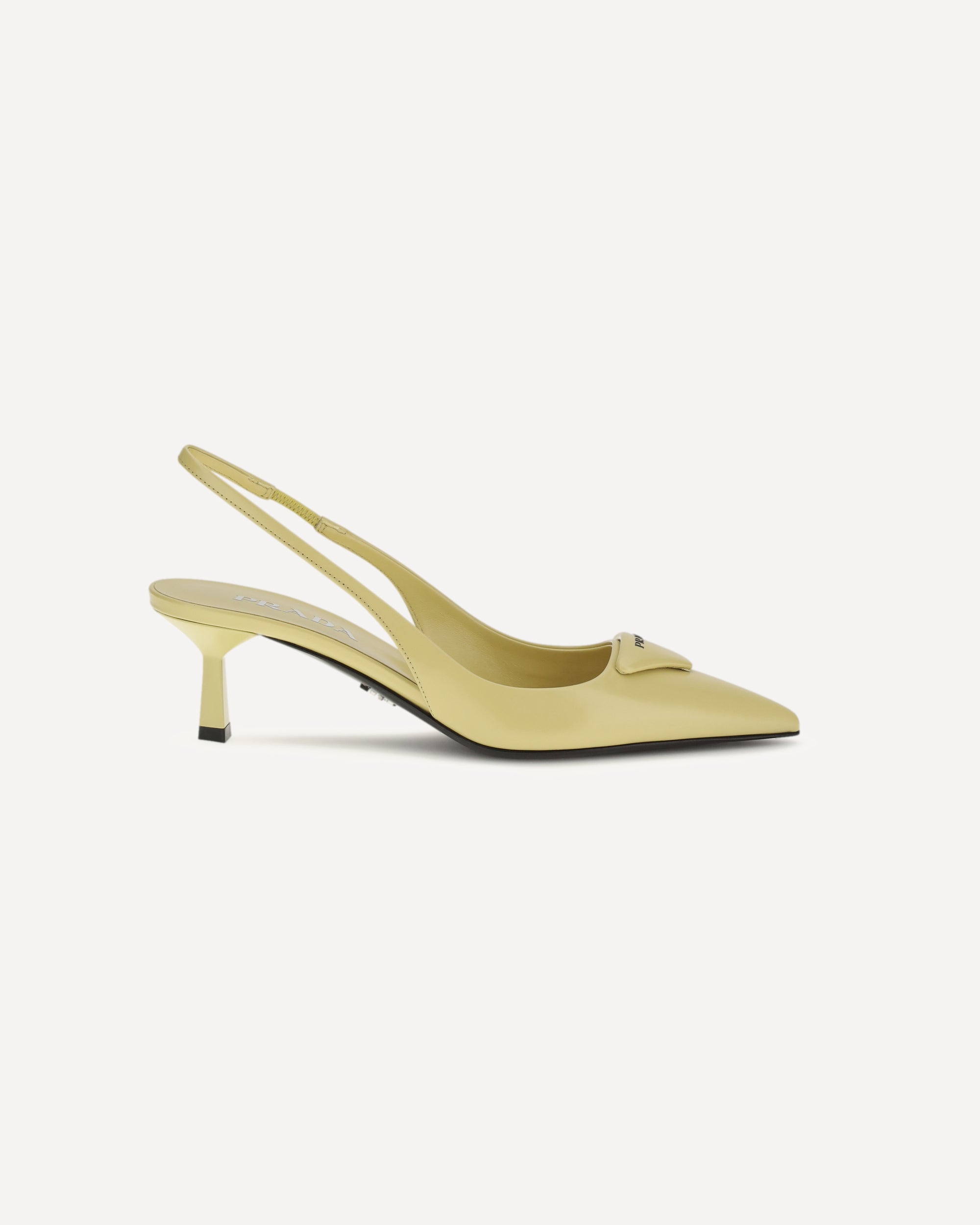 The slingback Pumps by Prada are crafted from smooth leather with a refined glossy finish, featuring the iconic tonal leather triangle logo on the front. The pointed toe adds elegance to the shoe, while the elastic ankle strap ensures a comfortable and secure fit. The logo label on the inside adds a further touch of distinctiveness, making these pumps a must-have for those seeking a blend of class and everyday comfort.