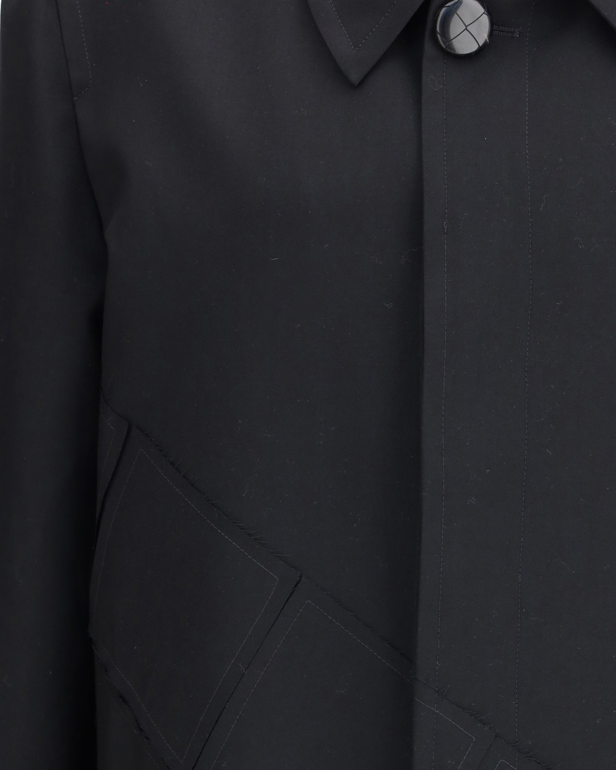 Namacheko's Patchwork Coat combines craftsmanship and structure in a visually striking garment. Featuring a classic collar and front button closure, it has two side welt pockets with flaps. Applied quilted patchwork on the front lends character and uniqueness to the design, while the center back slit adds freedom of movement. The knee length completes a refined and distinctive look.