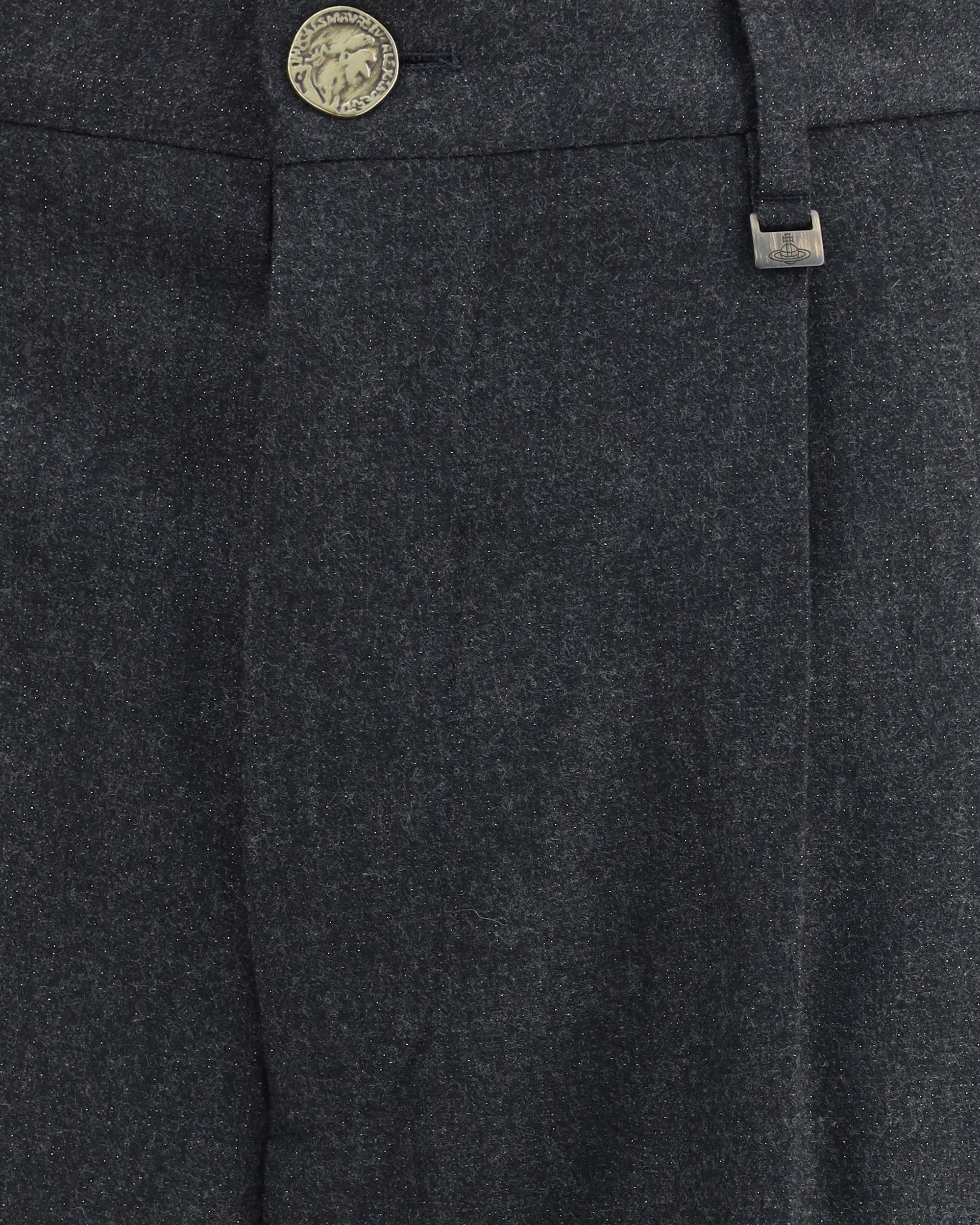 Vivienne Westwood's Rafael Pants are made of soft brushed wool with a stylish metallic finish. The high-waisted style features a band with belt loops, gold button and zipper closure. The wide leg is enhanced by refined ironed pleats, while side slit and back welt pockets complete the design with a tailored touch.
