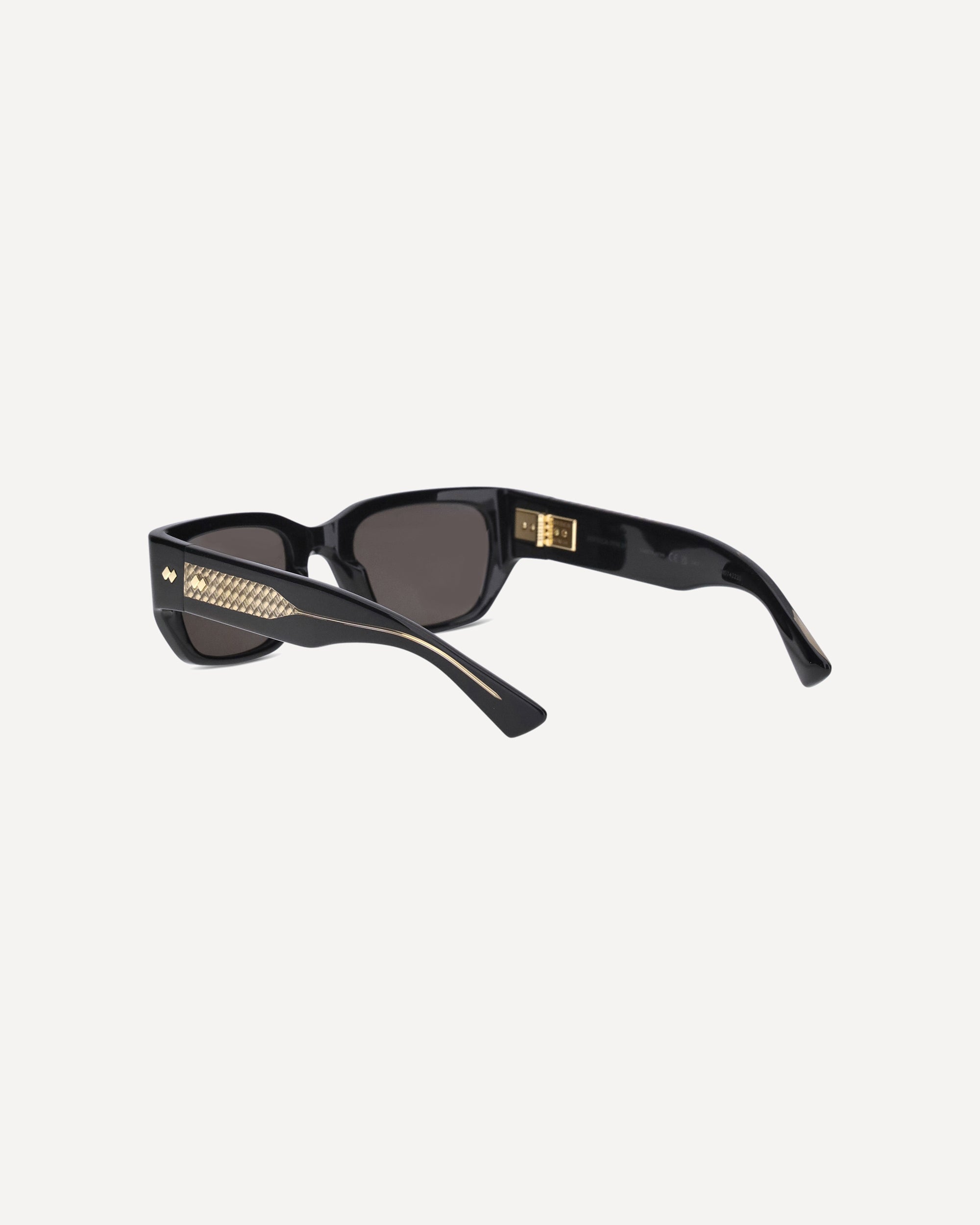 The Intrecciato Square Sunglasses by Bottega Veneta combine sophisticated design and sustainability. Made of acetate with 27 percent recycled materials, they feature gold-finish interior details and an Intrecciato pattern. The frame features a gold metal core that echoes the emblematic Intrecciato pattern, combining handcrafted elegance and environmental awareness in a unique and distinctive accessory.