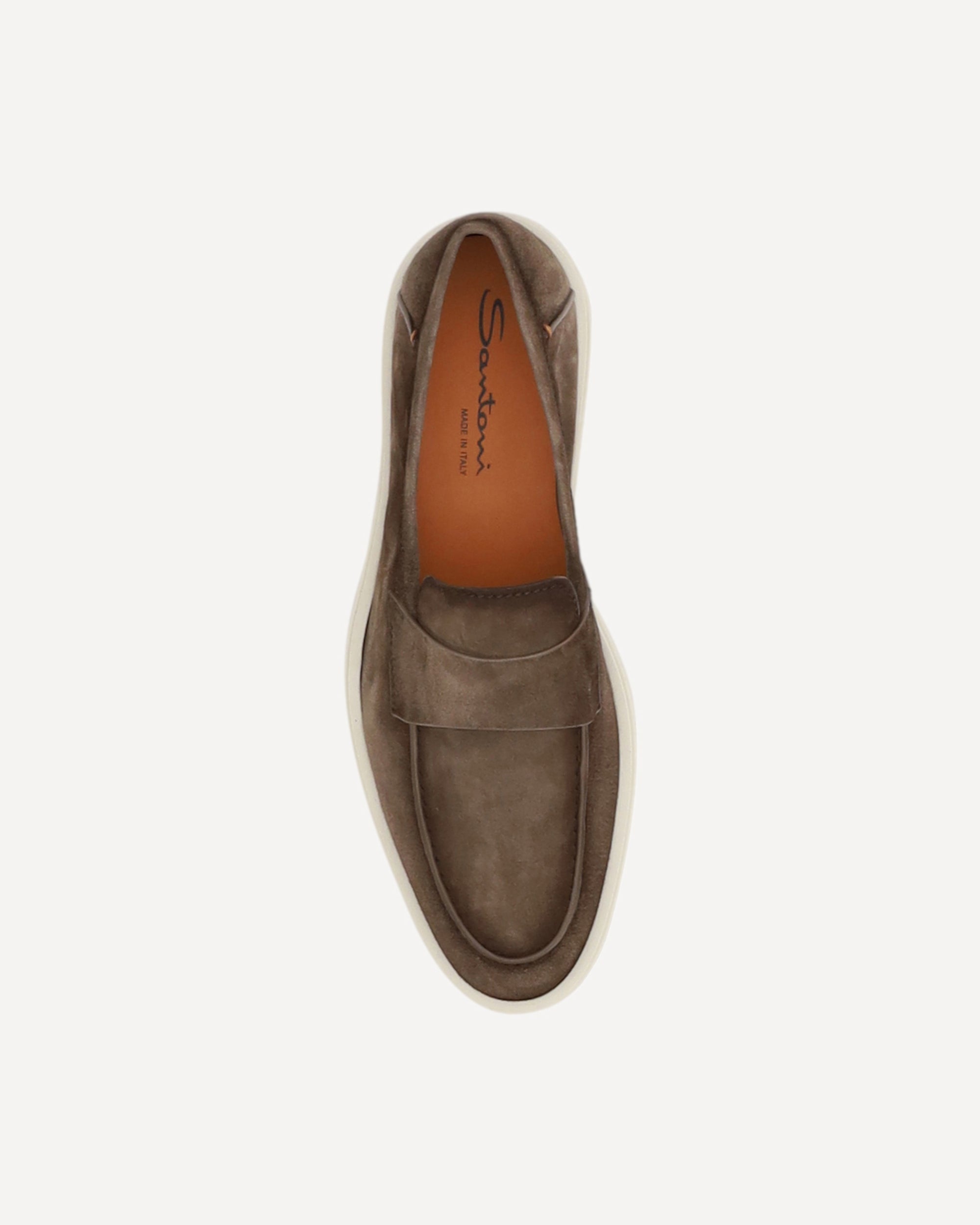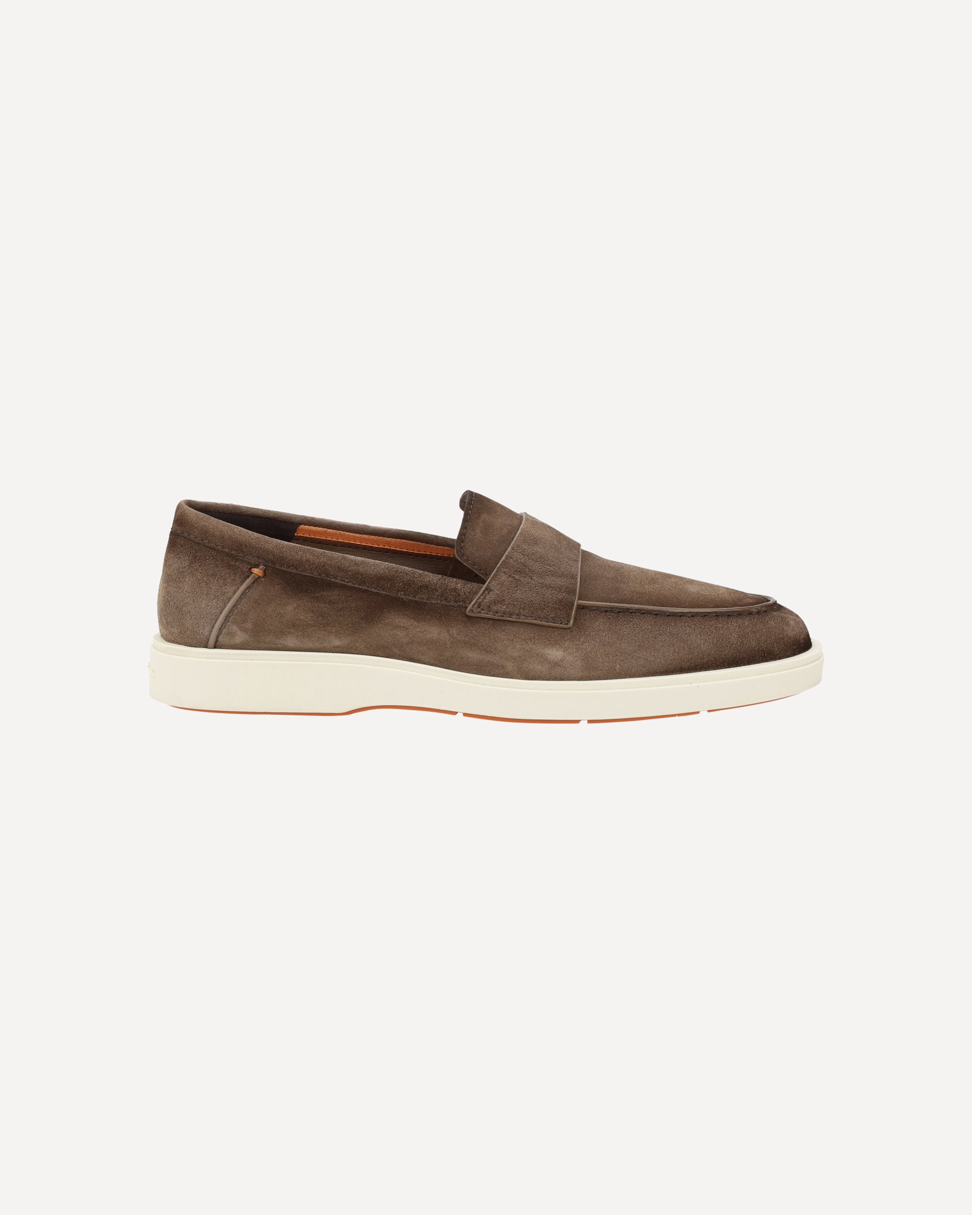 The suede Loafers by Santoni feature a refined and elegant design, with tone-on-tone stitching adding a touch of understated sophistication. The contrasting flat rubber sole not only provides comfort, but also gives them a modern and dynamic look. The slip-on design makes them practical and easy to wear, while the soft suede ensures a comfortable fit.