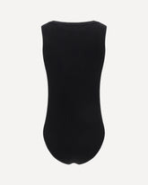 Alaïa's Bodysuit is an elegant and versatile piece, featuring a sleeveless camisole pattern that enhances the silhouette. The ribbed crew neck adds a touch of sophistication, while the ribbed design gives an interesting texture and sculptural effect to the fabric. A bodysuit that combines the comfort of knitwear with the brand's typical elegance.