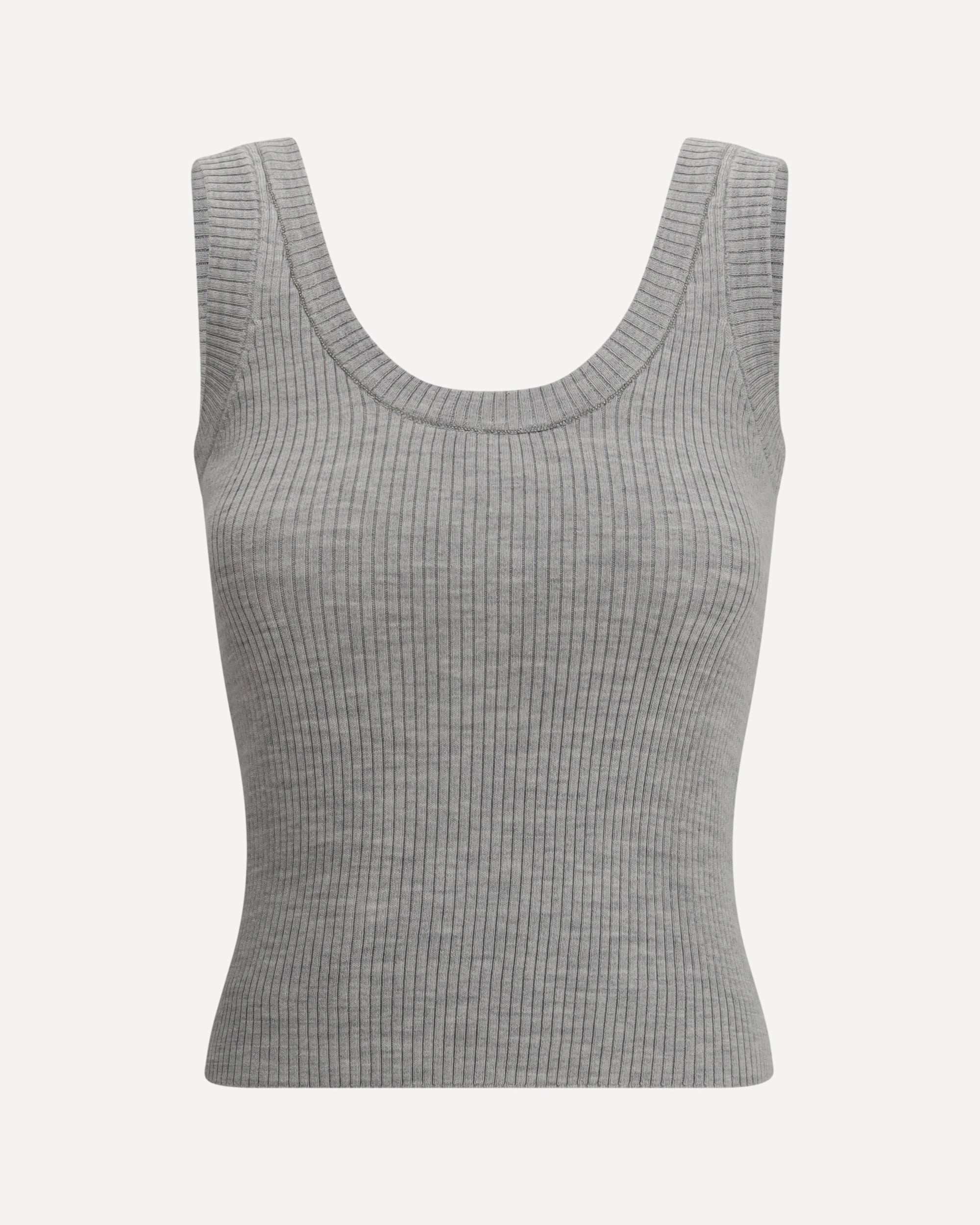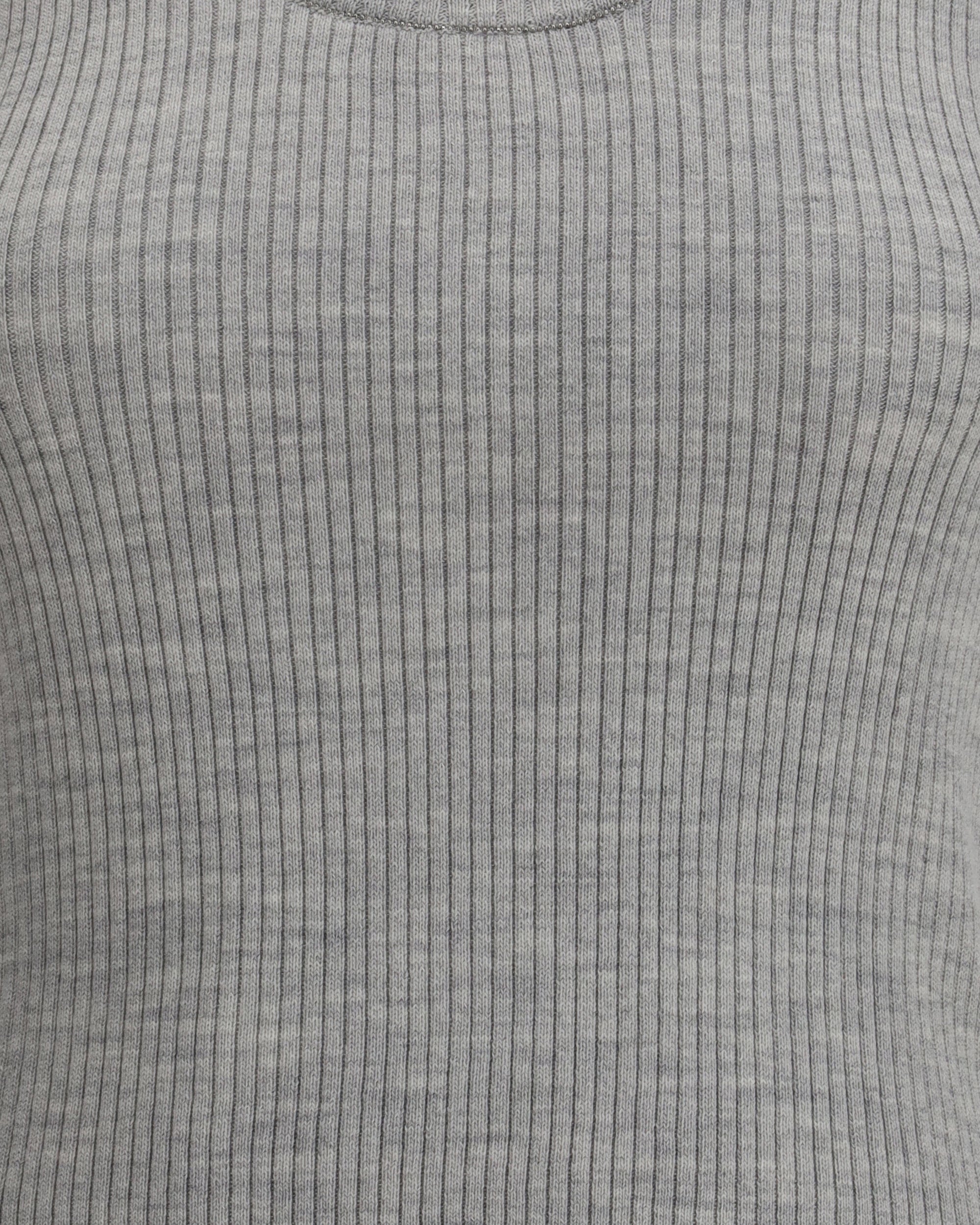 Brunello Cucinelli's ribbed tank top is an essential garment with a refined style, featuring a round neckline and a mélange pattern. The ribbed work and mélange texture lend movement and character, making it perfect either on its own or under lightweight jackets.