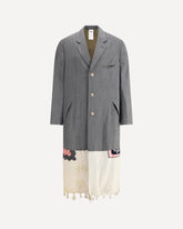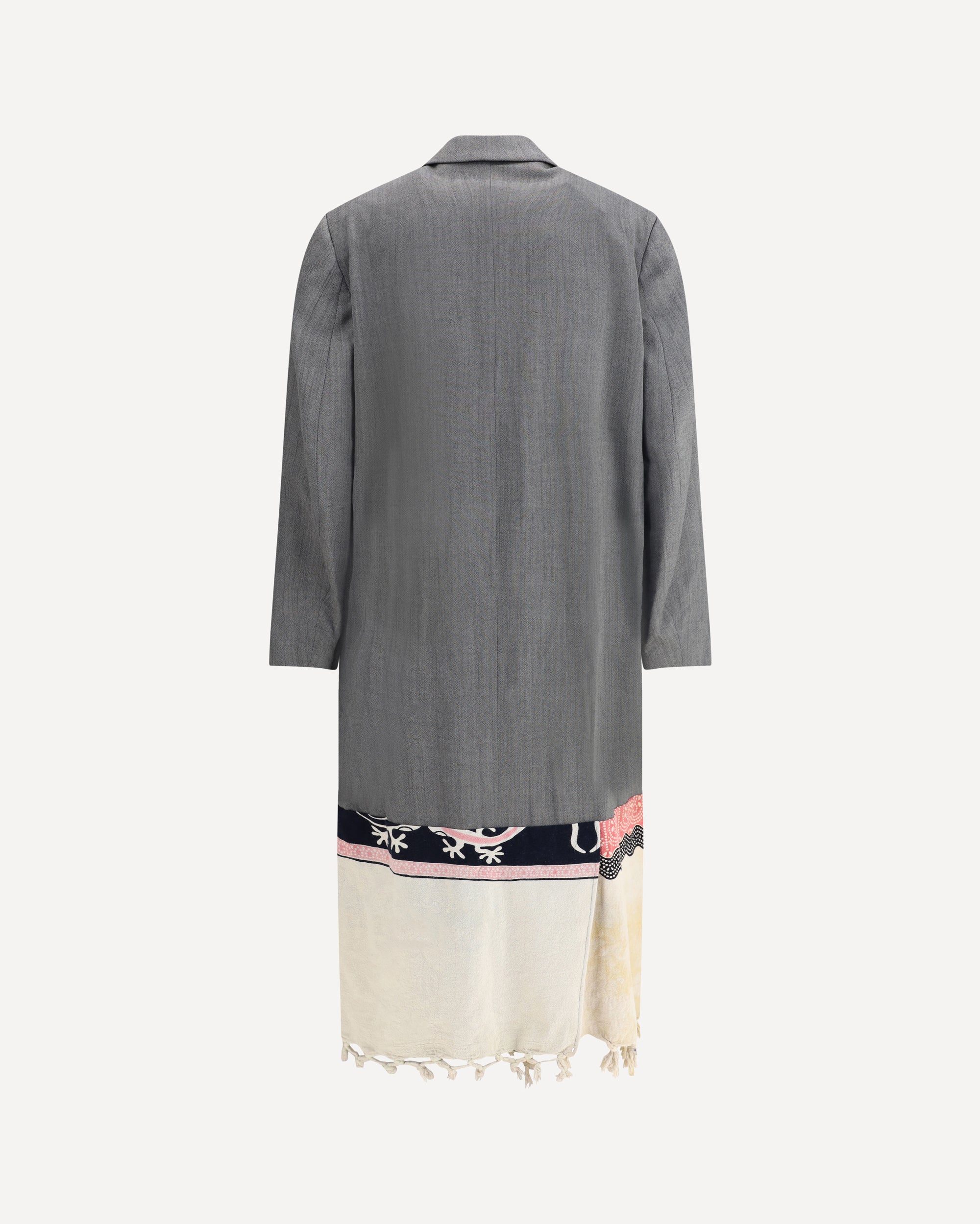 Magliano's virgin wool Riccione Coat is an elegant and sophisticated garment made from high-quality virgin wool to ensure warmth and comfort. The classic lapels add a touch of sophistication to the design, while the front button closure enhances the traditional, chic style. The two side welt pockets offer practicality, while the slit breast pocket adds an additional style detail. The pareo patterned end of the coat lends a distinctive, modern touch, while the back slit provides more freedom of movement. The loose fit makes it perfect for an elegant yet comfortable look, ideal for formal or casual-chic occasions.