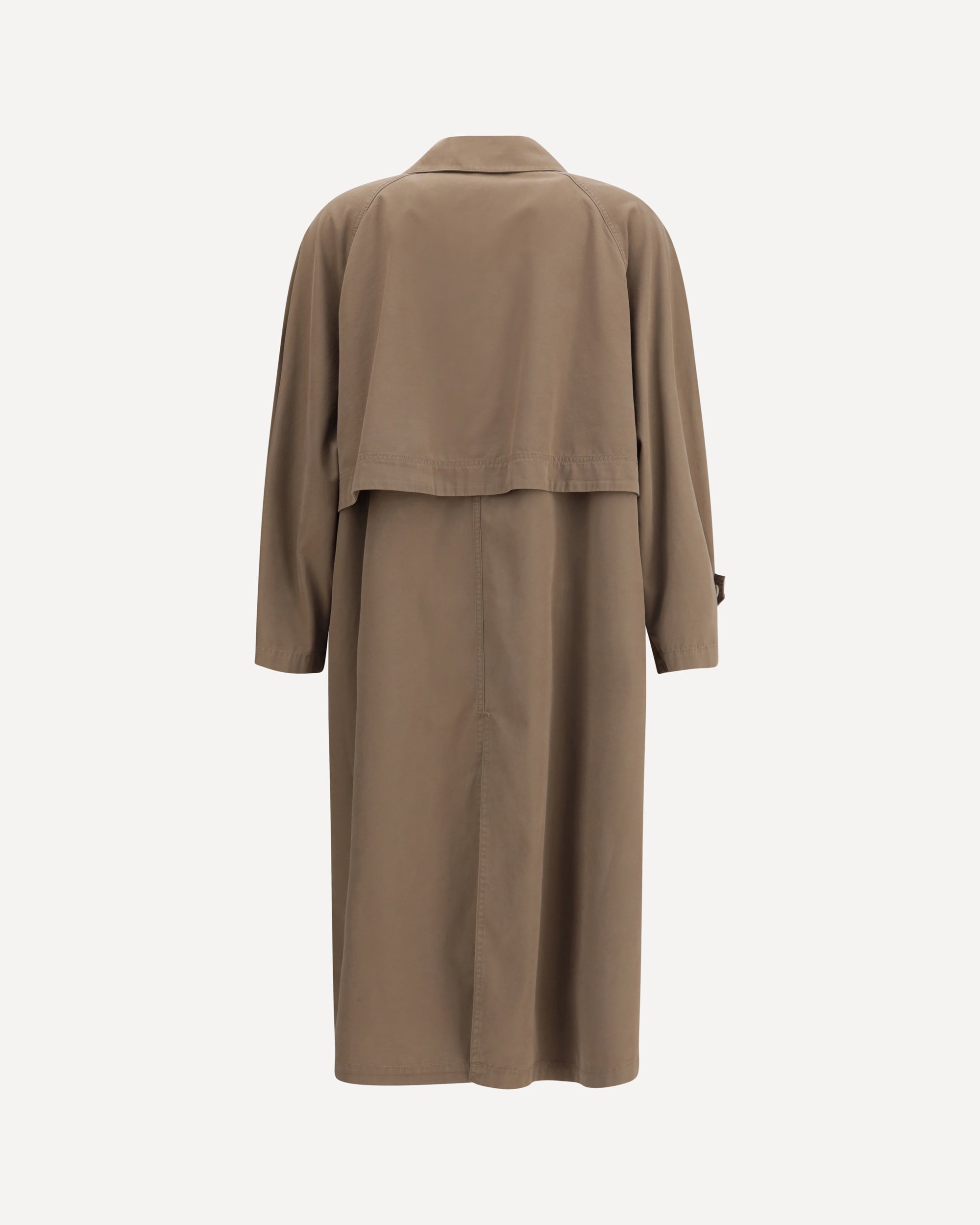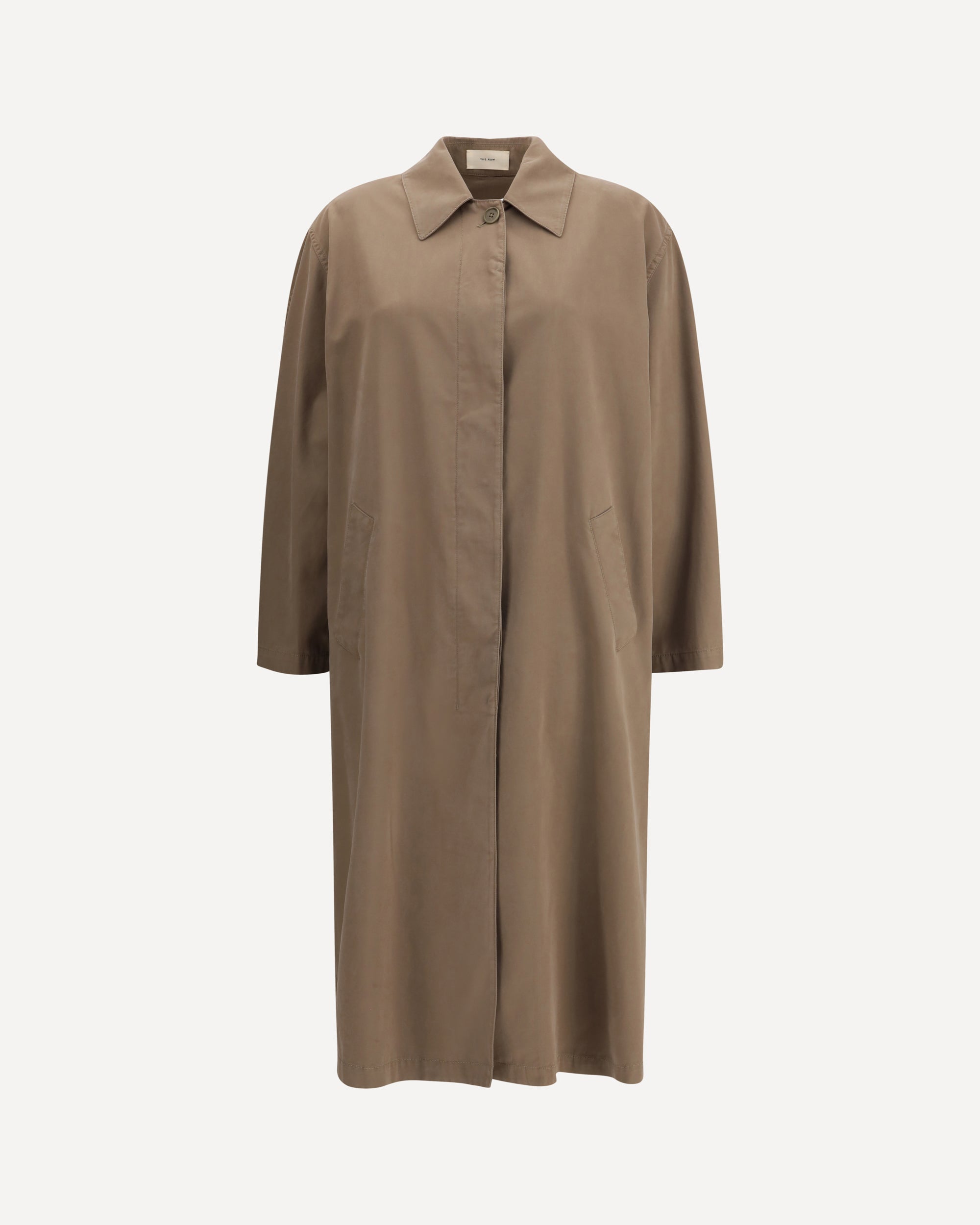 The Row's Rocco Coat by The Row is a sophisticated piece with an essential silhouette and oversized fit. Crafted from soft cotton and cashmere gabardine, it features a calf length, welt pockets on the front and an elegant hidden button placket. A minimalist and refined design, perfect for timeless style.
