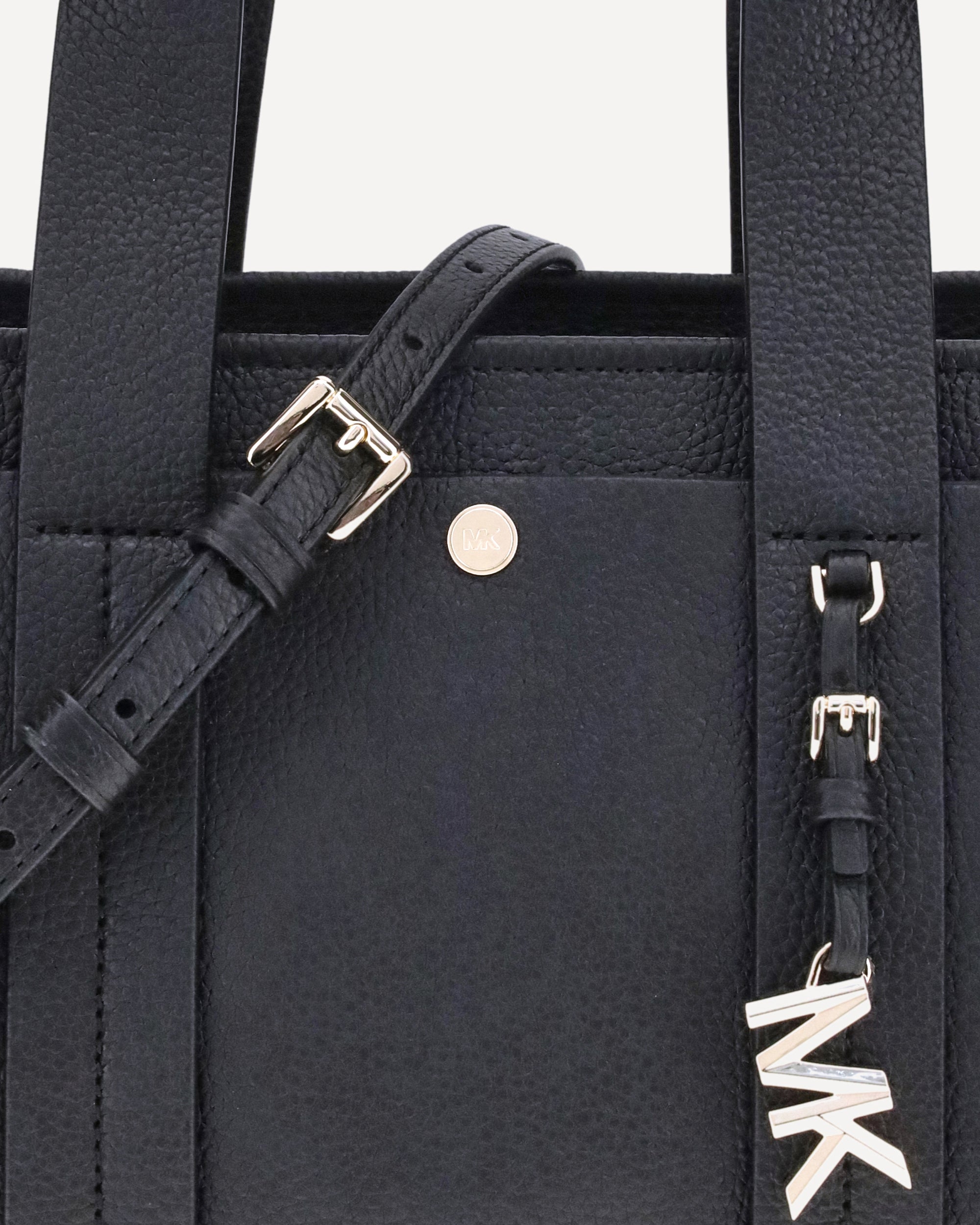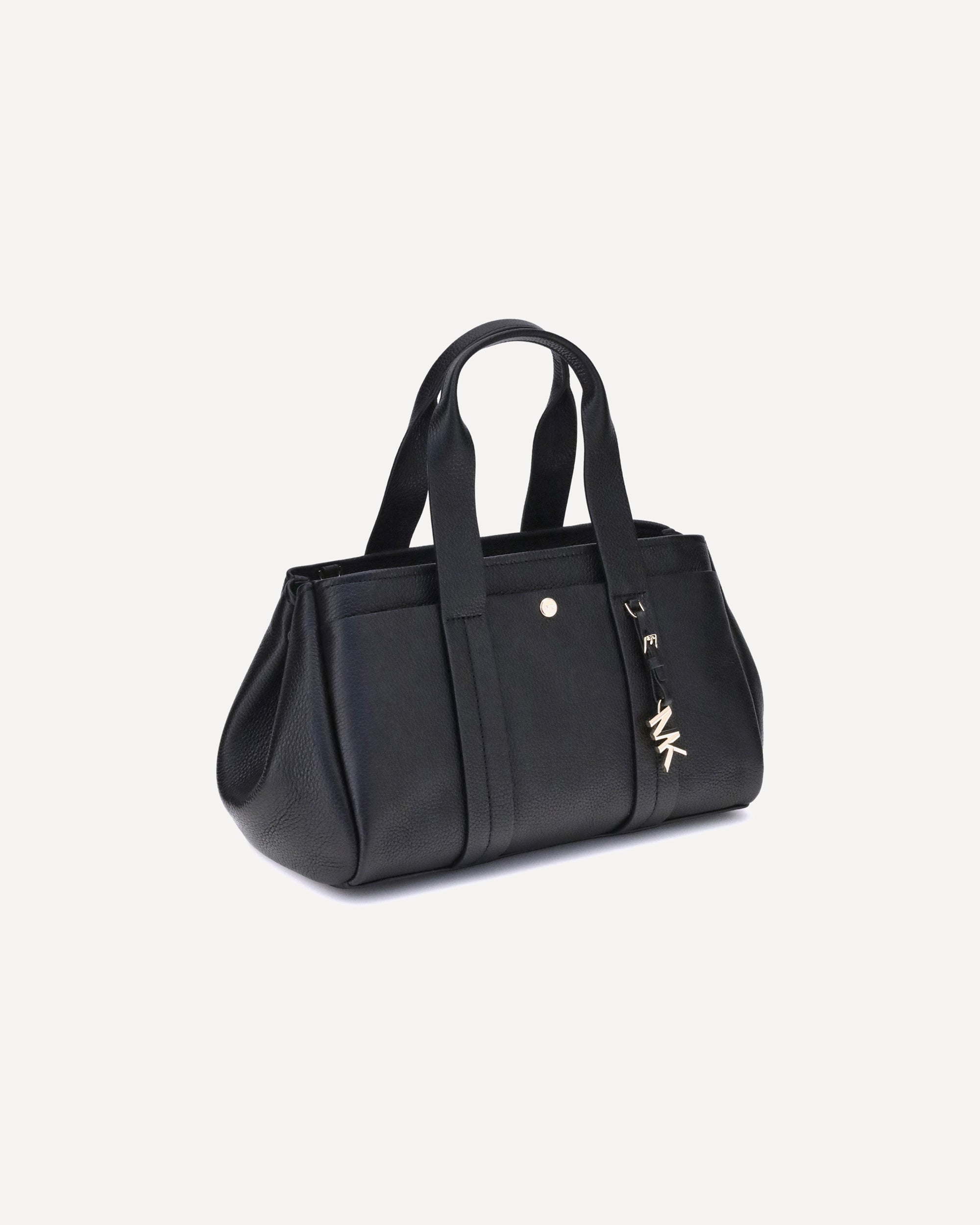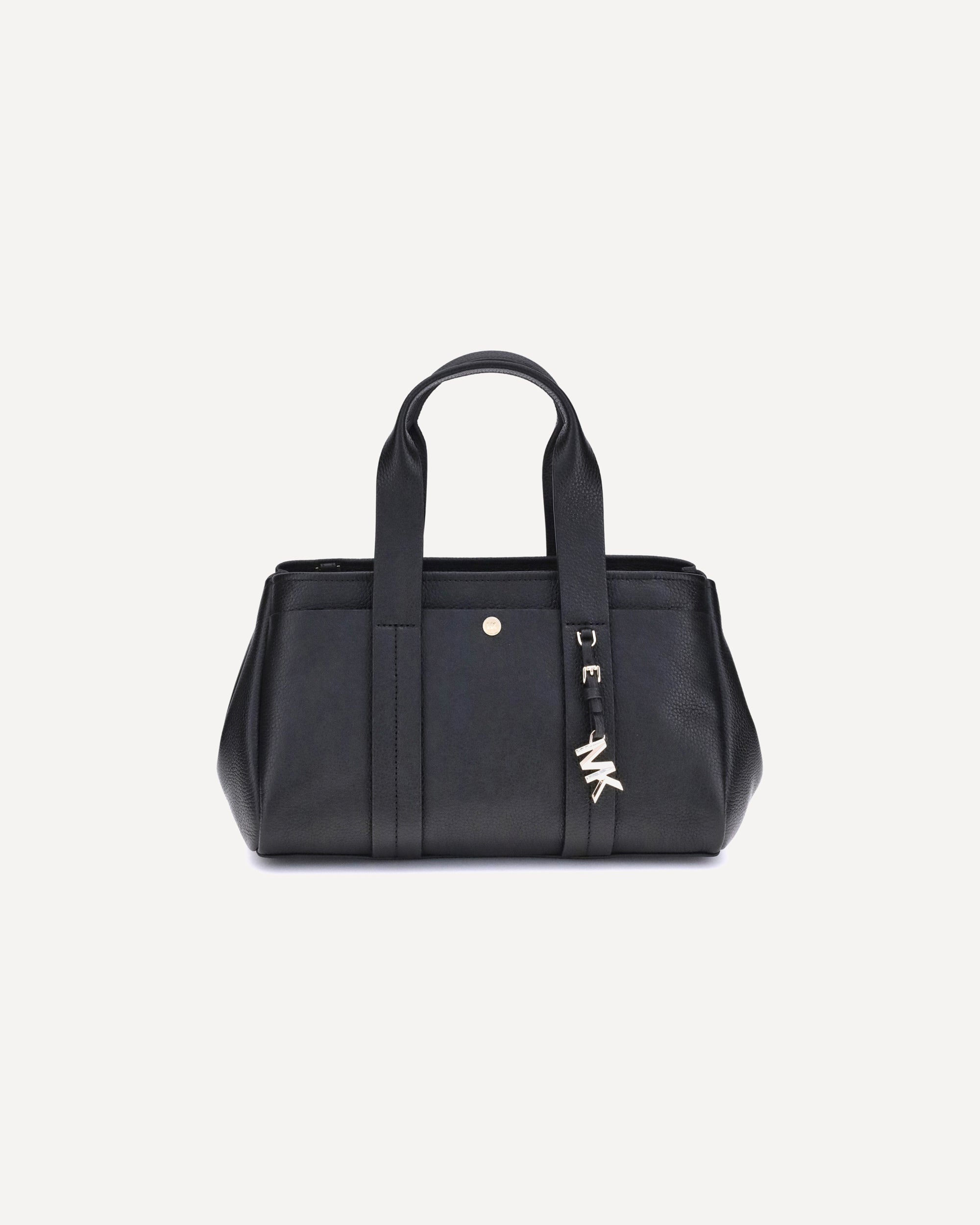 The Small Romee Handbag by Michael Kors is a compact and refined accessory made of grained leather with an elegant and durable texture. It is embellished with a pendant bearing the iconic MK initials, the brand's signature detail. Sturdy top handles allow it to be carried comfortably on the shoulder, while the adjustable shoulder strap offers versatility and freedom of movement. Perfect for accompanying every moment of the day in style.