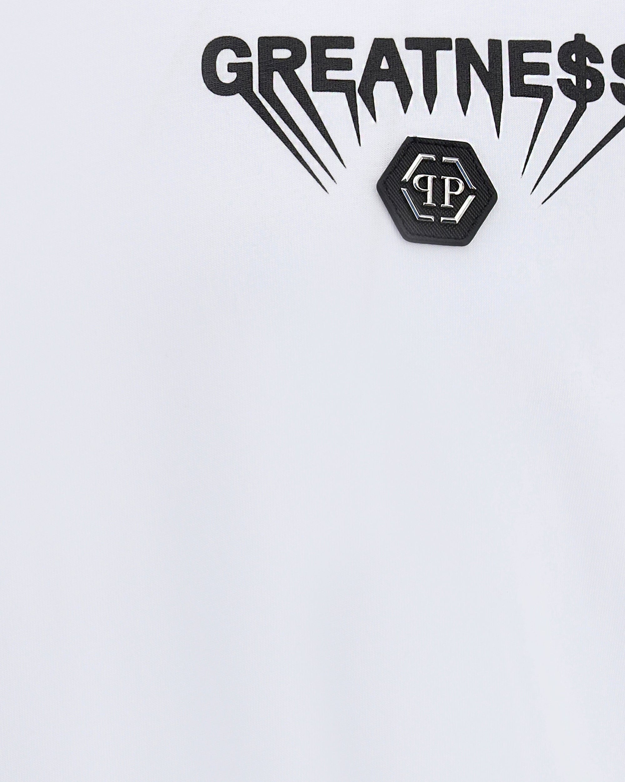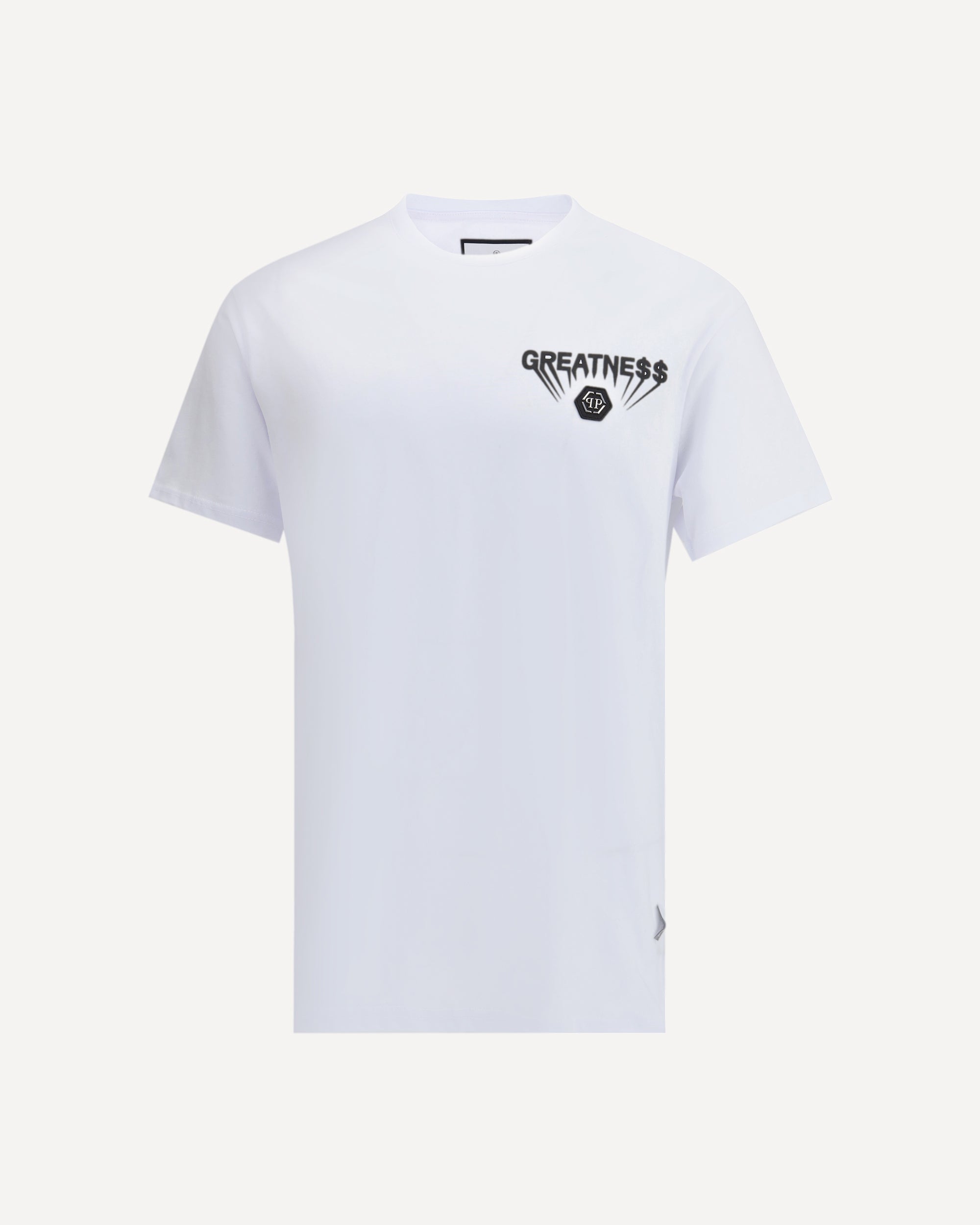 The crew-neck T-shirt by Philipp Plein is crafted from soft cotton, featuring a clean yet distinctive design. The piece is embellished with the brand emblem and the “Grateness” inscription embroidered on the upper left chest. Short sleeves and a regular fit complete the look with a bold, modern touch.