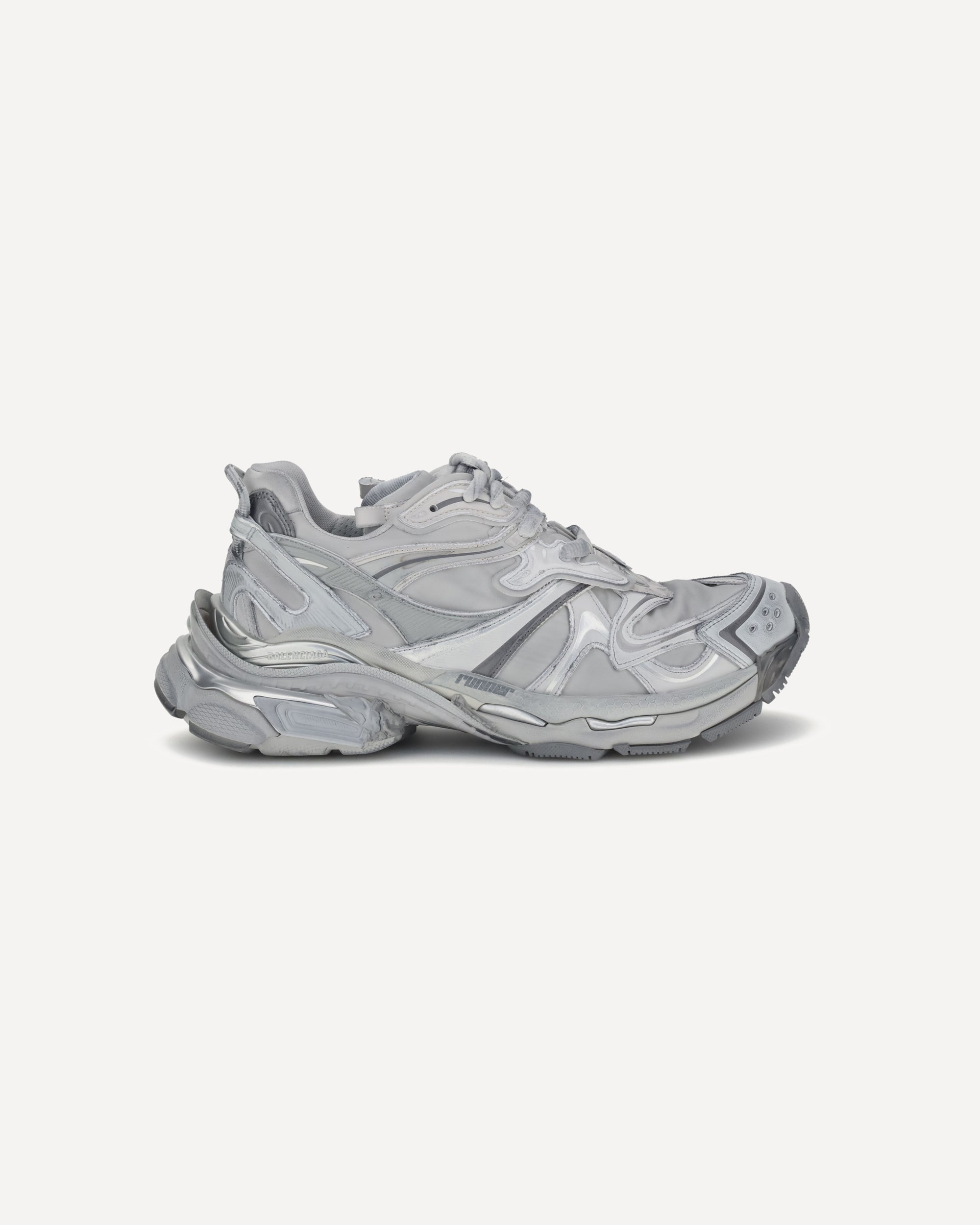 Balenciaga's Runner 2 Sneakers feature a structured platform sole that lends height and comfort. The woven leather panel design is enhanced with neon details, adding a dynamic and modern touch. The front lace-up closure ensures an adjustable fit, while the size number is embroidered on the toe for a distinctive detail. The front tongue is decorated with a label featuring the brand's iconic embroidered monogram in contrasting colors. The logo also appears on the sole and insole, completing the distinctive and contemporary look of these sneakers.