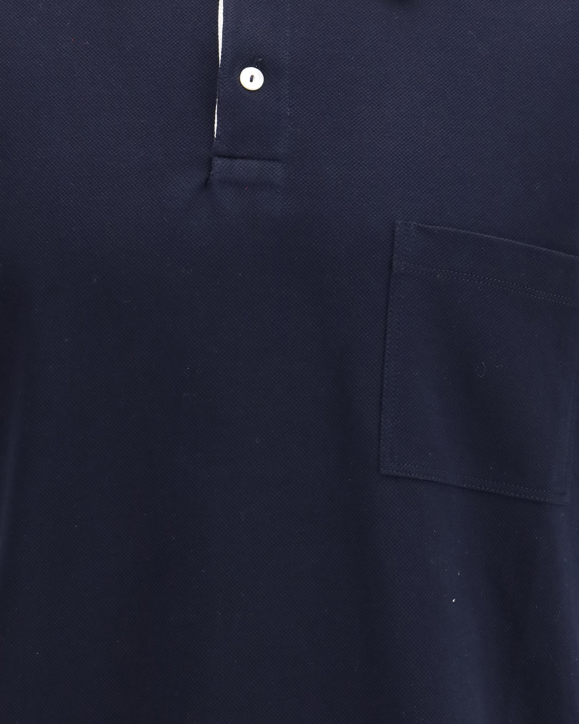 The Piqué Polo Shirt by Gucci is an elegant and versatile garment, crafted from blue stretch cotton piqué for optimal comfort. The polo collar and short sleeves give it a fresh, sporty look, while the chest pocket adds a practical and distinctive touch. The ribbon trim on the inner placket and button closure complete the design, making this polo shirt a must-have for a casual-chic look by Gucci.