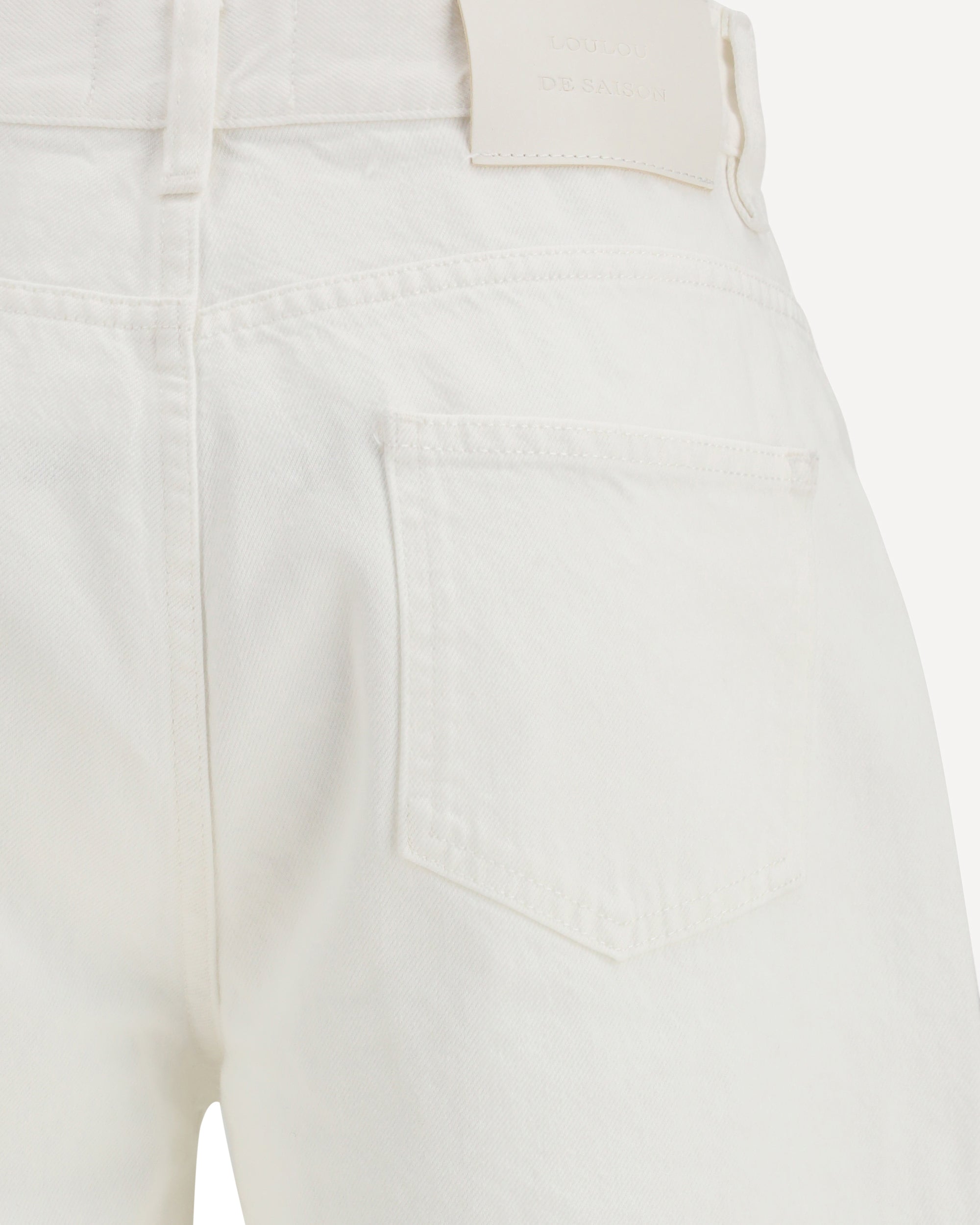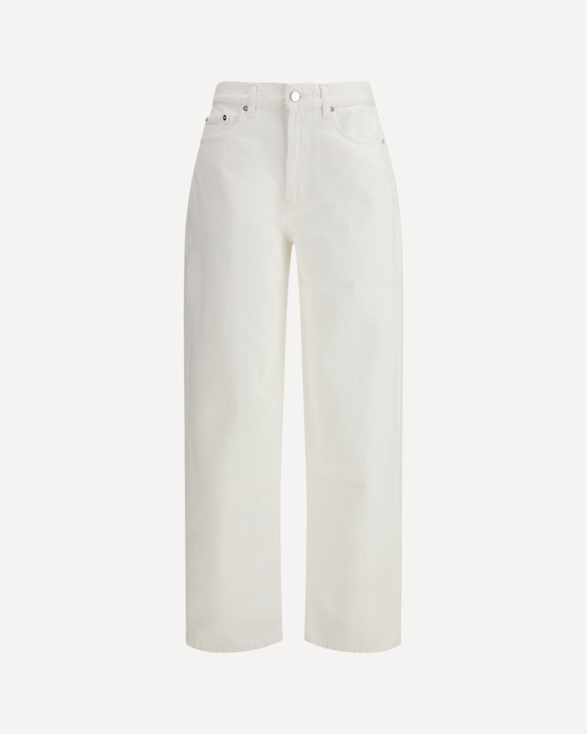 The Samur LDS Jeans by Loulou de Saison are crafted from non-stretch organic cotton denim, defined by a relaxed straight-leg silhouette with a naturally effortless attitude. The fabric shows subtle fading throughout, enhancing the lived-in character of the design. Finished with classic five-pocket styling, belt loops and a zip fly, they are completed by a discreet logo patch at the back waistband, offering a refined take on an everyday essential.