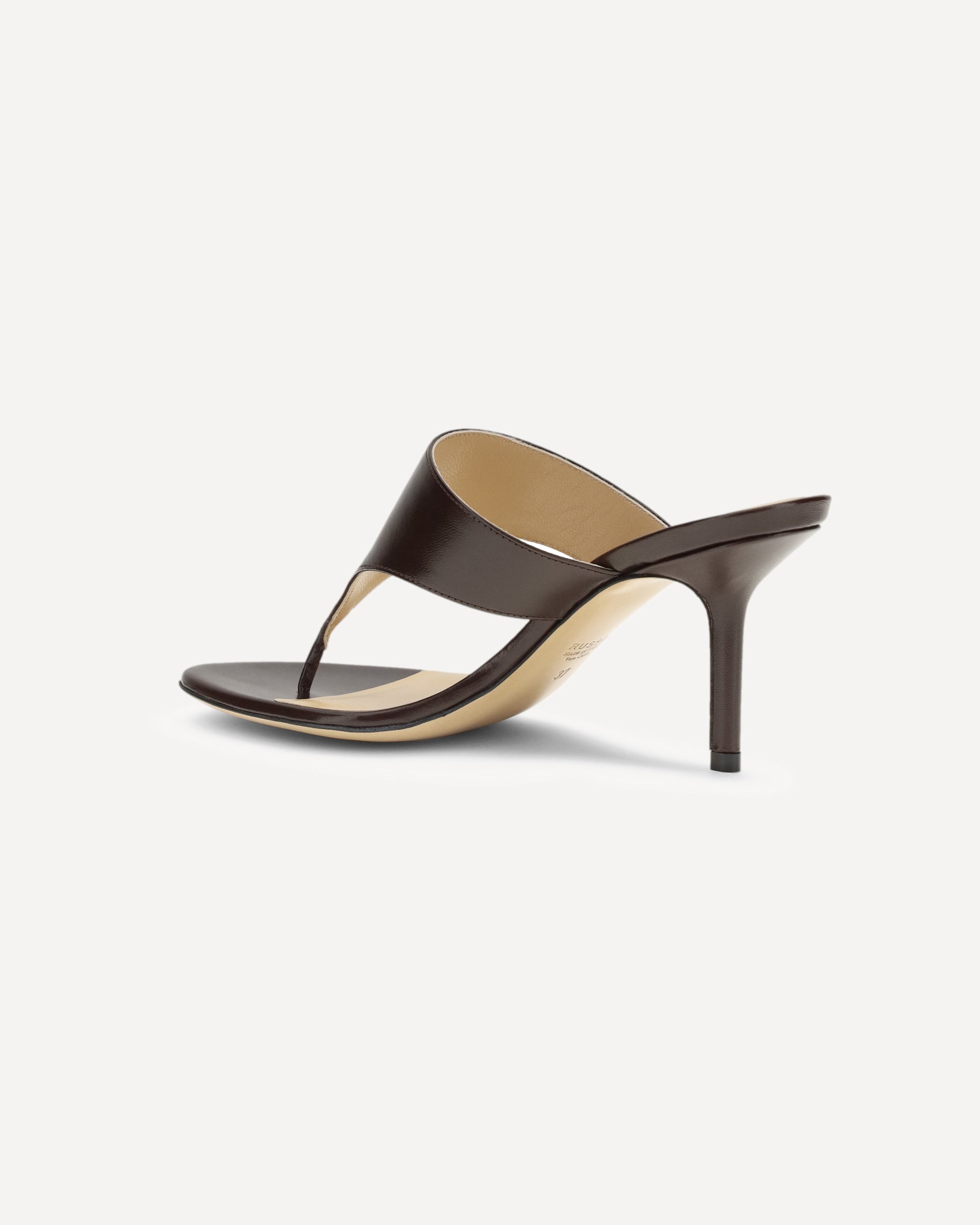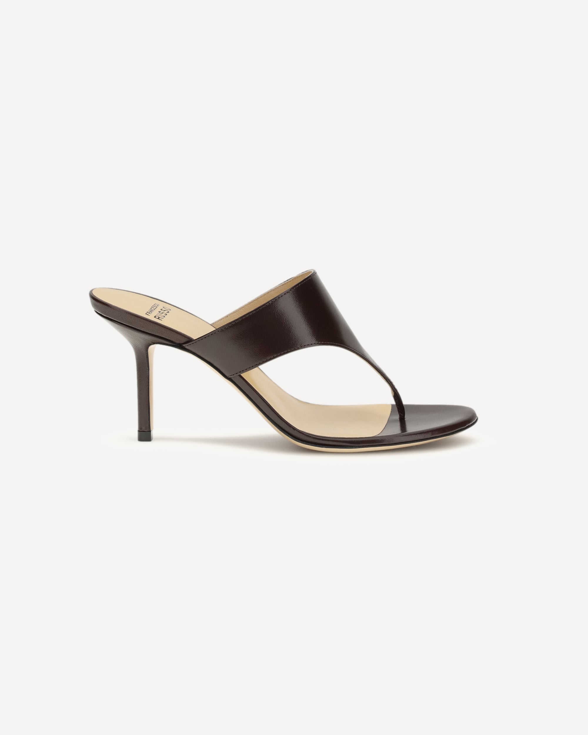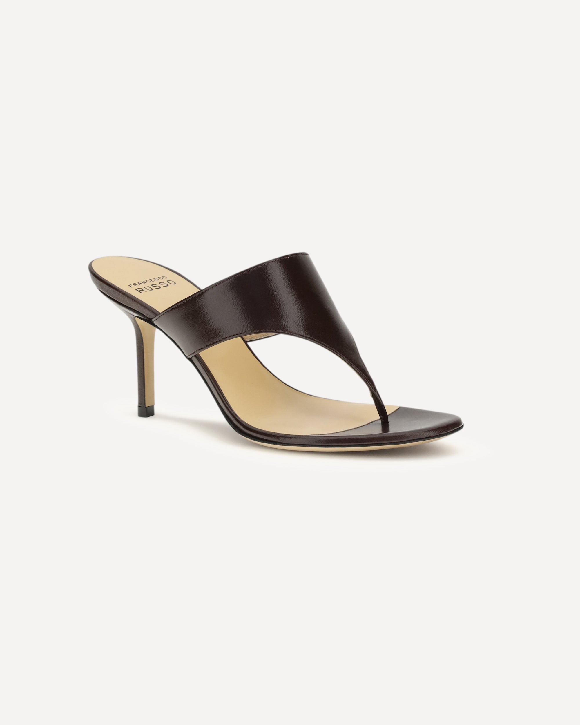 The thong Sandals by Francesco Russo, crafted from smooth leather, strike the perfect balance between elegance and modernity. The stiletto heel elongates the figure, while the sabot design offers a comfortable and practical fit. A sophisticated model that combines clean lines and refined details, ideal for adding a touch of class to any look, whether casual or elegant.