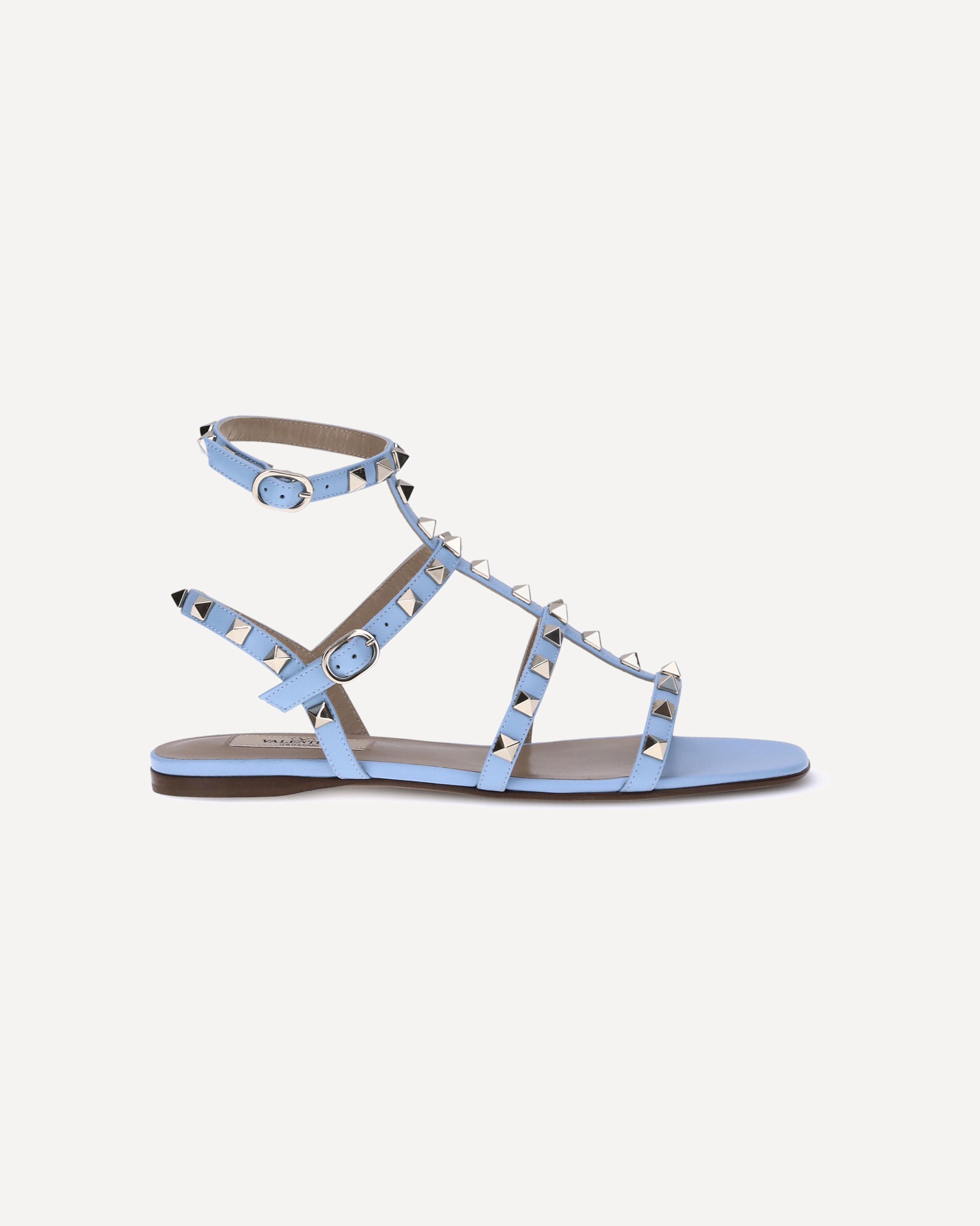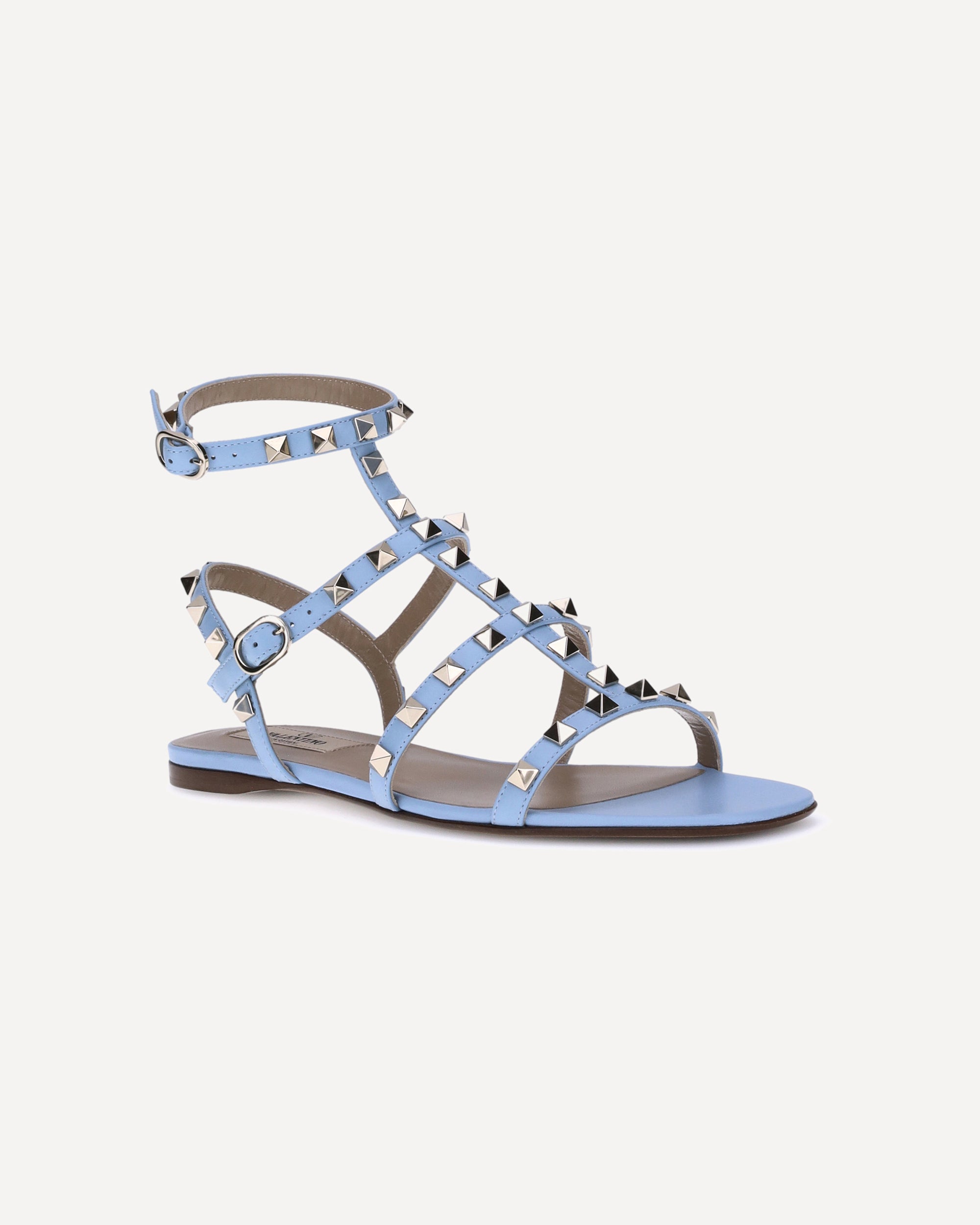 Valentino Garavani's leather Rockstud Sandals combine bold style with refined comfort. Featuring a round toe and an adjustable ankle lap strap closure with a side buckle, they offer a secure and personalized fit. The flat sole ensures practicality, while the brand's iconic all-over applied studs enrich the design with a distinctive rock touch. The branded insole completes the model with an exclusive detail.