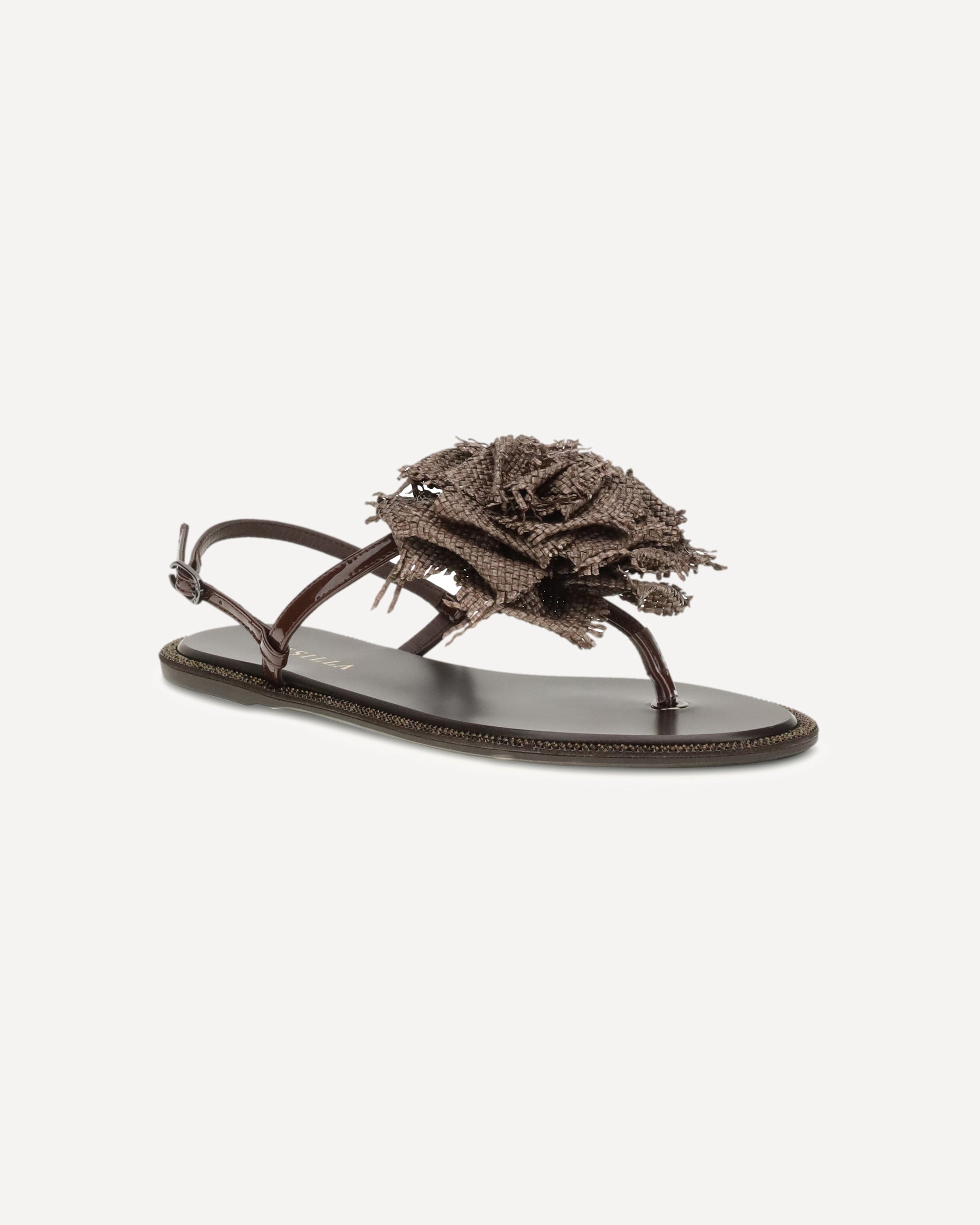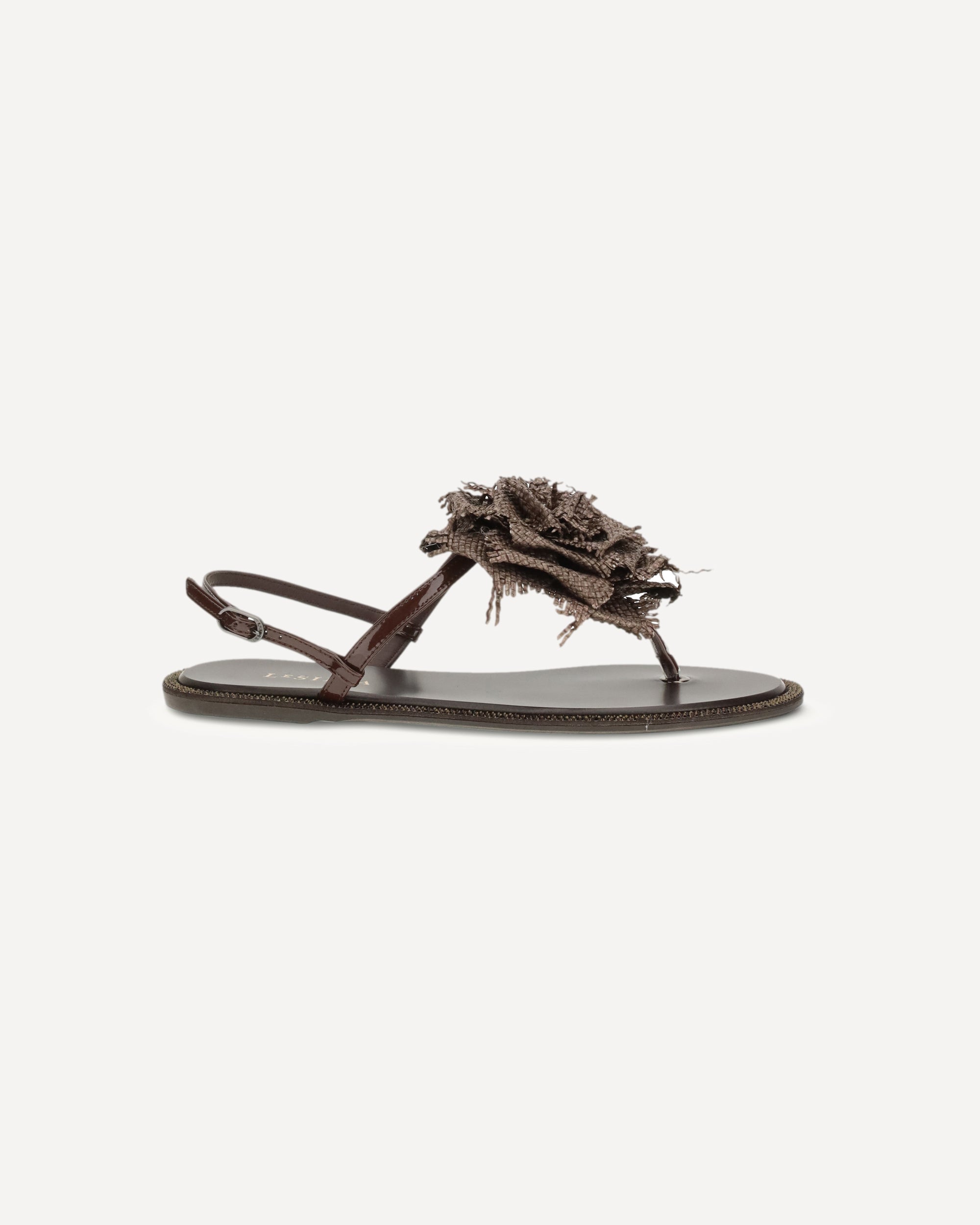 The Rose Sandals by Le Silla combine elegance and romance thanks to the maxi rose front, flip-flop design and comfortable flat sole. The buckle back closure ensures a stable and adjustable fit, making them a refined and feminine accessory.