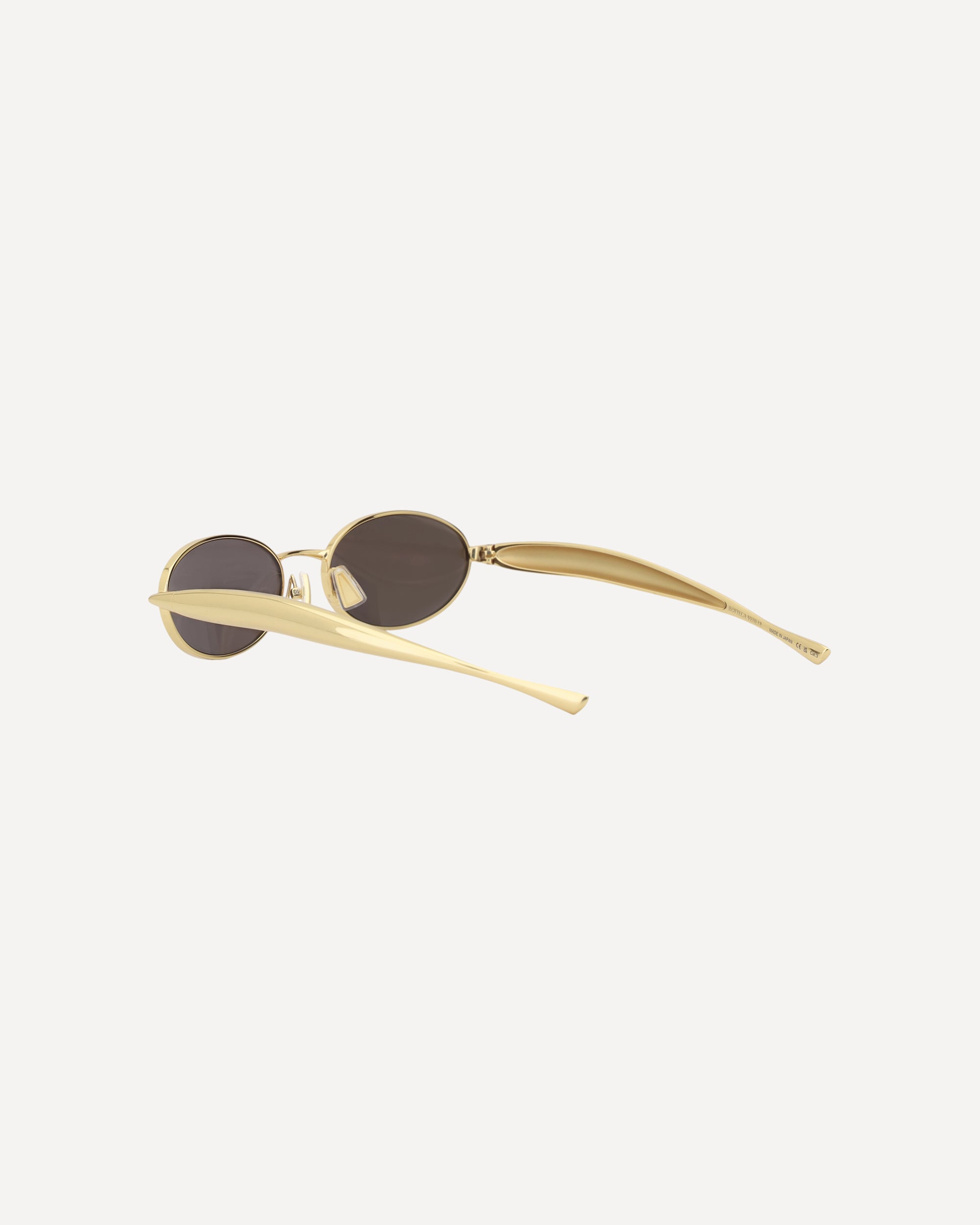 Bottega Veneta's oval Sunglasses with sculptural temples inspired by the shape of a sardine are an example of innovative design and high tailoring, typical of the brand. The oval shape of the lenses gives an elegant and sophisticated look, while the sculptural temples, with their reference to the sinuous figure of the sardine, add a touch of originality and artistry to the creation.