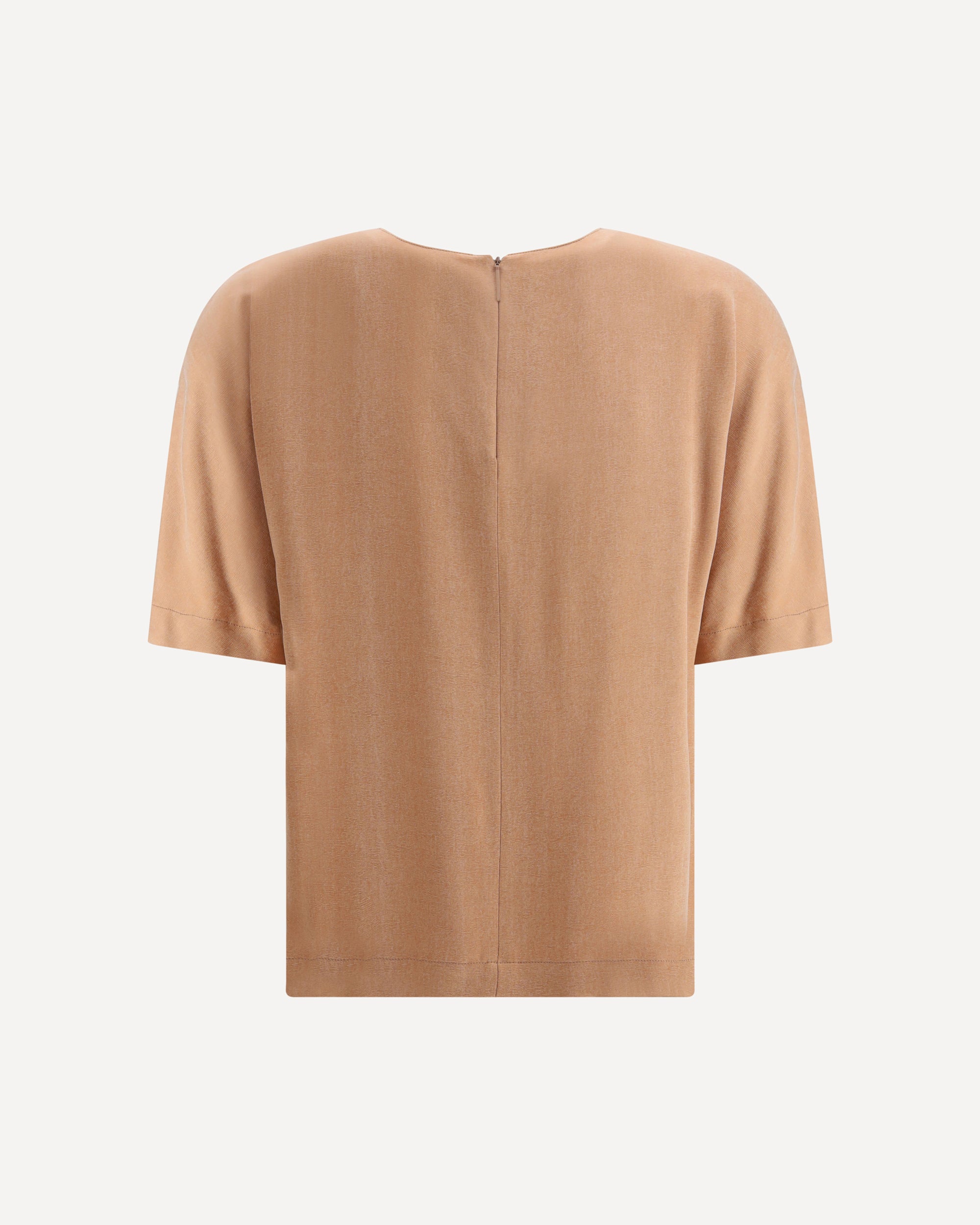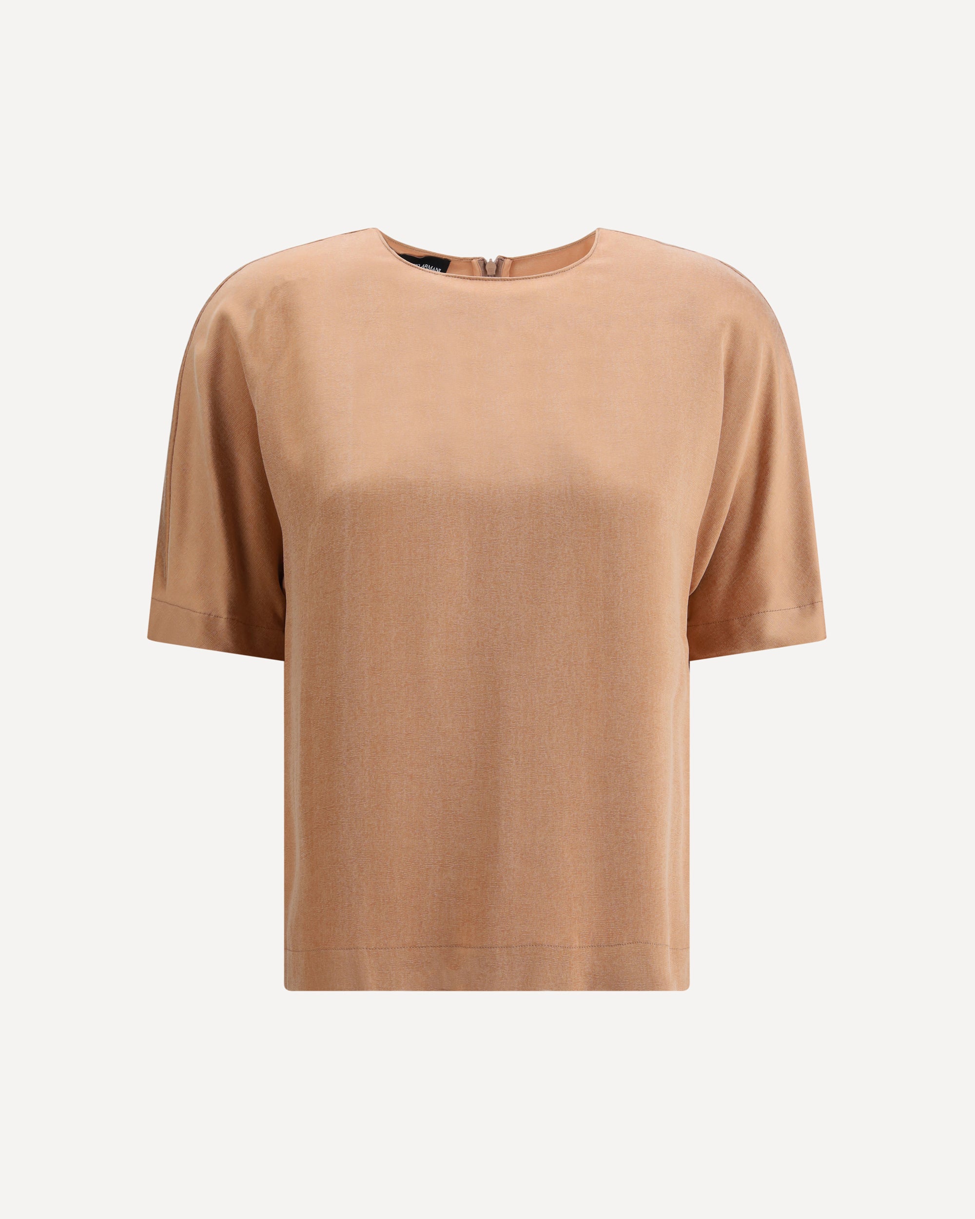 Giorgio Armani's Satin Top is an elegant and refined piece. Featuring a short-sleeved design and a classic crew neck, it offers a simple yet sophisticated fit. The concealed zip fastening at the back adds a subtle and modern detail, adding functionality without compromising the clean and minimalist design of the top. Perfect for formal or elegant occasions, this piece reflects the quality and distinctive style of the brand.