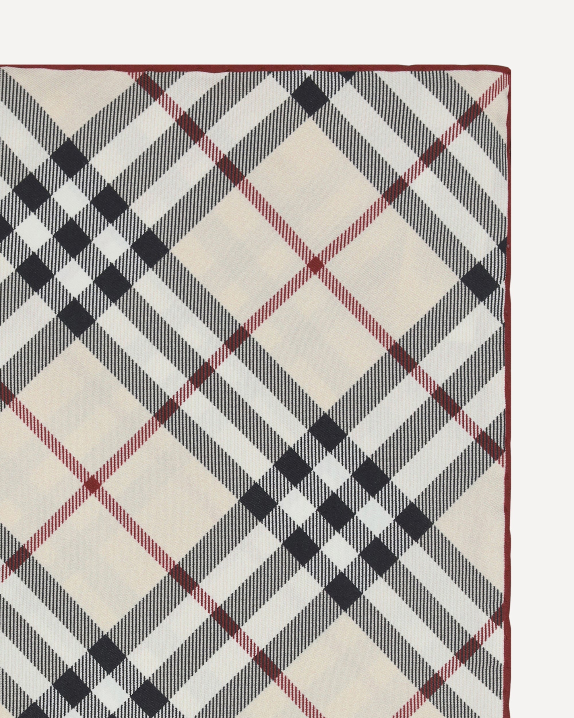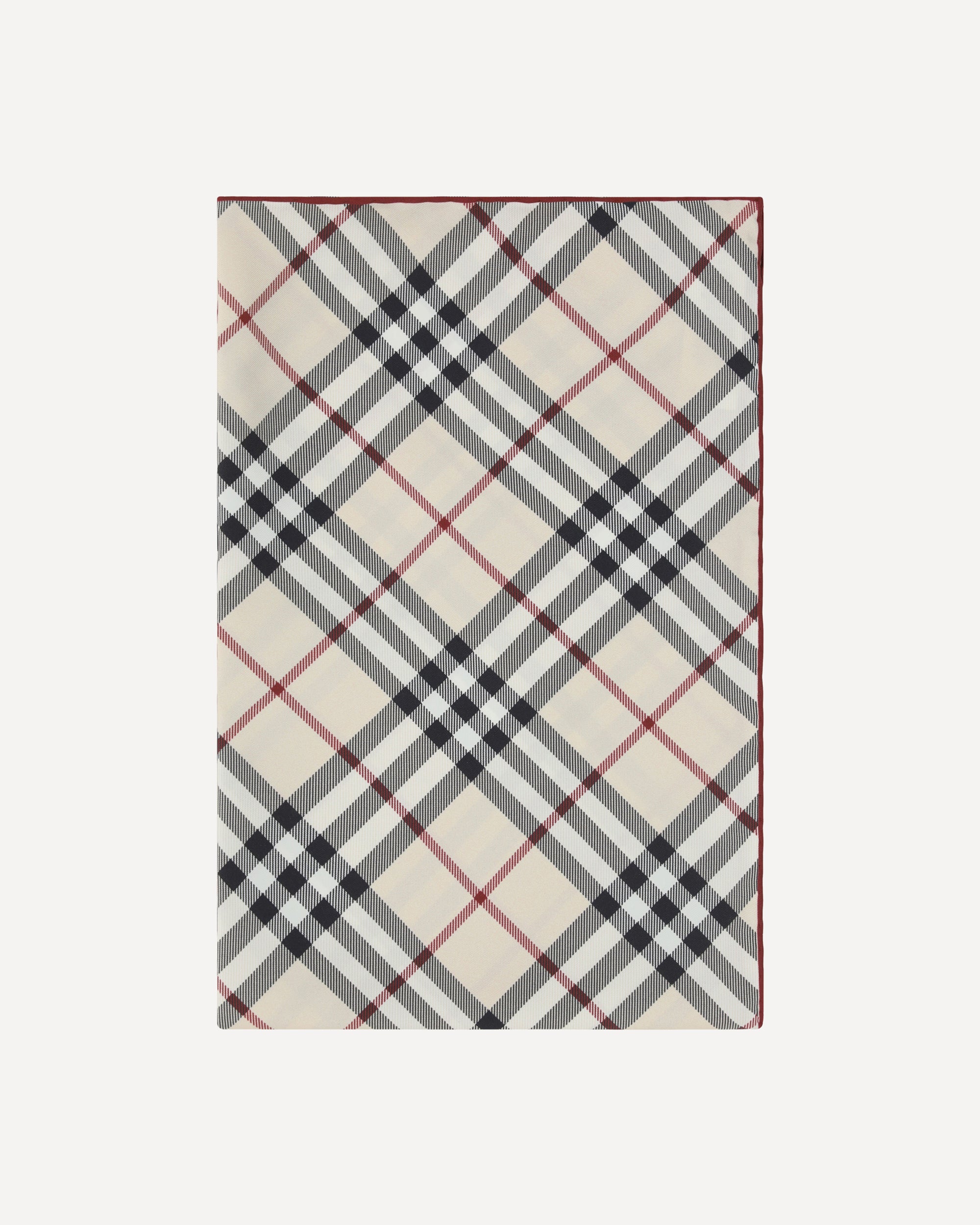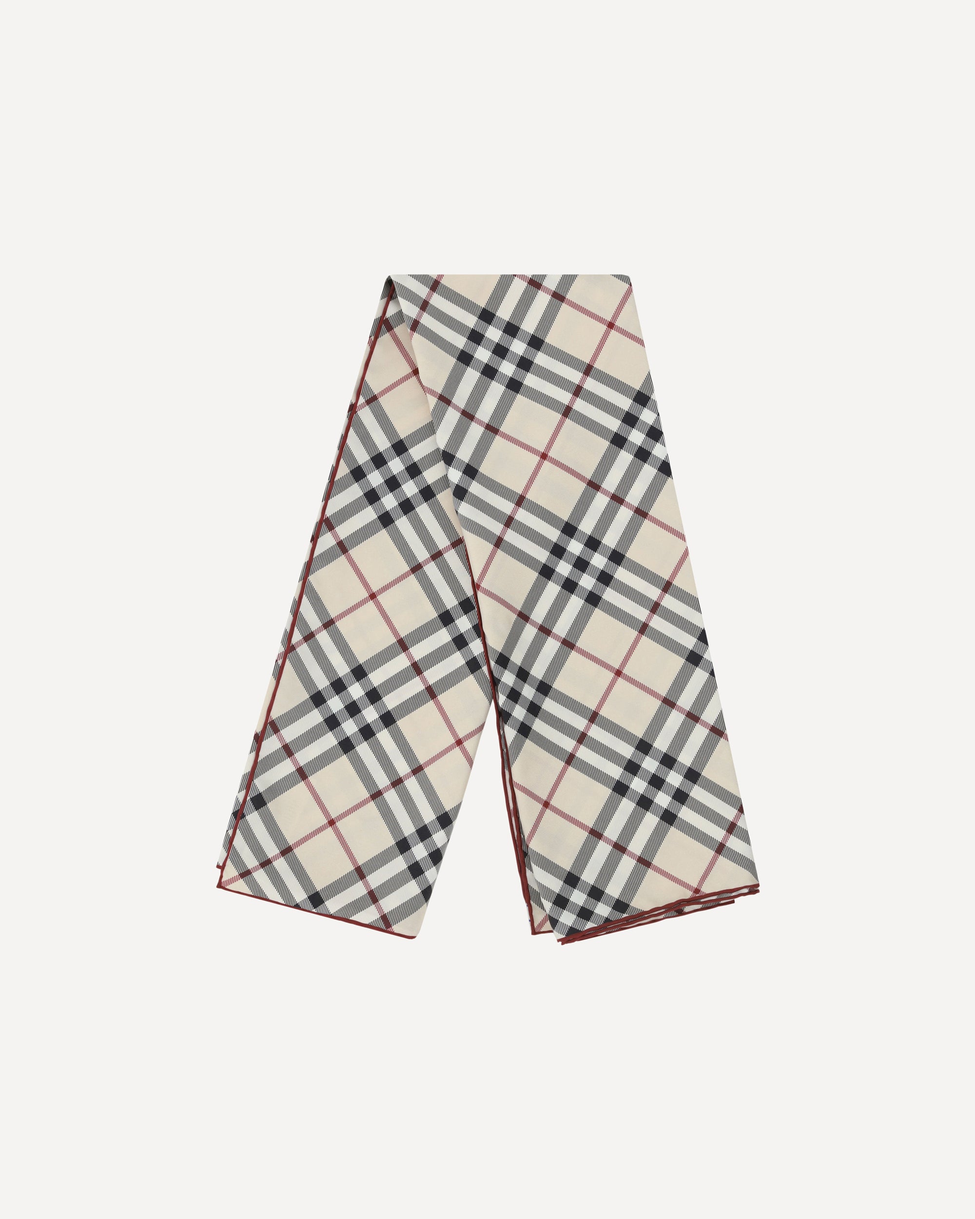 Silk Scarf di by Burberry is a luxury accessory that carries the brand's elegance and tradition. Featuring the iconic all-over repeated Check Archivio pattern, it is a distinctive and timeless symbol of Burberry style. The lightness and shine of silk give the garment a refined and sophisticated touch, perfect to complete any outfit with class, from the most formal to the most casual-chic.