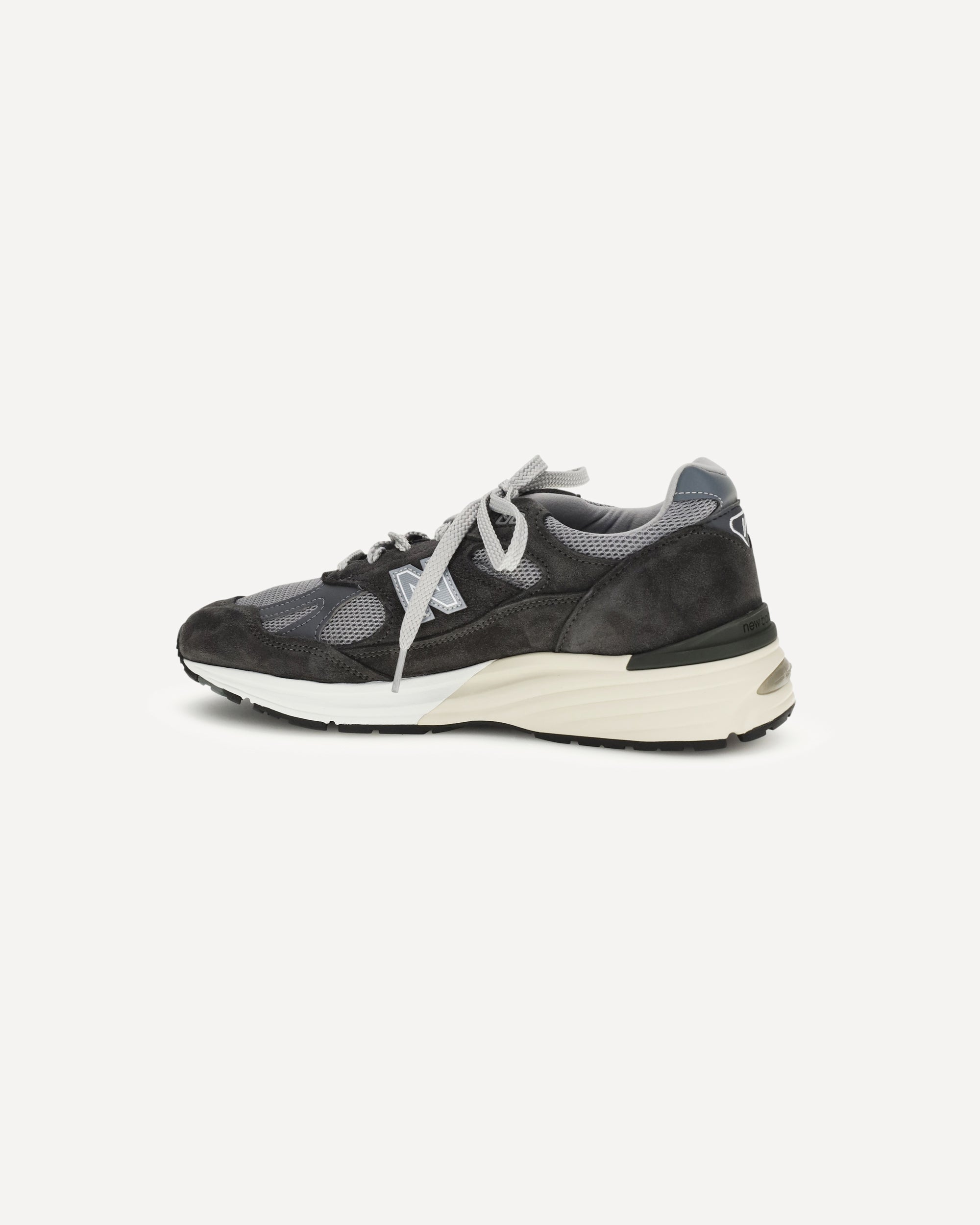 The 991v2 Sneakers by New Balance blend premium craftsmanship and technological innovation in a sporty, sophisticated design. The pig suede and mesh upper provides breathability and a refined look, while the full-length FuelCell midsole provides a responsive push-off. ENCAP cushioning, with soft foam and a durable polyurethane rand, provides long-lasting comfort and stability. Reflective details, an embossed "N" logo, and translucent ABZORB SBS pods complete the silhouette with technical, contemporary accents.