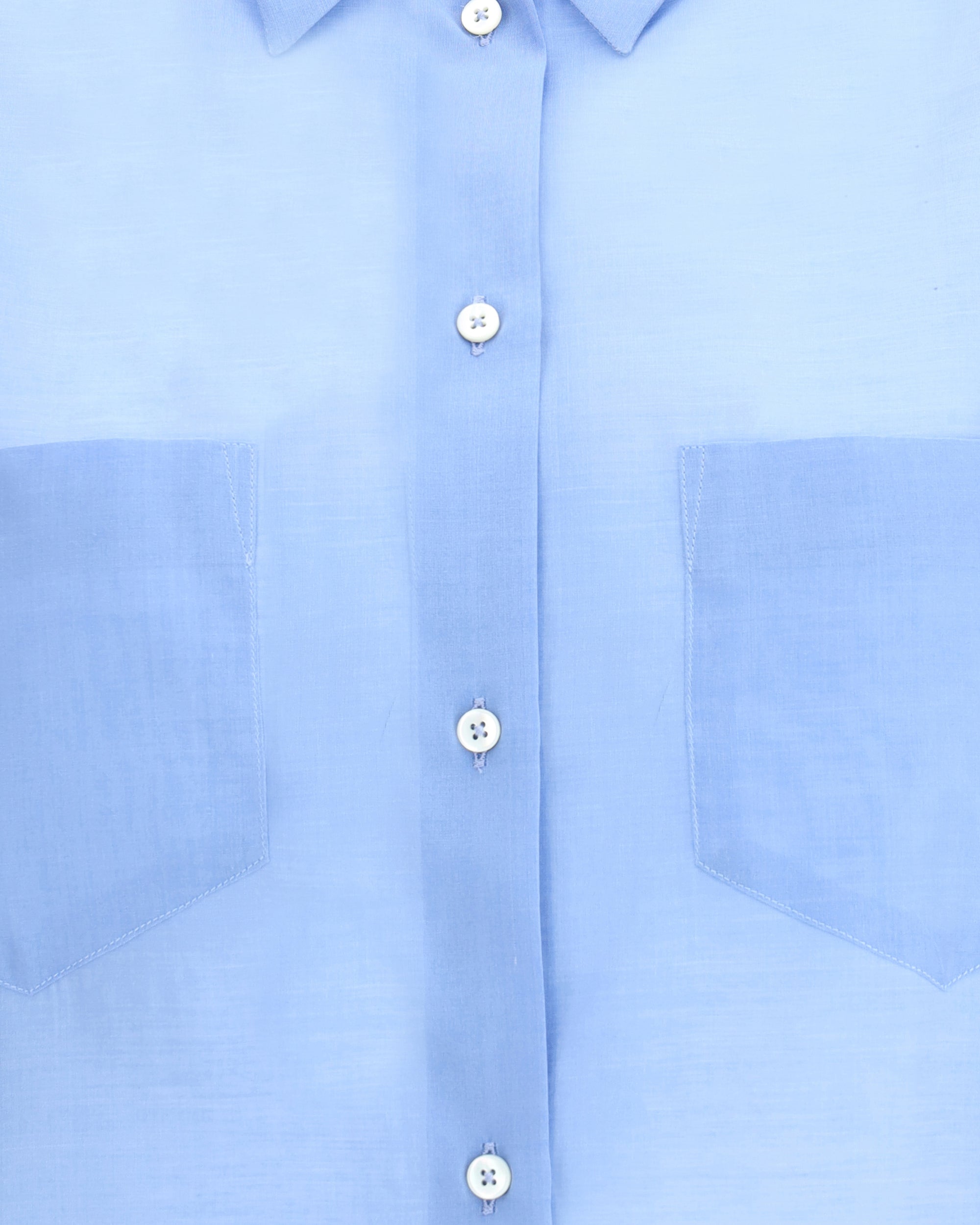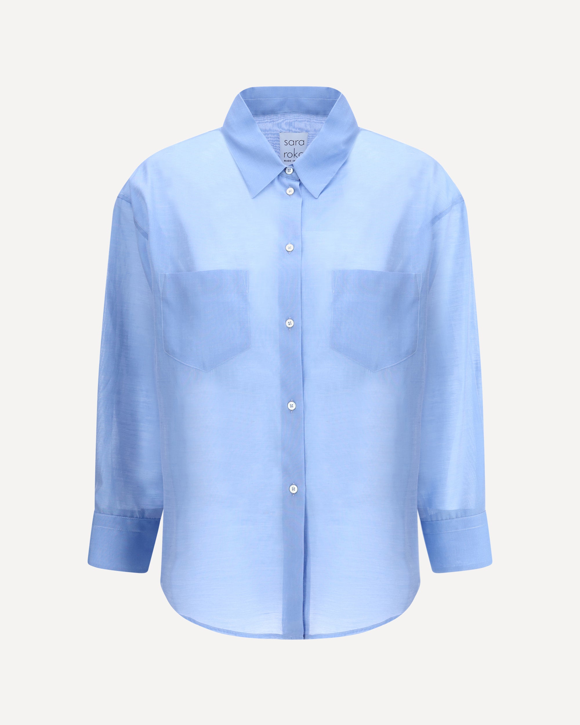 Sara Roka's Shirt combines elegance and lightness in an essential design. Made of semi-sheer fabric, it features a classic collar, front button closure and two patch pockets on the front for a modern and sophisticated touch.