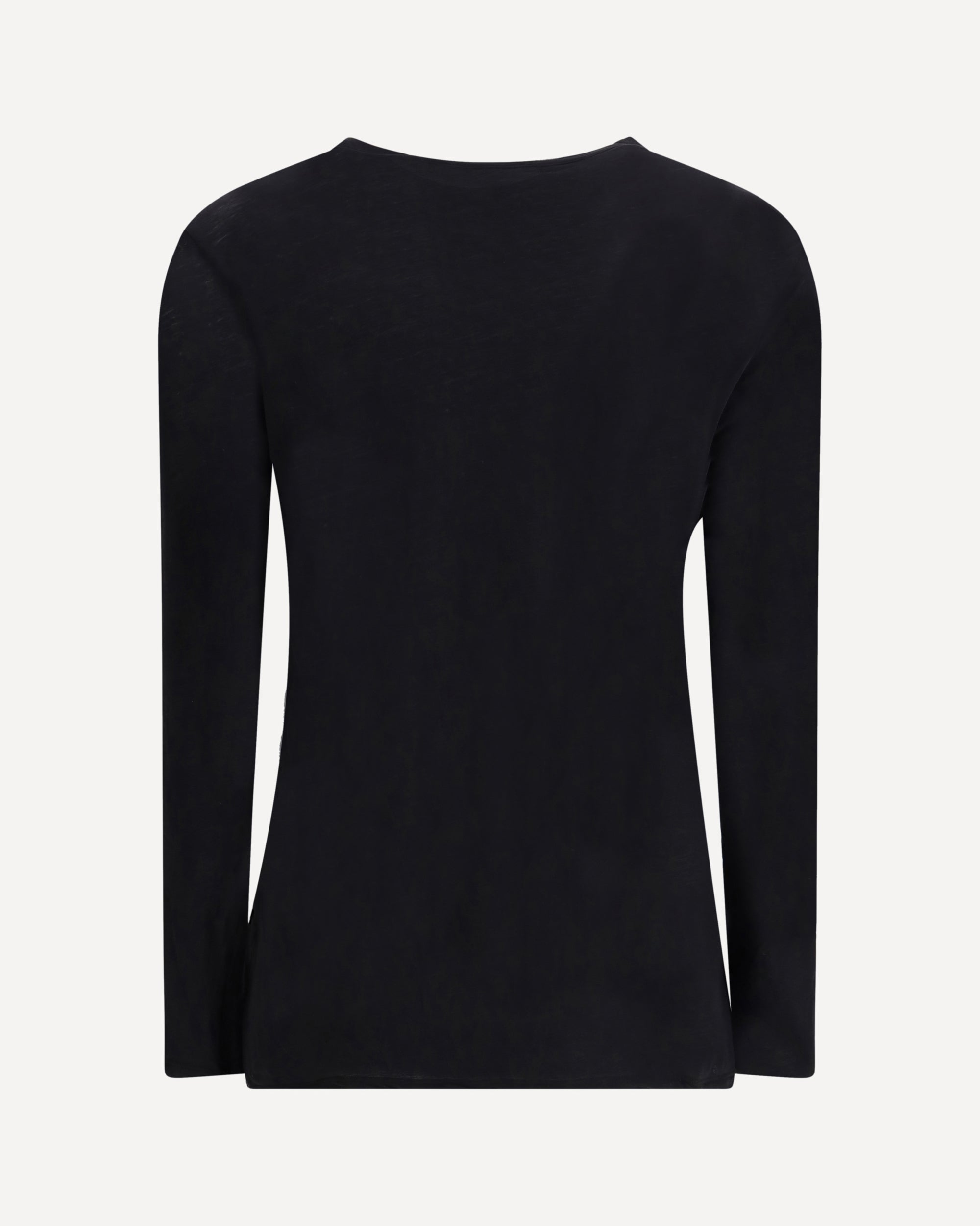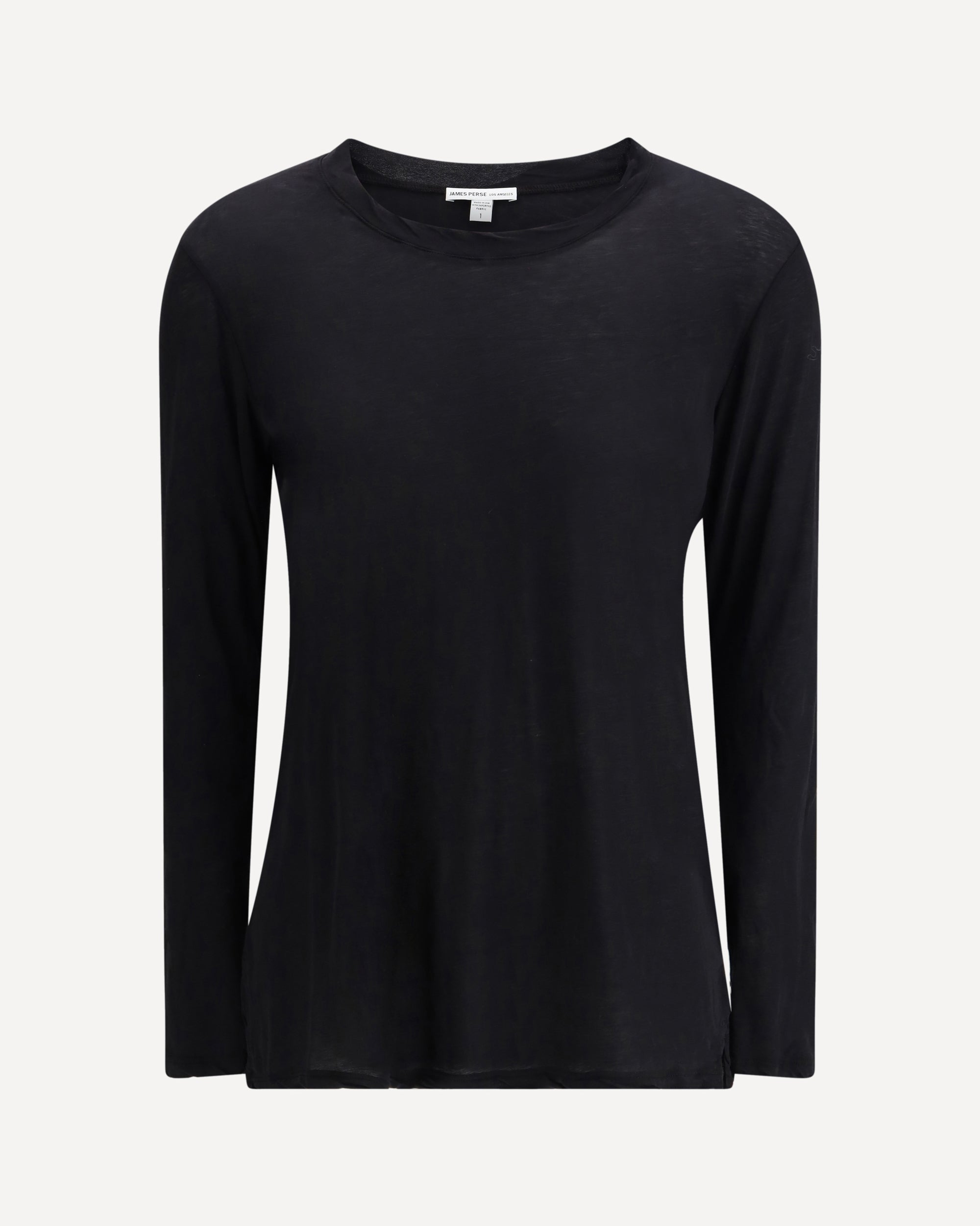 The James Perse cotton Long Sleeve Jersey is an elegant and versatile piece, featuring a classic crew neck and a semi-sheer design that gives a light and sophisticated touch. The side slits add a dynamic and modern detail, while the slim fit flatters the figure, creating a slim and refined silhouette. An ideal piece for casual but sophisticated looks.
