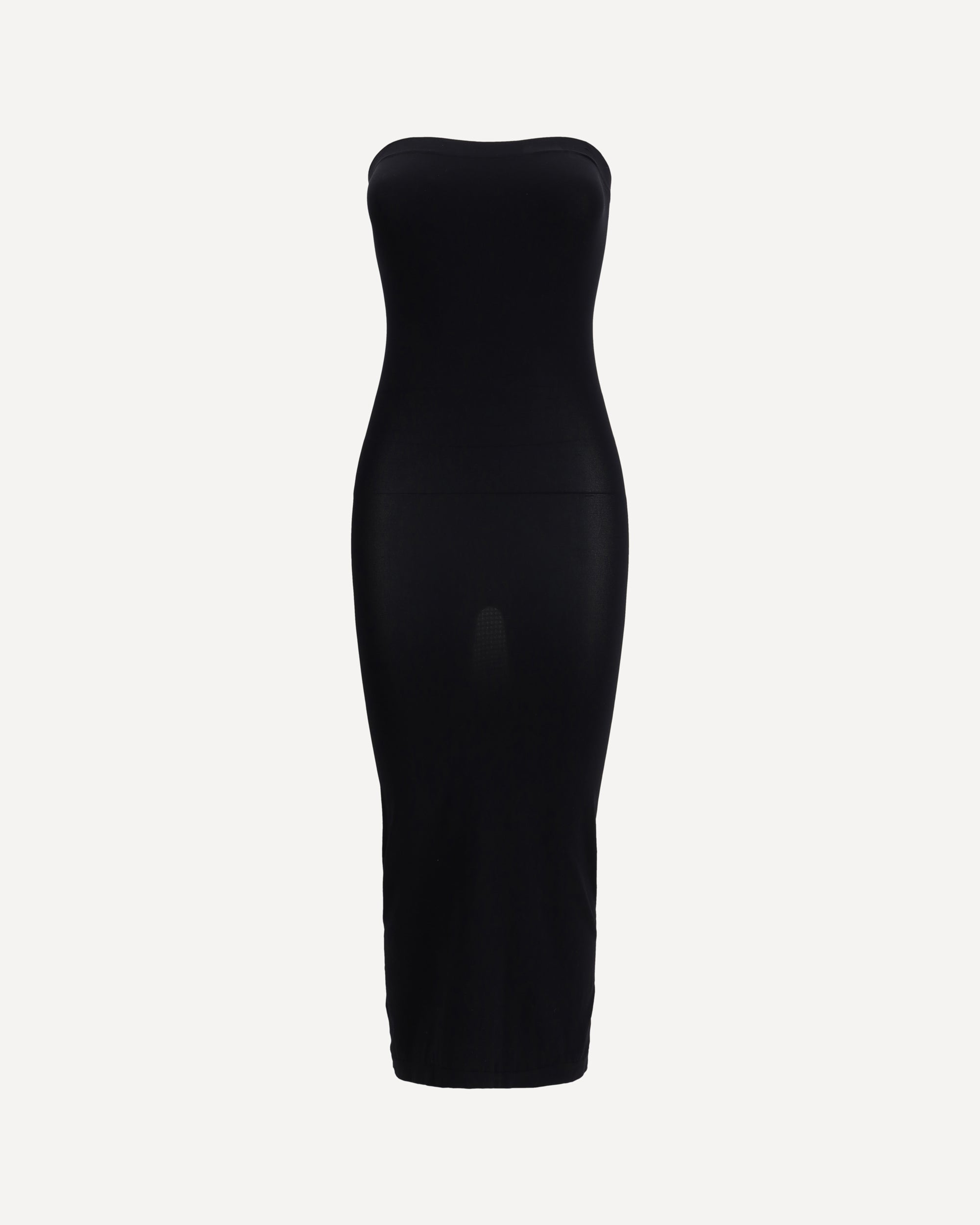 Wolford's Shaping Fatal Dress is an essential and versatile garment designed to enhance the silhouette with elegance and comfort. Made of recycled Blufibre® yarn, an innovative and sustainable material, it features a matte finish and a seamless design that hugs the body like a second skin. The sheath cut and mid-calf length give a clean, sophisticated silhouette, while the medium shaping effect at the waist gently sculpts the figure, offering support and femininity. Perfect to wear alone or as a base for layered looks.