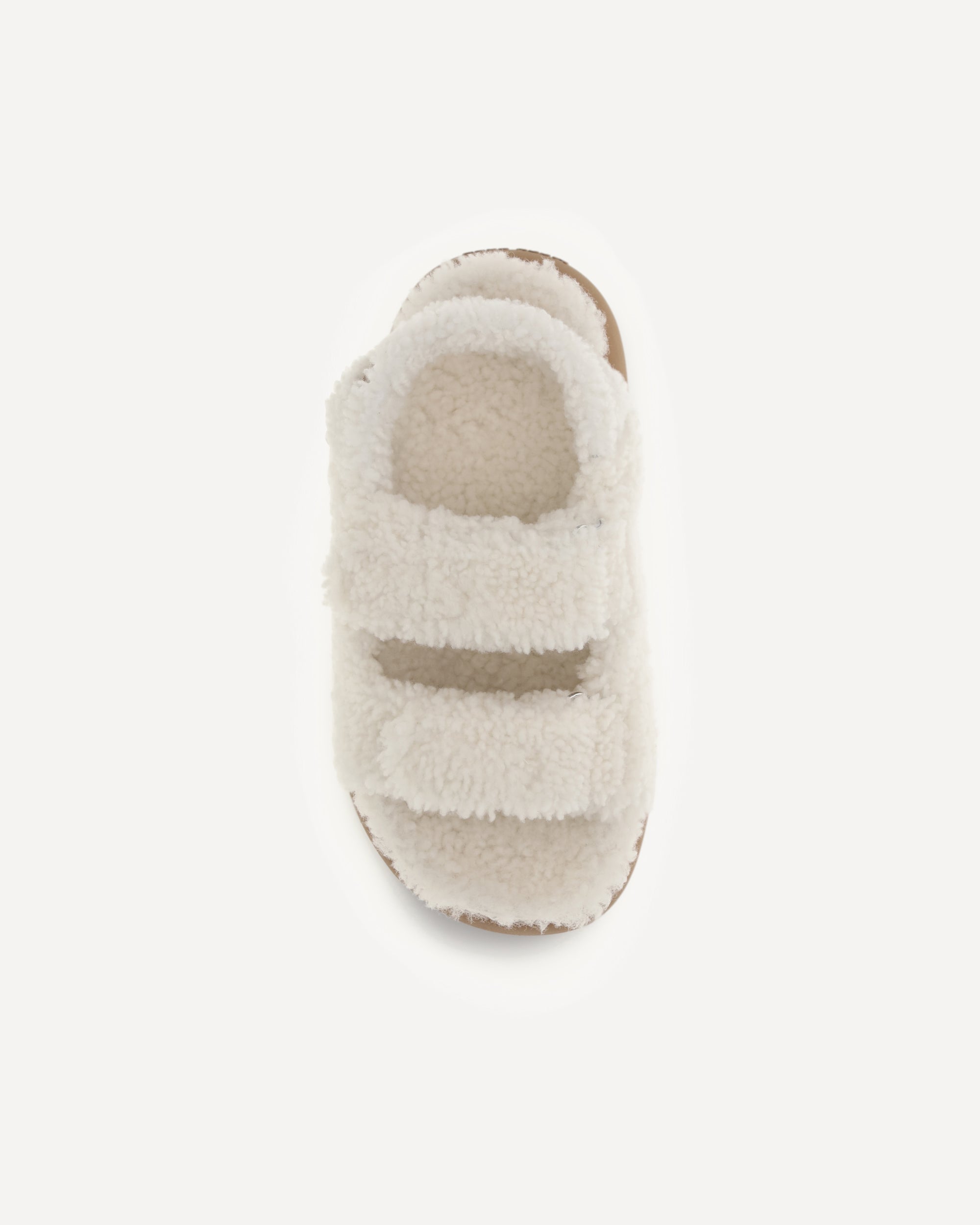 The Fur-lined Sandals are made from shearling, offering comfort and warmth. The adjustable straps allow for a personalized fit, while the branded heel counter adds a distinctive detail. The thermoplastic rubber midsole and outsole ensure durability and grip, while the slip-on design makes them quick and easy to put on. Perfect for a casual and comfortable look.