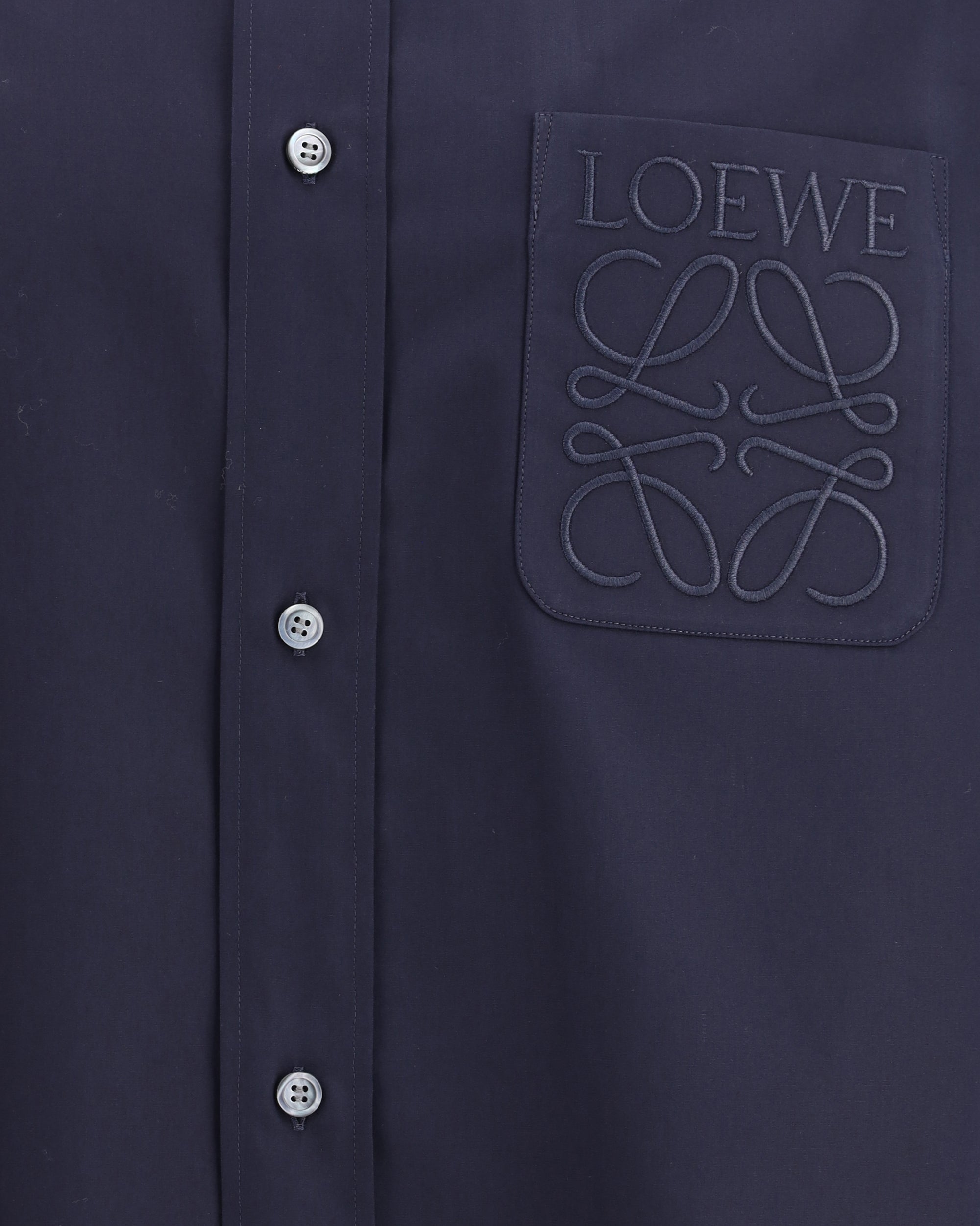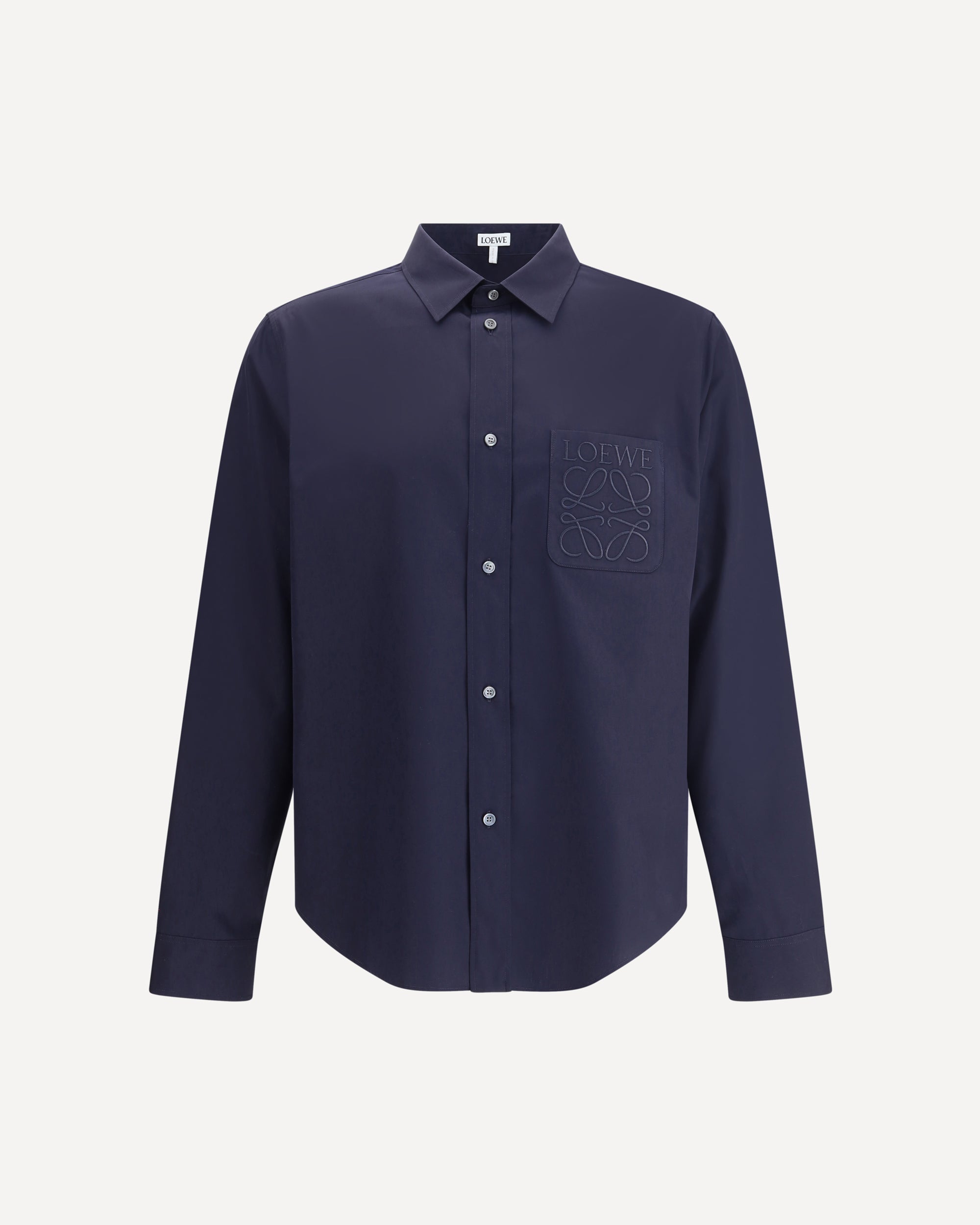 Loewe's cotton Shirt is a garment with a sophisticated and refined style. The classic collar adds an elegant touch, while the front button closure and adjustable button cuffs offer practicality and a customizable fit. An applique welt pocket on the front is embellished with the tone-on-tone embroidered Anagram detail, a distinctive element that underscores the brand's haute couture and iconic style. Made from premium cotton, this shirt is perfect for a sleek and contemporary look, suitable for a variety of occasions.