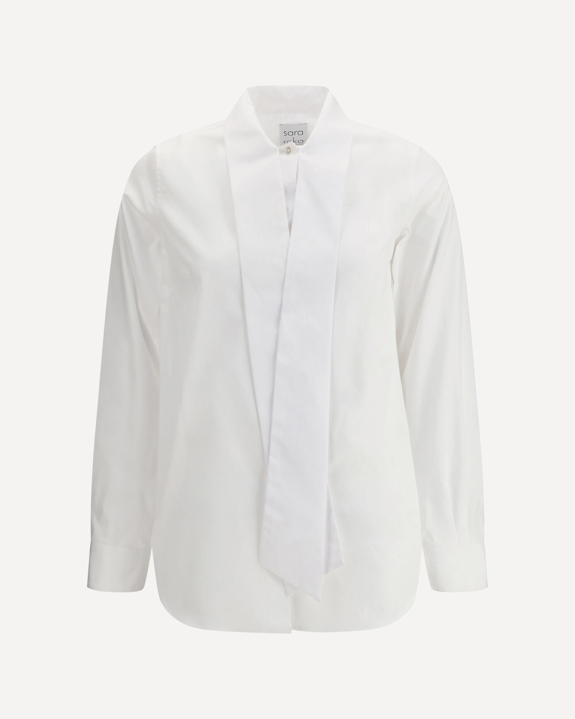 Sara Roka's cotton Shirt combines sartorial rigor and femininity with a distinctive touch. Featuring a front button closure and an elegant collar enhanced by a tie to tie, it offers endless styling possibilities, from a romantic bow to the most casual knot. Made of high-quality cotton, it features a clean, structured silhouette perfect for completing sophisticated looks in both professional and leisure settings.