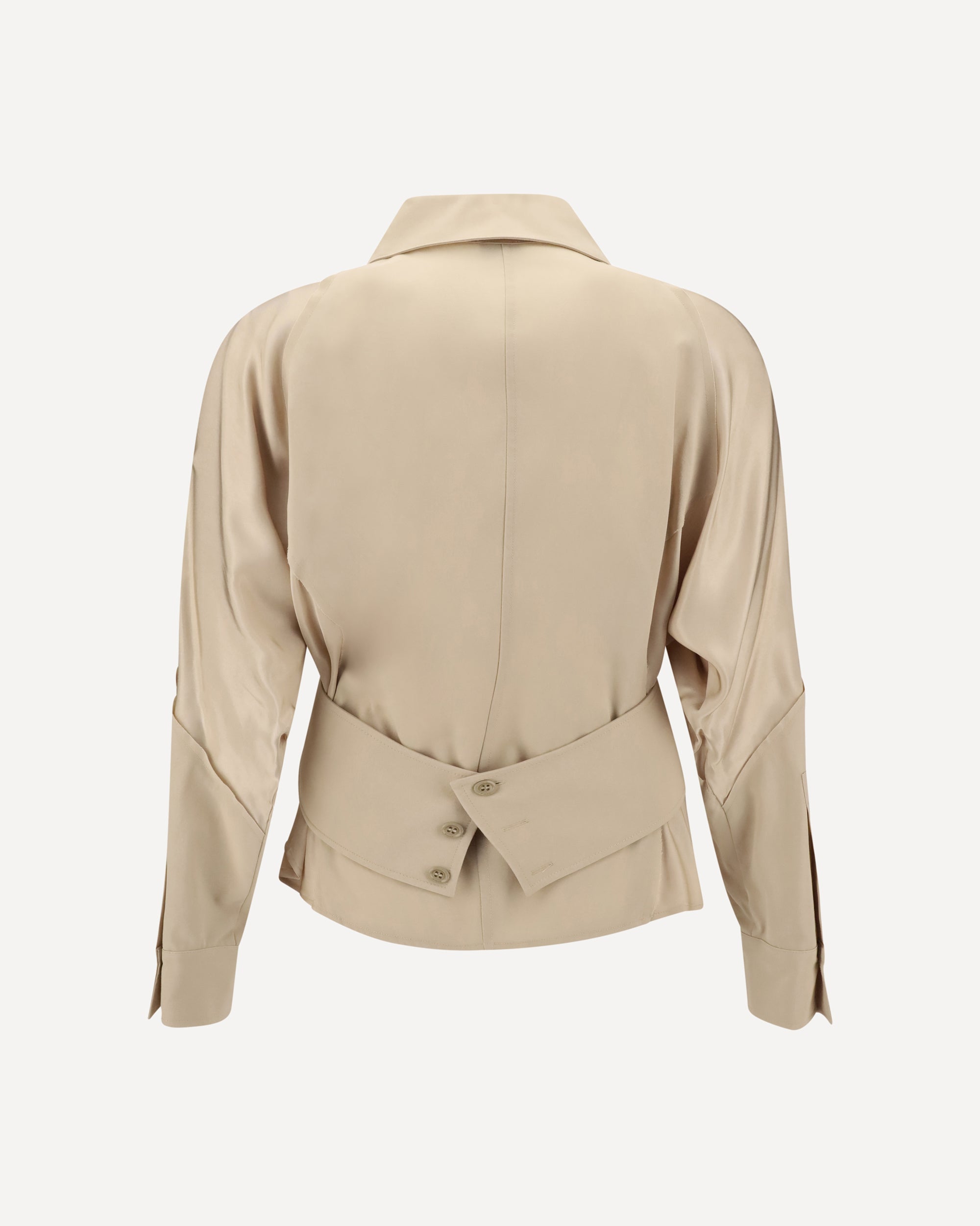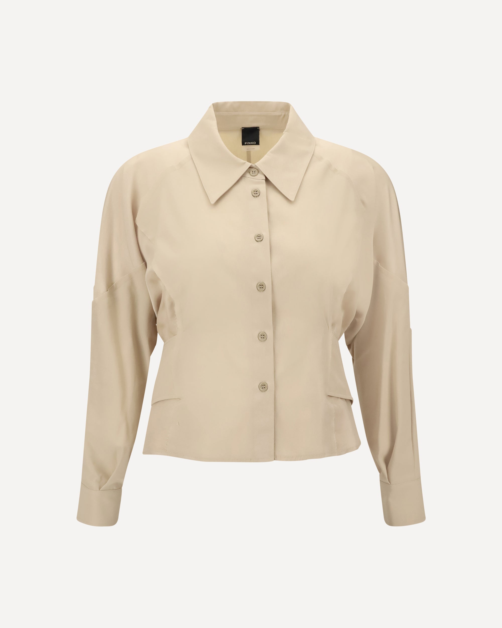 Pinko's habotai Shirt, made of an extremely soft and lightweight fabric, combines elegance and casual sophistication. The pointed collar and long, voluminous sleeves are balanced by the wide cuff and the belt-effect band at the back, which gently gathers volume at the waist. The front button closure and slightly frayed profiles give the garment a delicately worn and sophisticated touch.