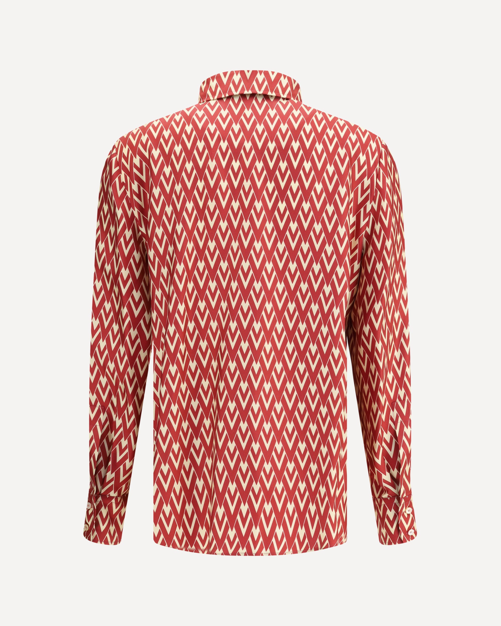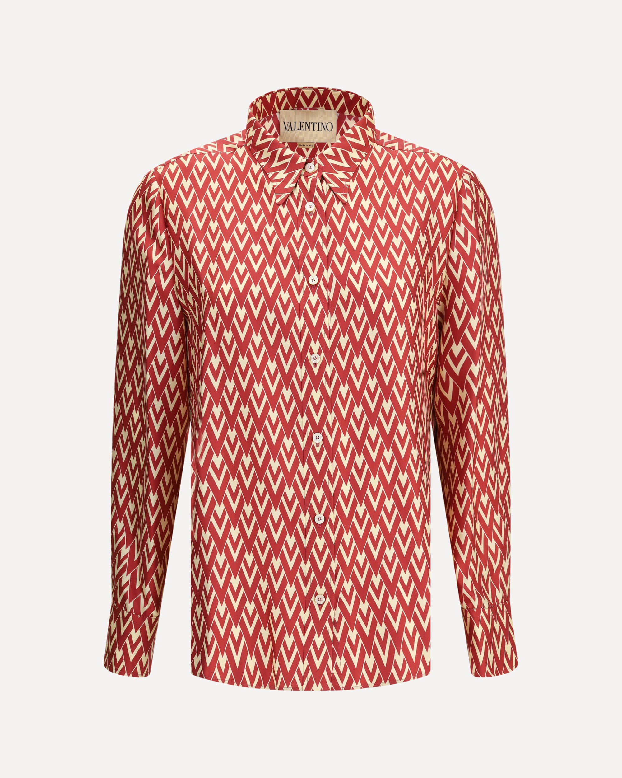 The Toute La V pattern Shirt by Valentino is an elegant piece with a graphic character. Featuring a classic collar and front button closure, it stands out for its all-over V pattern that recalls the iconic identity of the Maison with a bold and contemporary style.