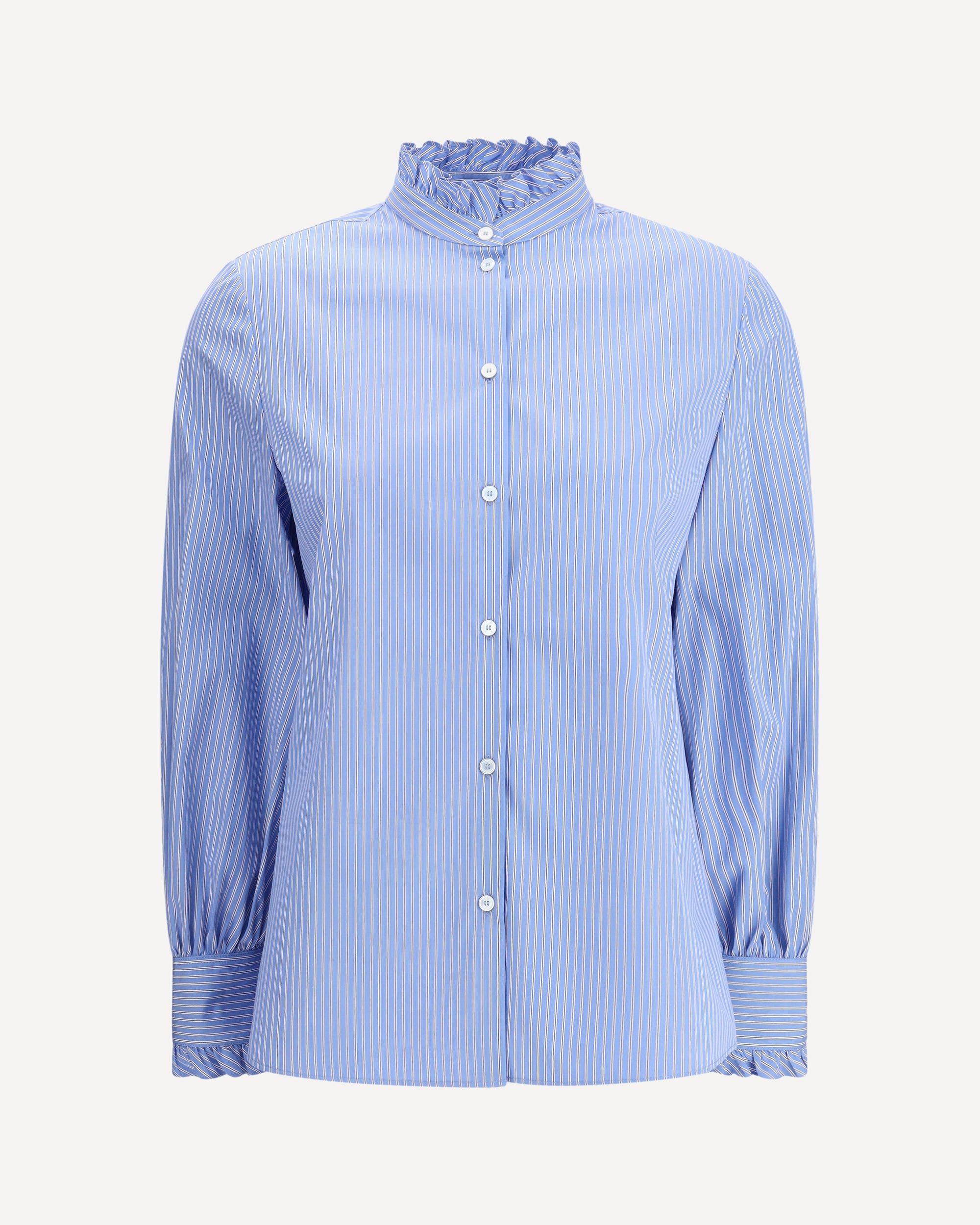 The Valentino Striped Shirt is an elegant and feminine piece, enriched by refined details such as the ruffles on the collar and cuffs. The VG Logo embroidery adds a distinctive touch, while the front button closure completes the classic design with a touch of modernity.