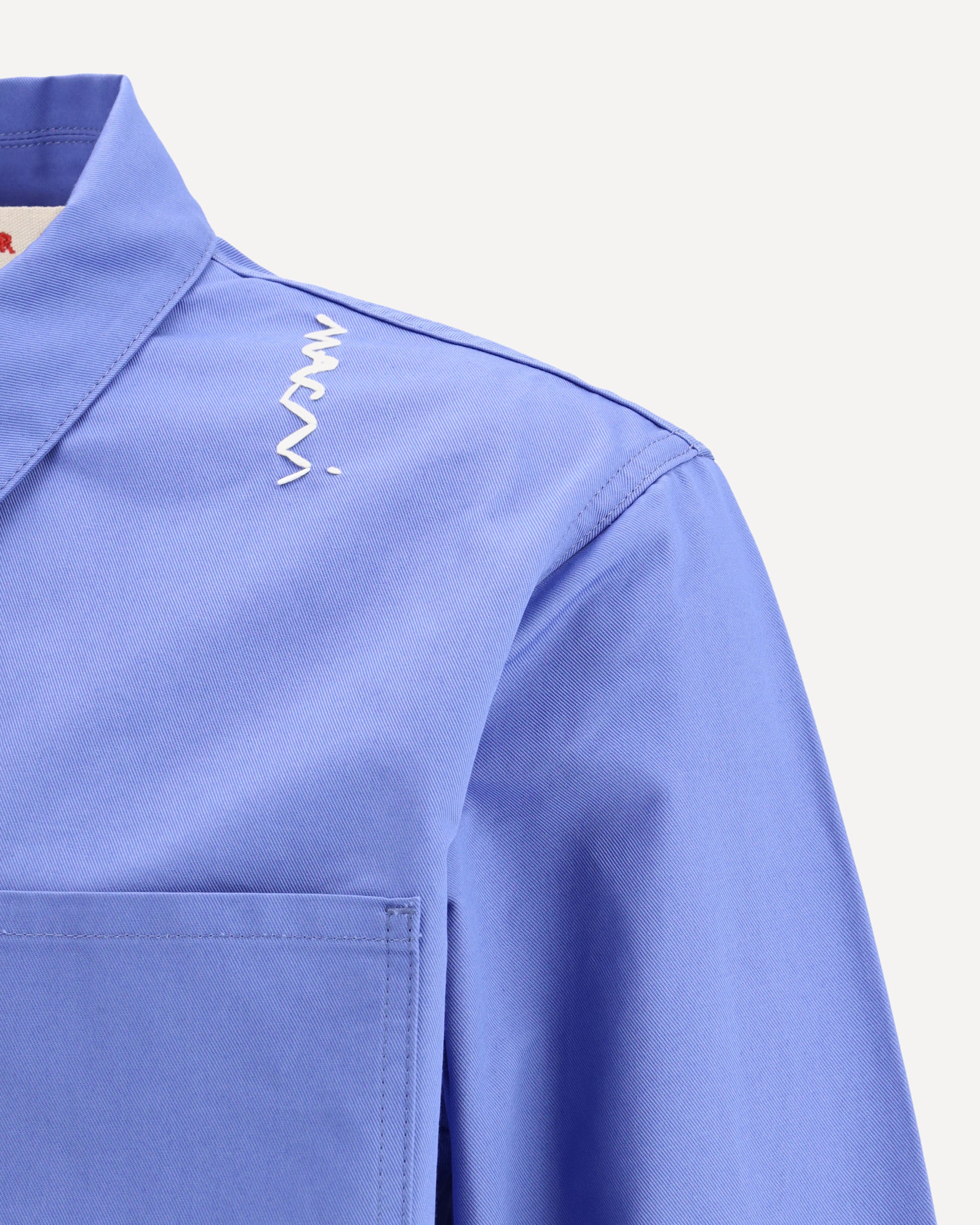 Marni's Cotton Shirt is a modern and sophisticated design, perfect for those looking for an elegant yet versatile look. The classic collar and zipper closure give a contemporary twist to the traditional shirt style. The two welt patch pockets on the front add a functional and stylish element, while the adjustable button cuffs allow for a customized fit. The denim design gives it a casual, versatile look that's ideal for an everyday look. The iconic monogram embroidered on the left shoulder adds a distinctive, luxe detail, complementing it with Marni's unique character.