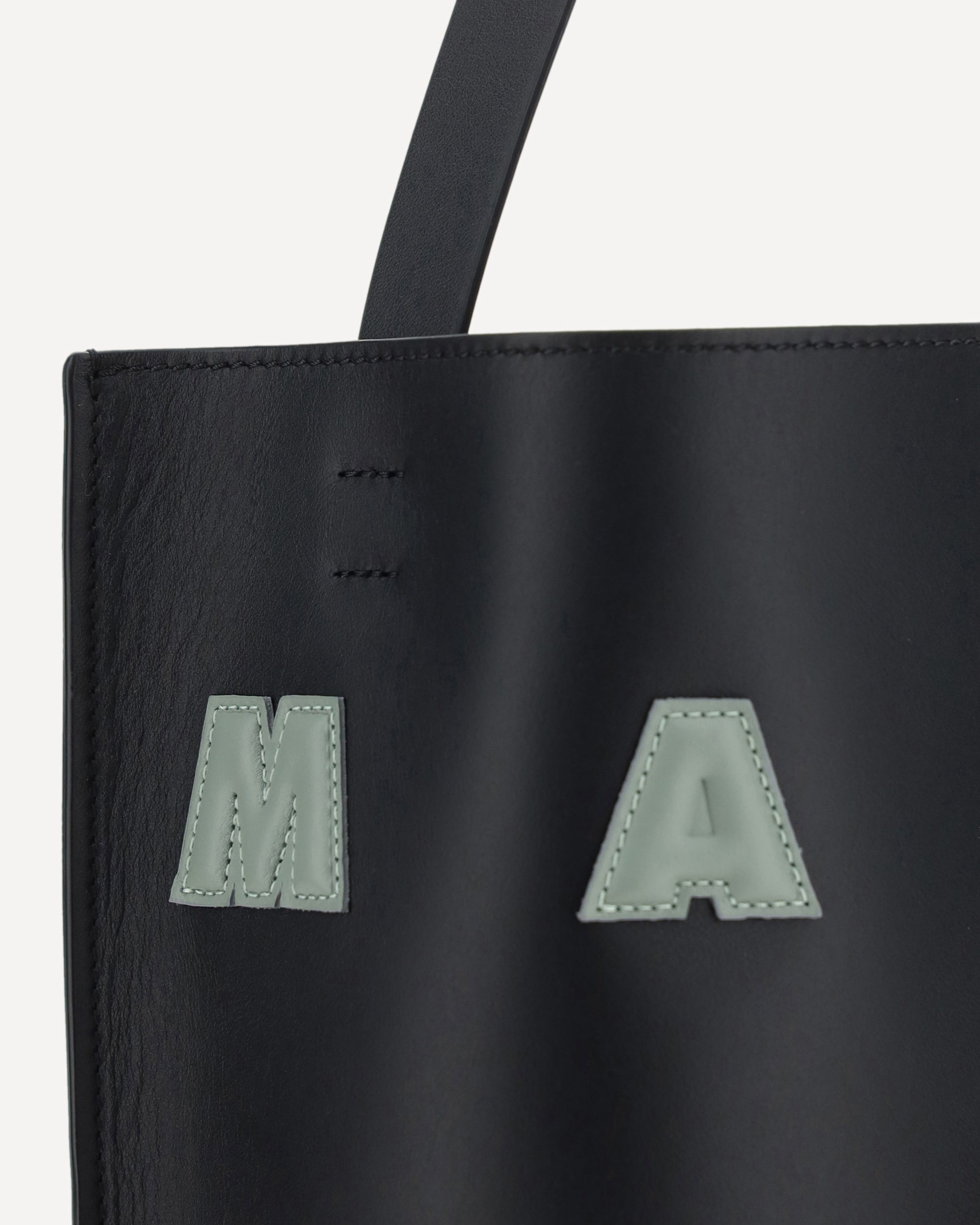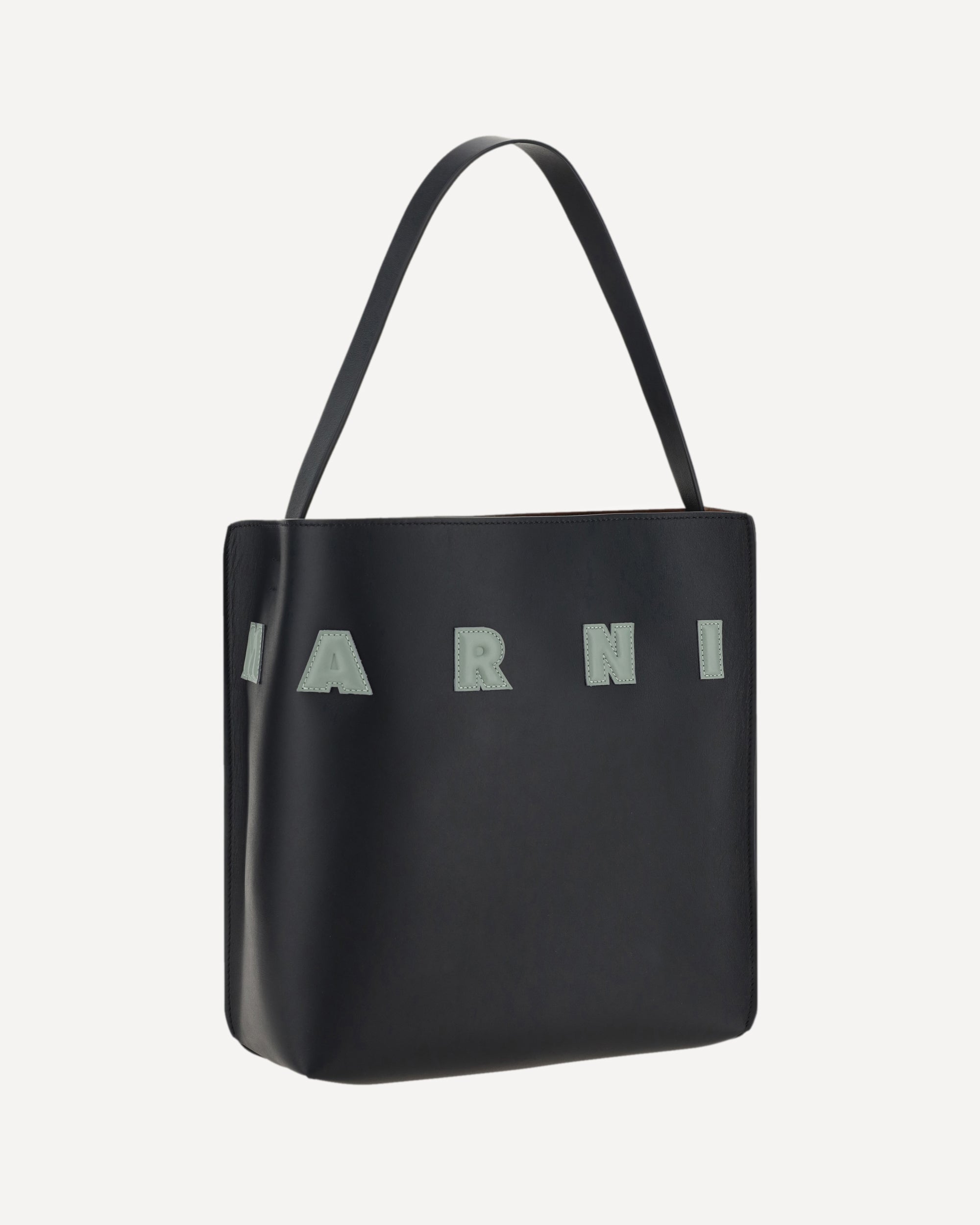 The leather Tote Bag by Marni stands out for its minimalist and sophisticated design, enhanced by a flat leather shoulder strap that guarantees comfort and practicality for everyday use. On the front, the brand's iconic contrasting signature adds a distinctive and instantly recognizable touch. The interior, organized into a single compartment, offers the ideal space to store your essentials in an orderly fashion, making this model an elegant and functional accessory, perfect for completing contemporary looks with personality.