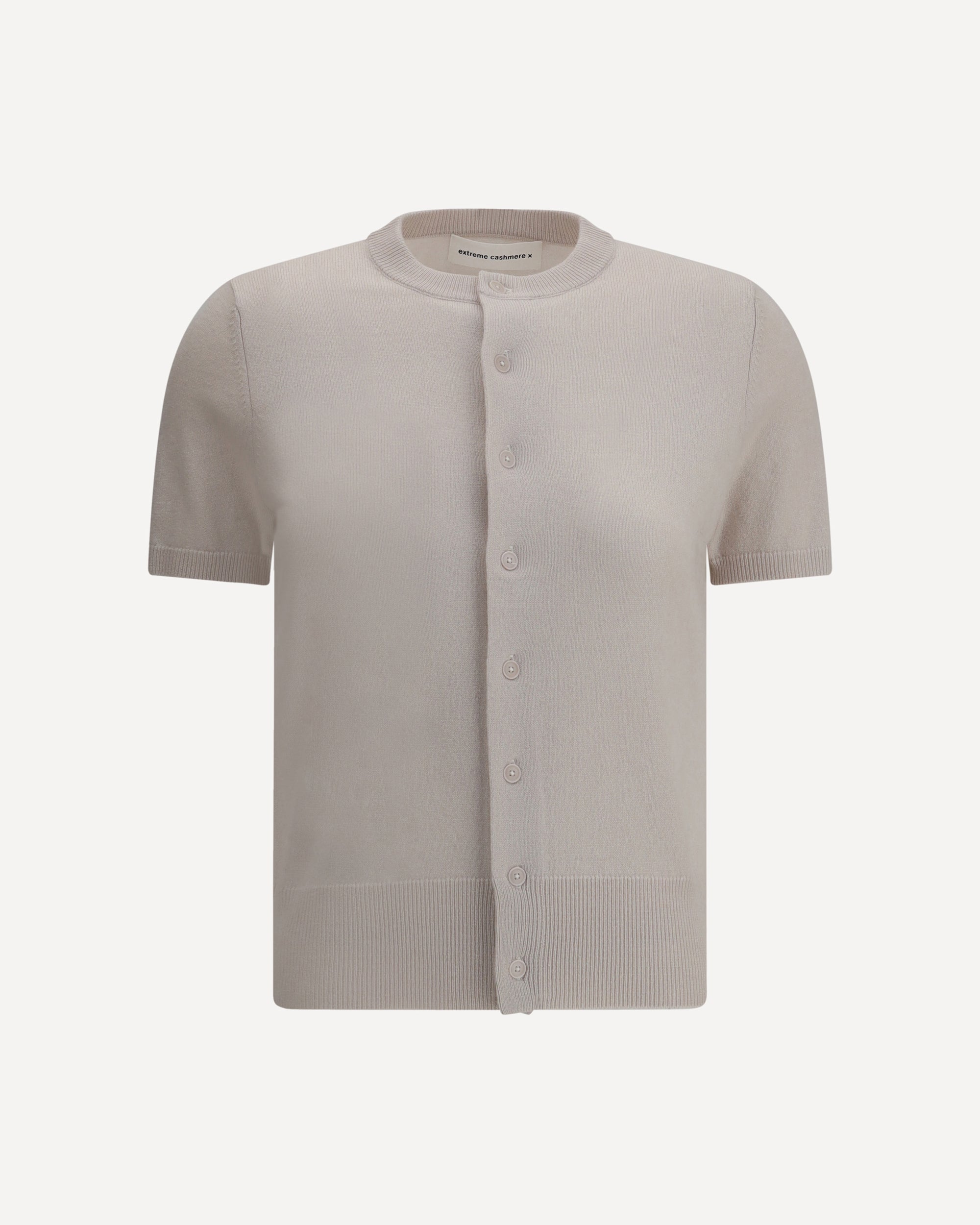 The Extreme Cashmere Cashmere Cardigan is a stylish and versatile piece, ideal for adding a touch of comfort and luxury to your wardrobe. The short sleeve design makes it perfect for warmer seasons or for layering in the winter. The ribbed crew neck adds a refined and soft detail, while the front button closure offers a practical fit and a sophisticated look. The wide ribbed hem gives a clean and structured finish, completing the simple yet classy design of this cardigan.