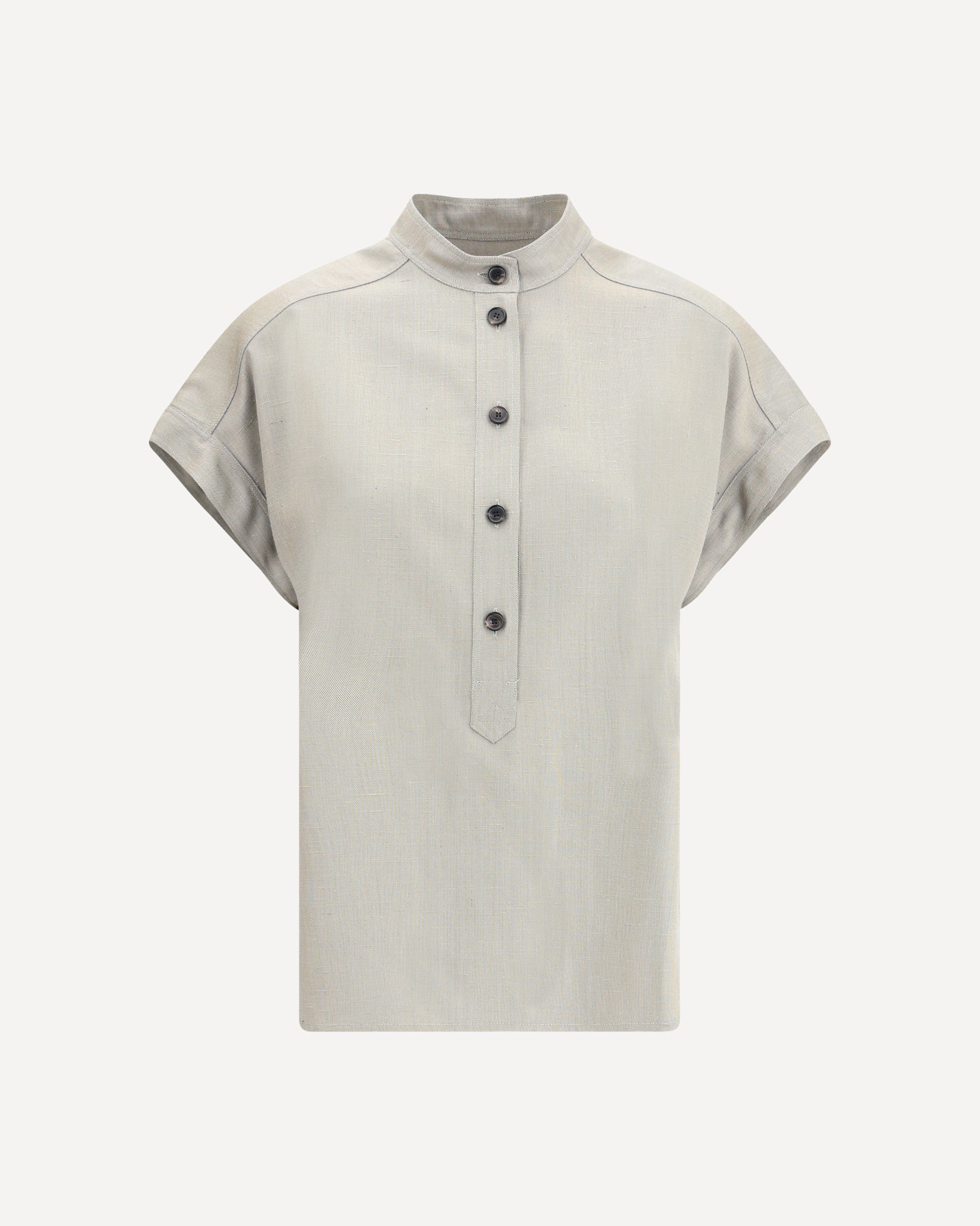 The Loro Piana Short Sleeve Shirt is an elegant and versatile piece, ideal for the warm season. The classic crew neck and the front half-length button closure give it a simple but sophisticated look. The two side slits add a dynamic and modern detail, also offering greater freedom of movement. Made with high-quality materials, this shirt is perfect for a refined and comfortable look, which easily adapts to different combinations, from casual to more elegant.
