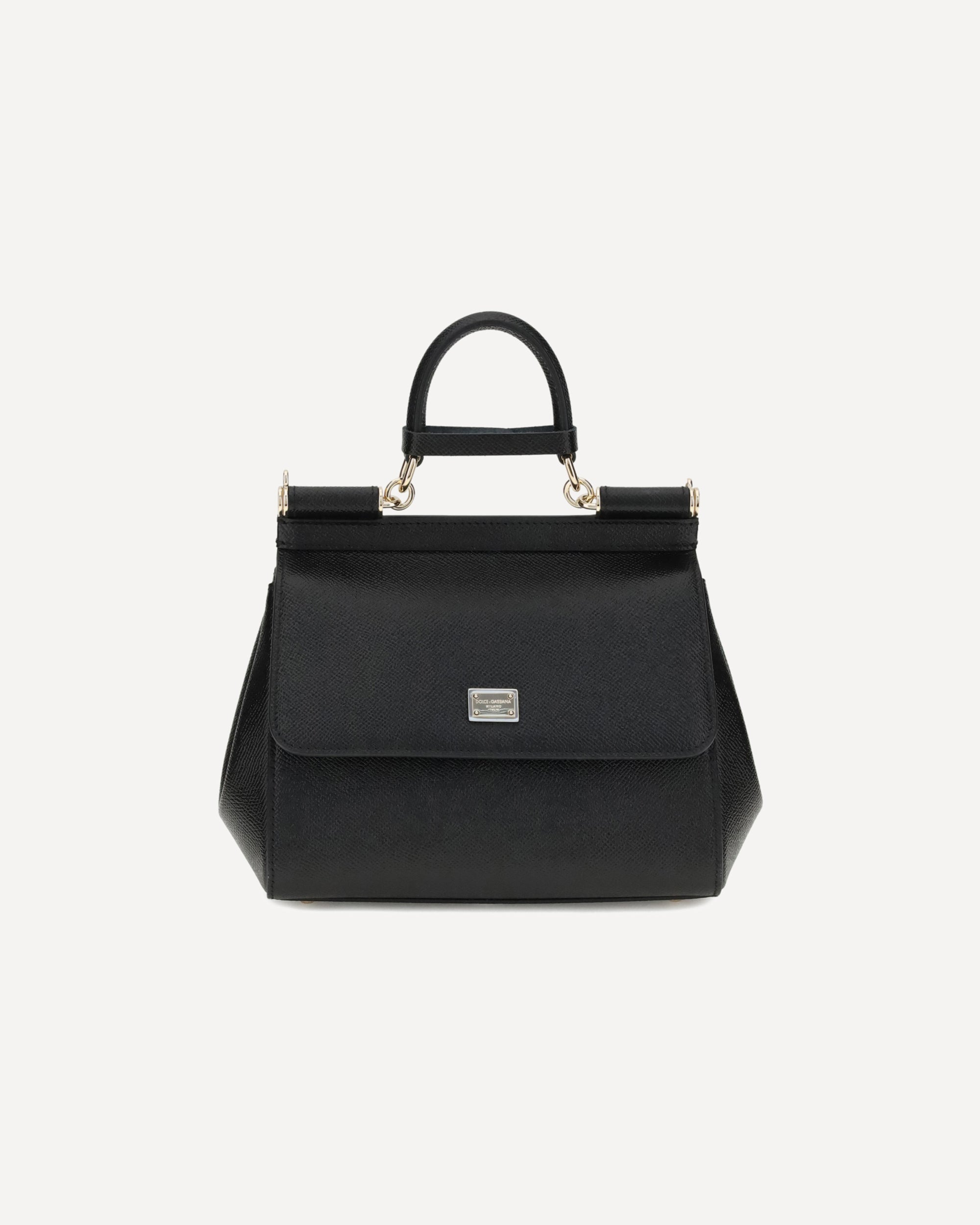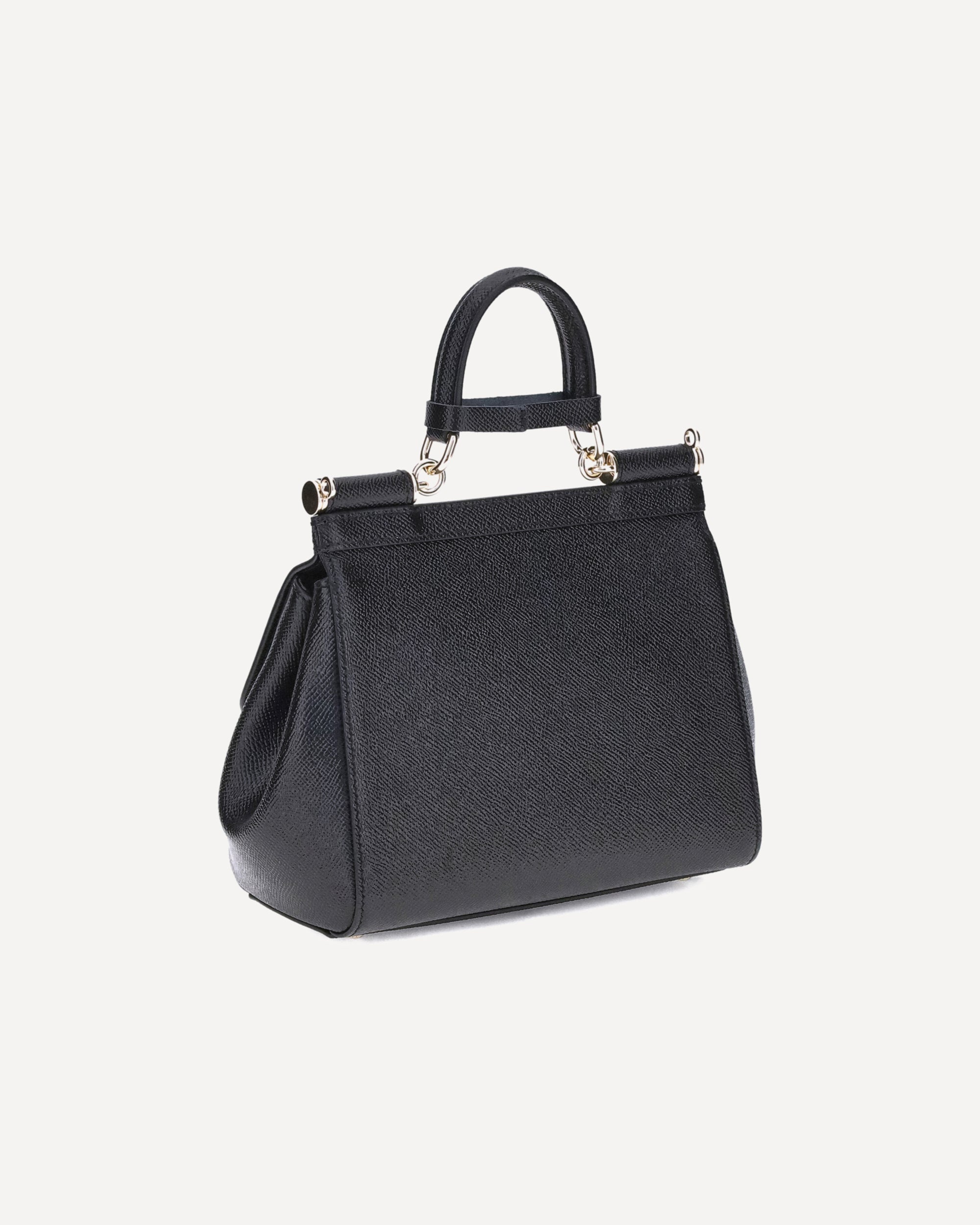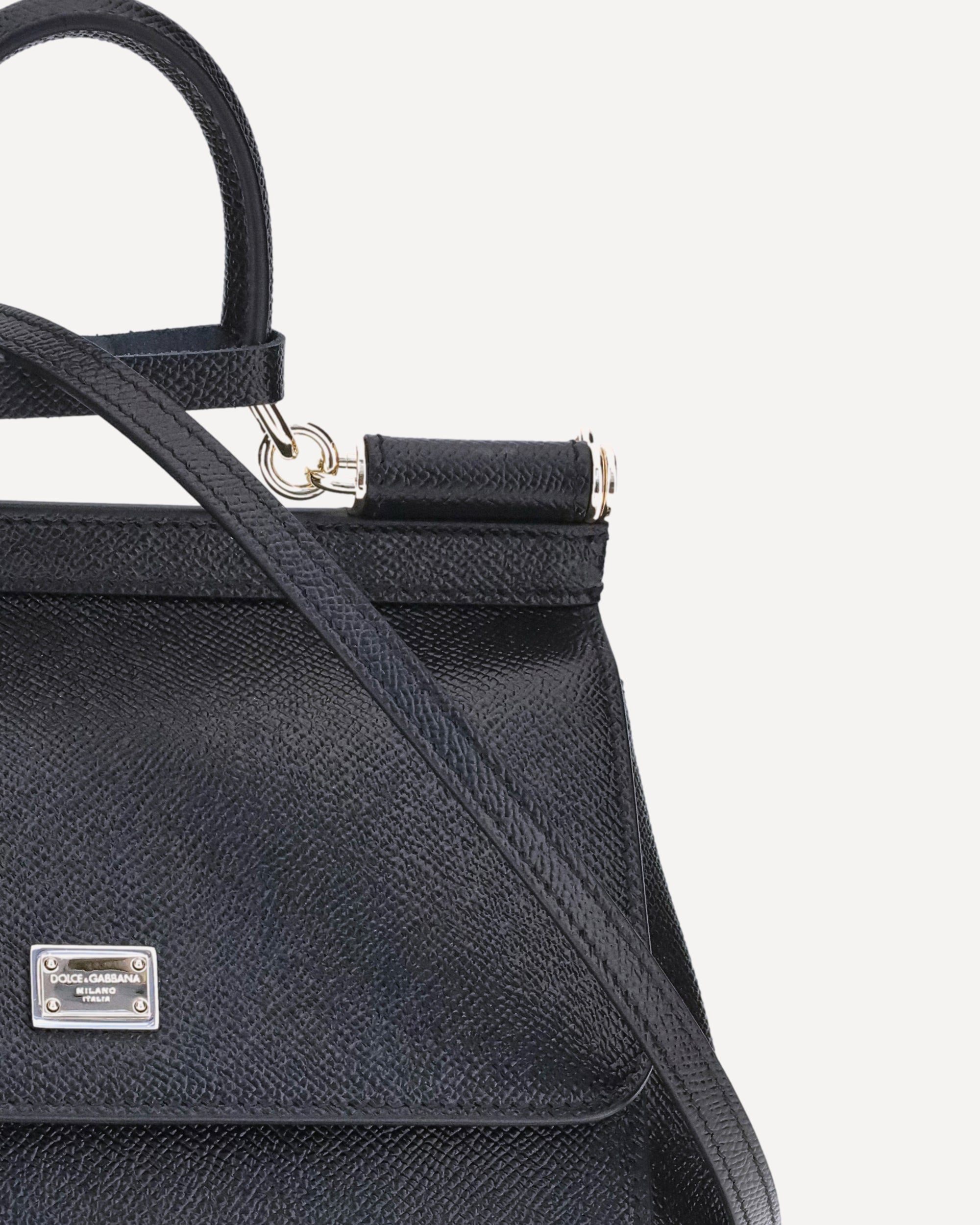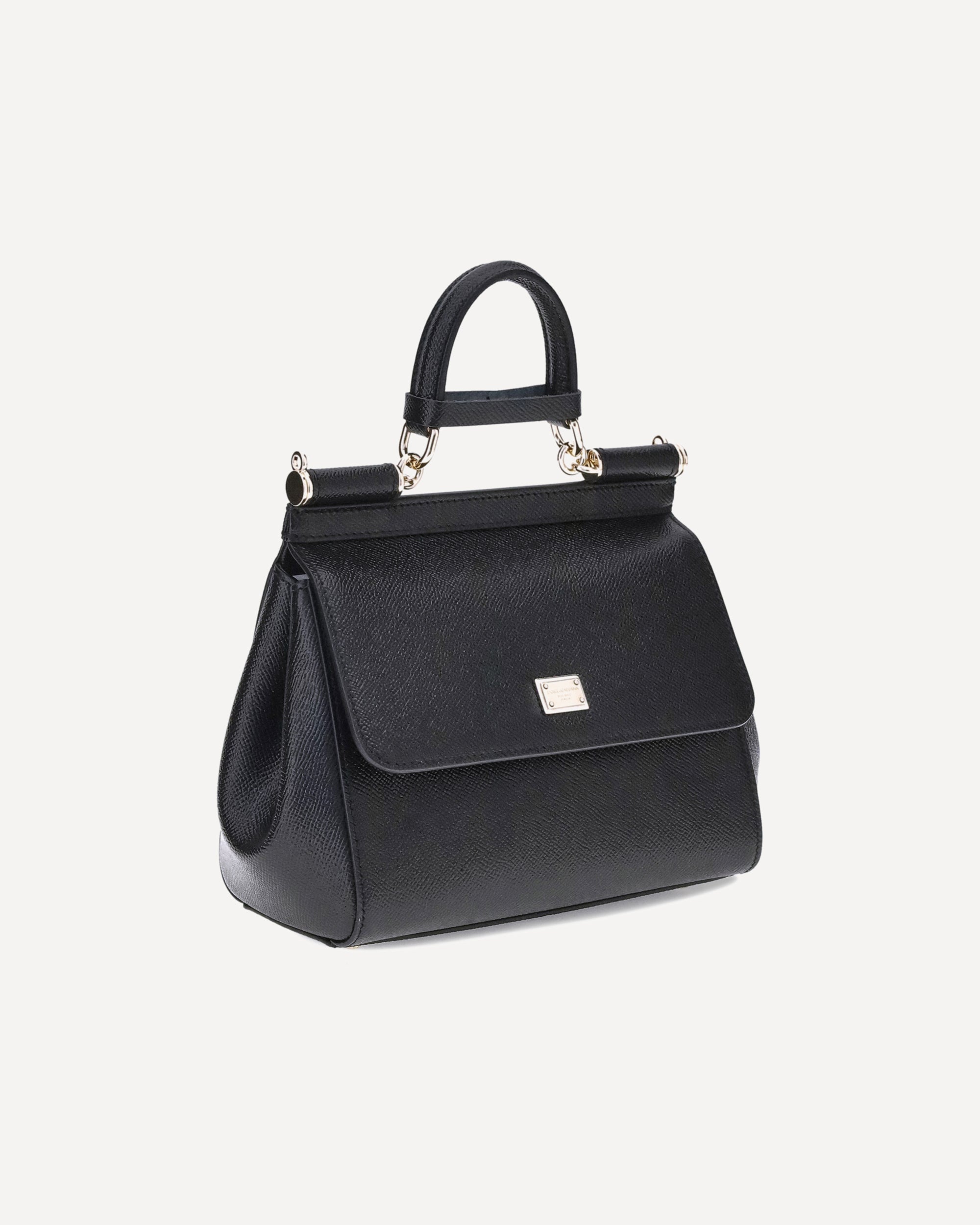 Dolce&Gabbana's leather Handbag embodies the house's timeless elegance and signature sophistication. Featuring a rigid top handle, it offers sophisticated portability, while the flat, adjustable and removable shoulder strap adds practicality and versatility. The front flap closure with magnetic buttons provides security, while the applied logo hardware on the front adds a distinctive touch. The interior, with a single compartment, is designed to store essentials in style and order.