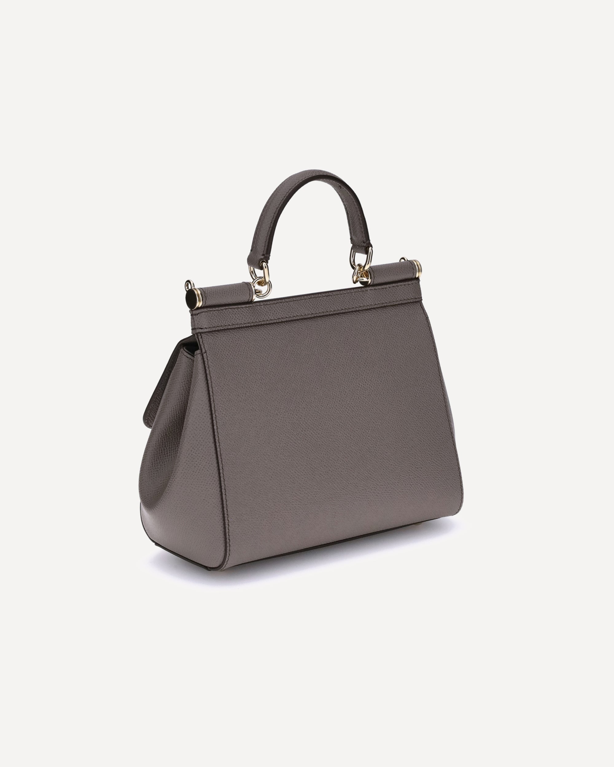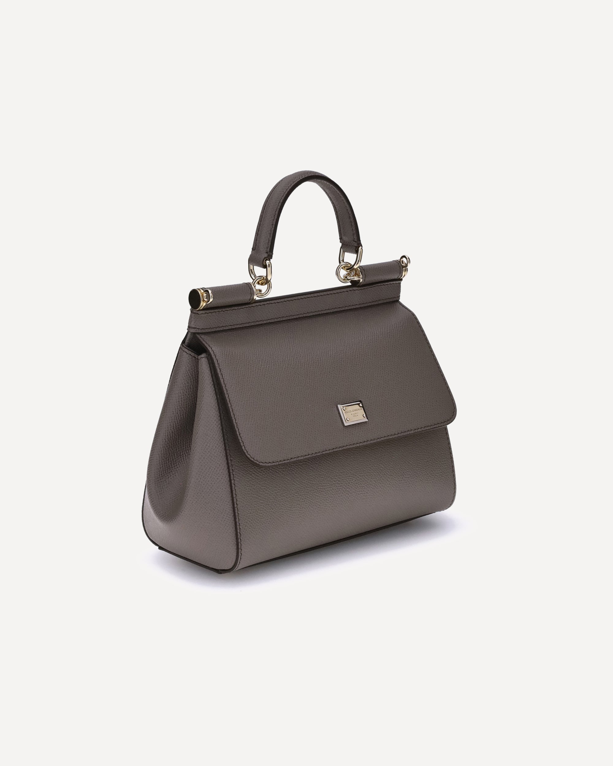 Dolce&Gabbana's leather Handbag embodies the house's timeless elegance and signature sophistication. Featuring a rigid top handle, it offers sophisticated portability, while the flat, adjustable and removable shoulder strap adds practicality and versatility. The front flap closure with magnetic buttons provides security, while the applied logo hardware on the front adds a distinctive touch. The interior, with a single compartment, is designed to store essentials in style and order.