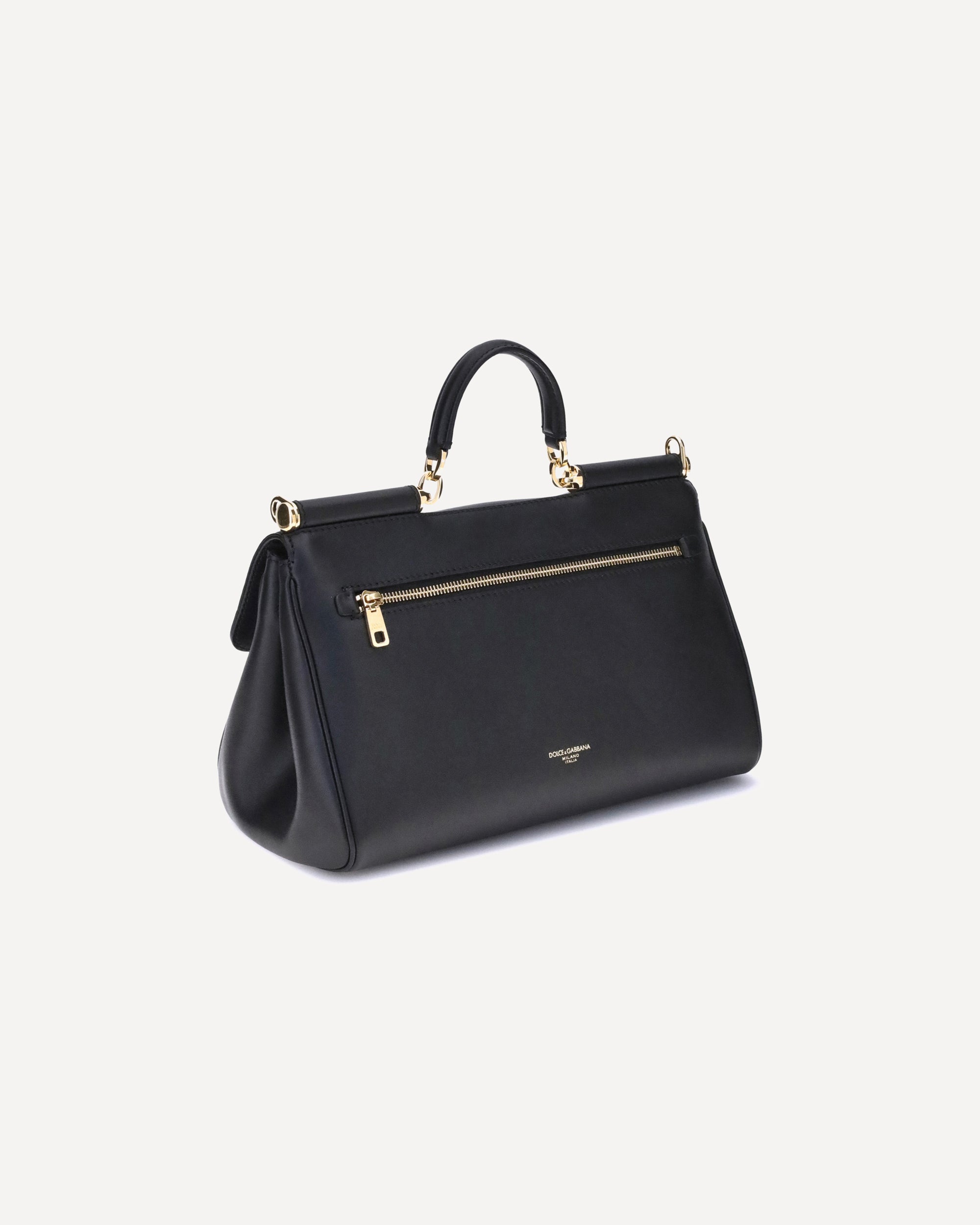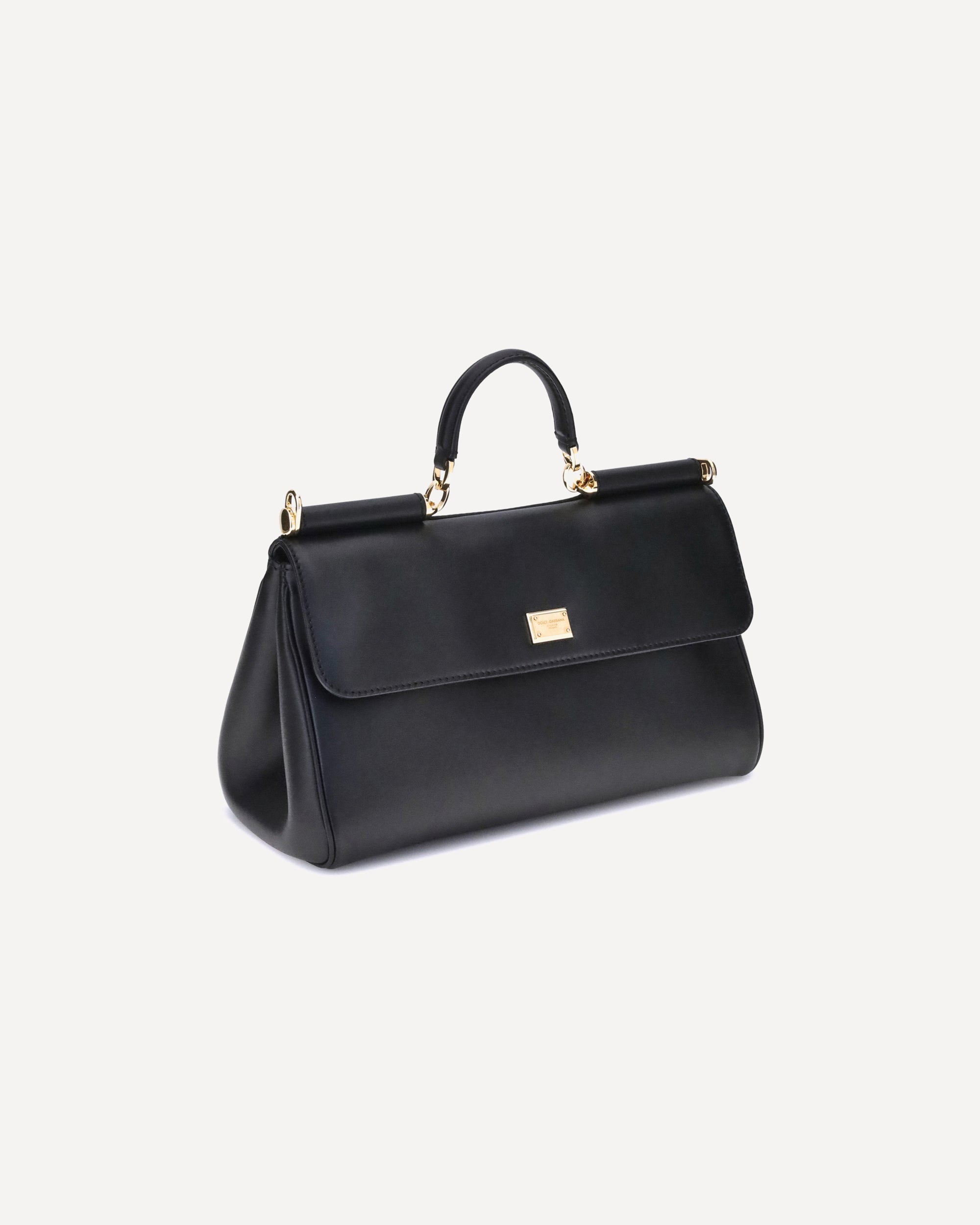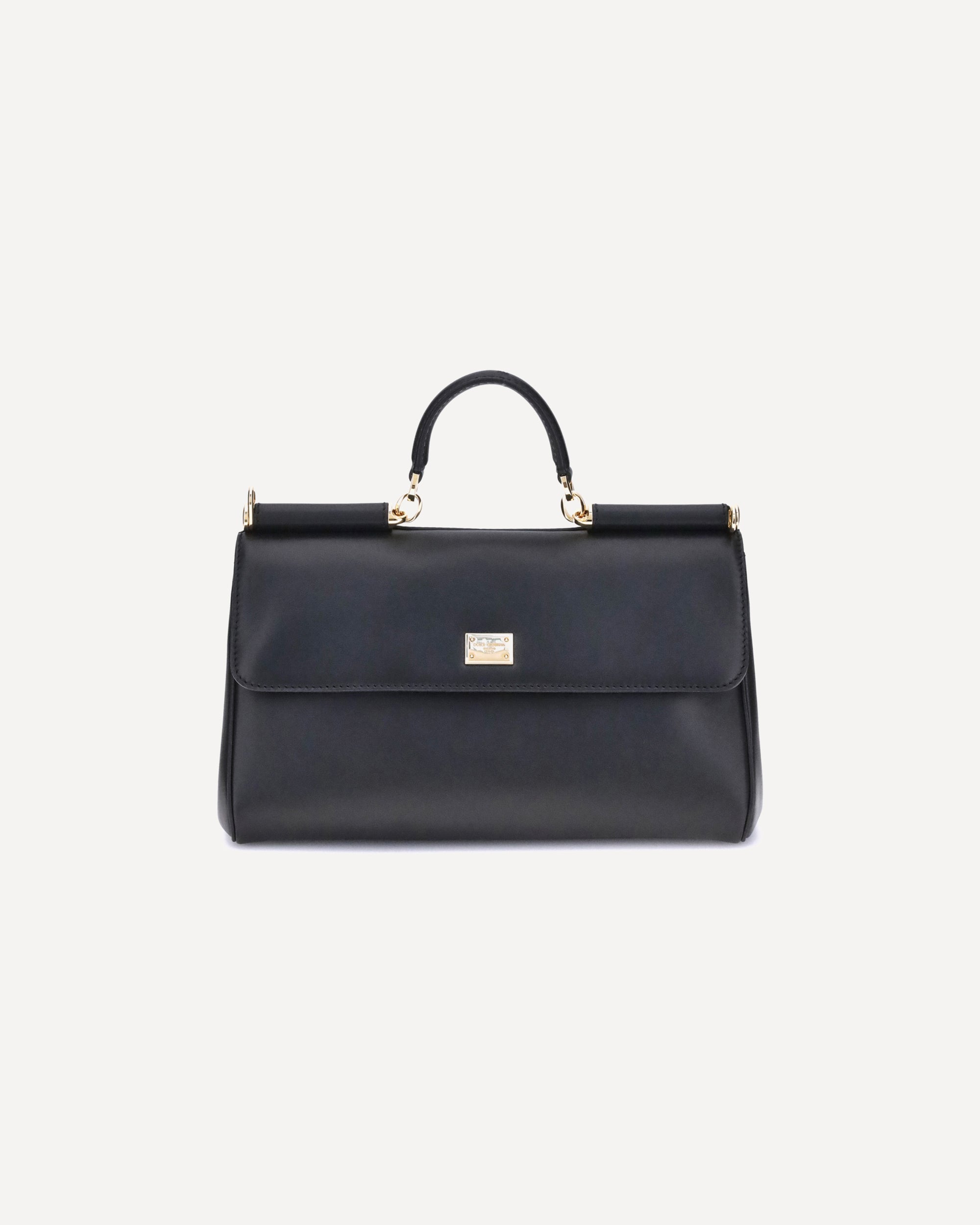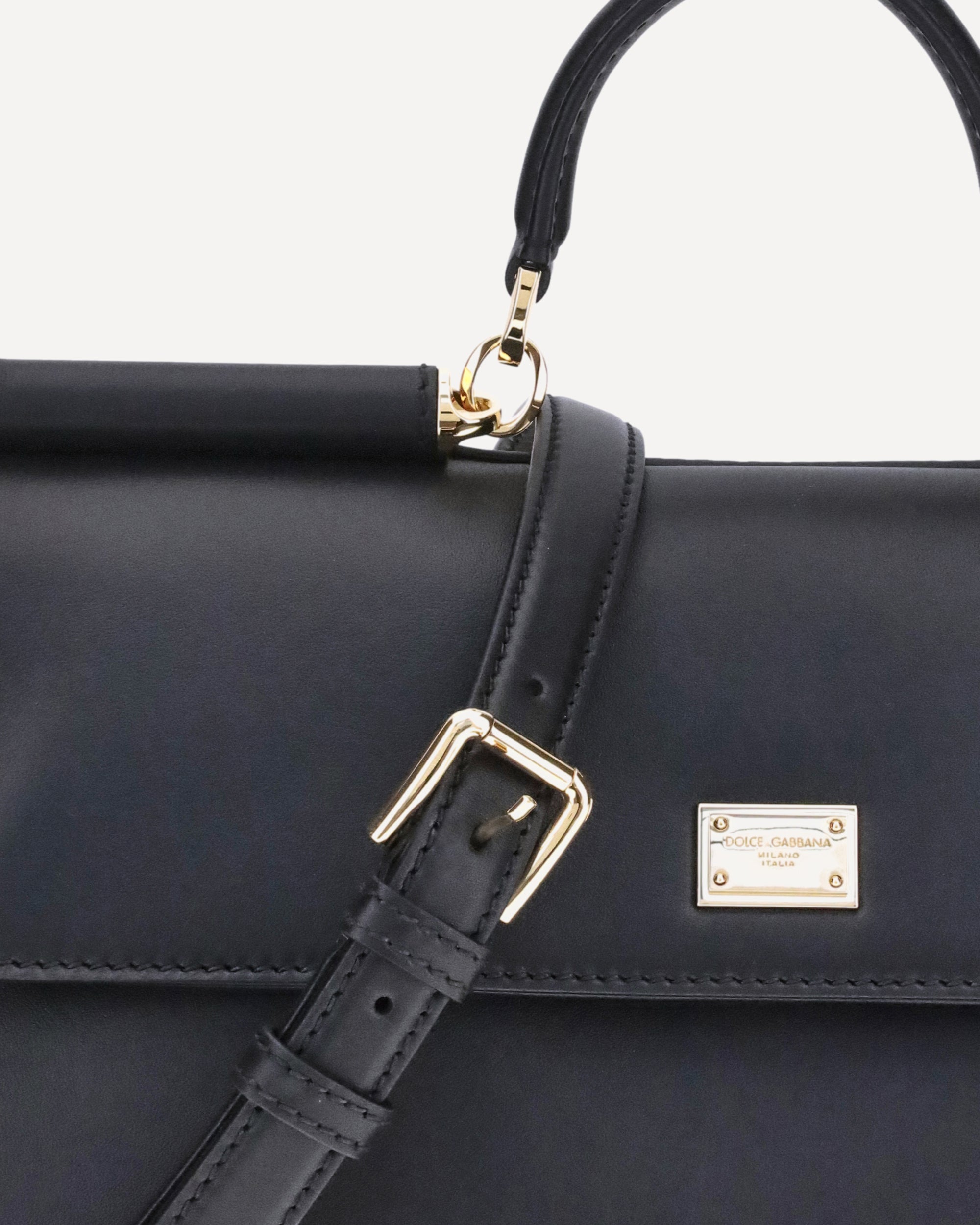 My Sicily leather Handbag by Dolce&Gabbana embodies the house's timeless elegance and signature sophistication. Featuring a rigid top handle, it offers sophisticated portability, while the flat, adjustable and removable shoulder strap adds practicality and versatility. The front flap closure with magnetic buttons provides security, while applied logo hardware on the front adds a distinctive touch. The interior, with a single compartment, is designed to store essentials in style and order.