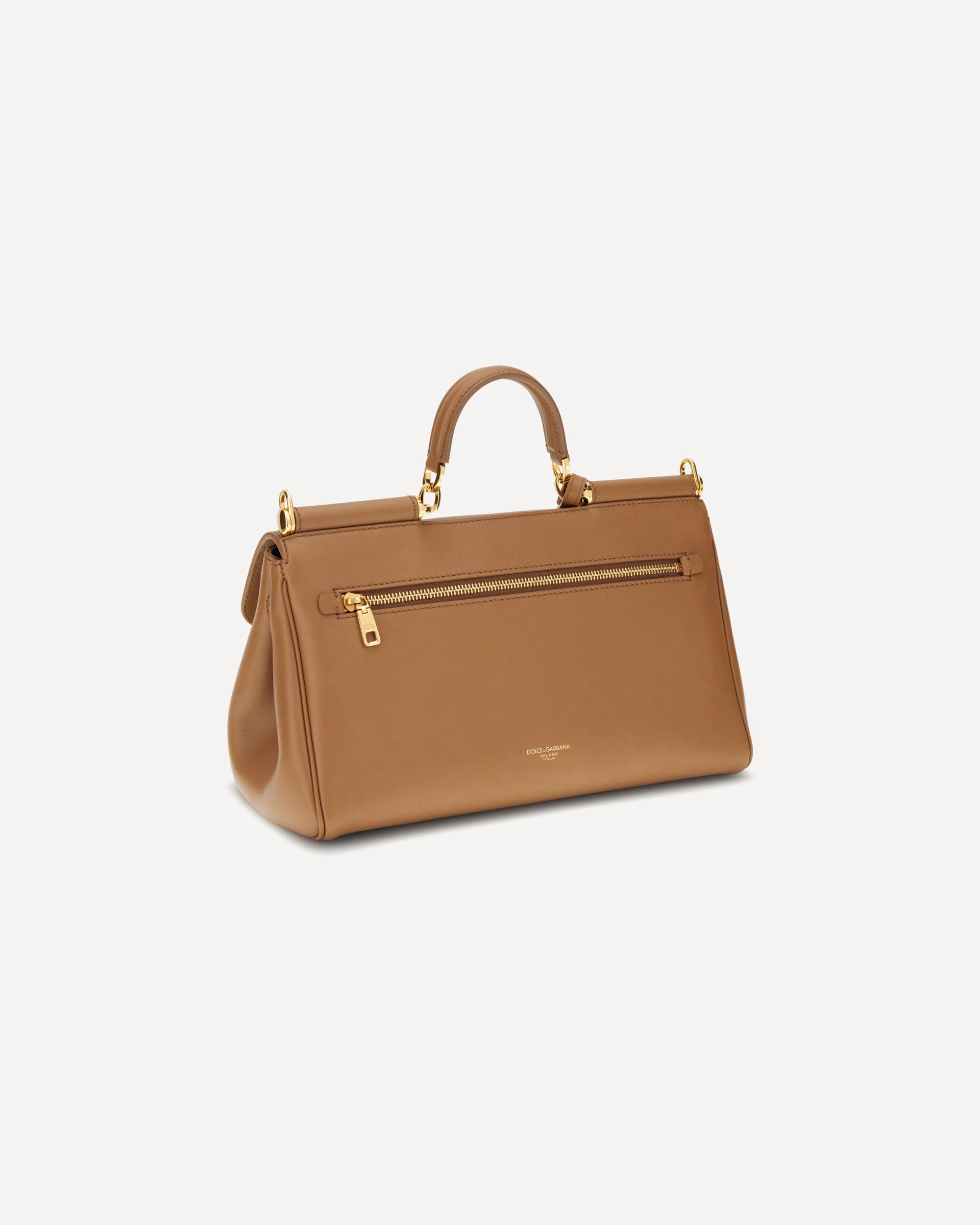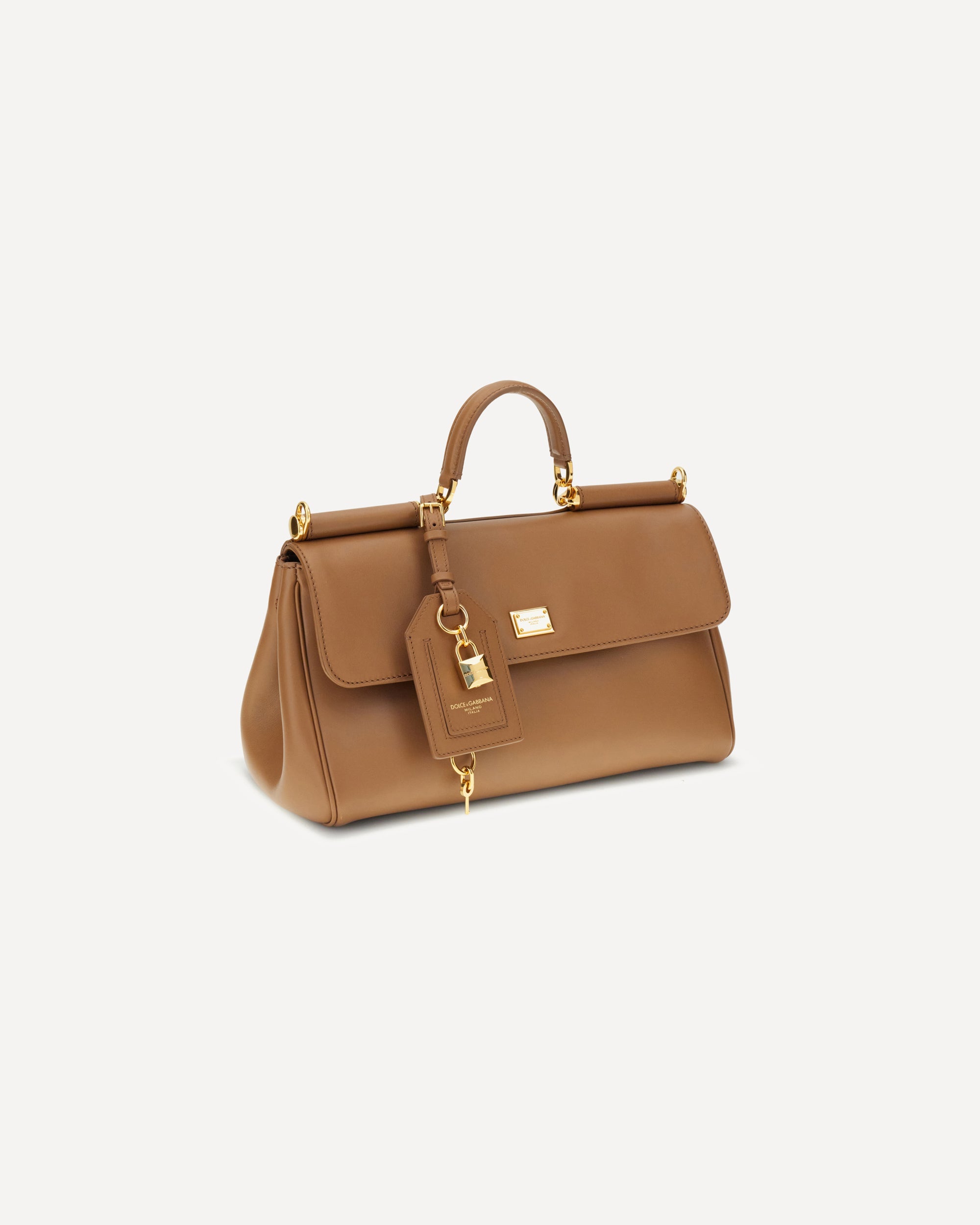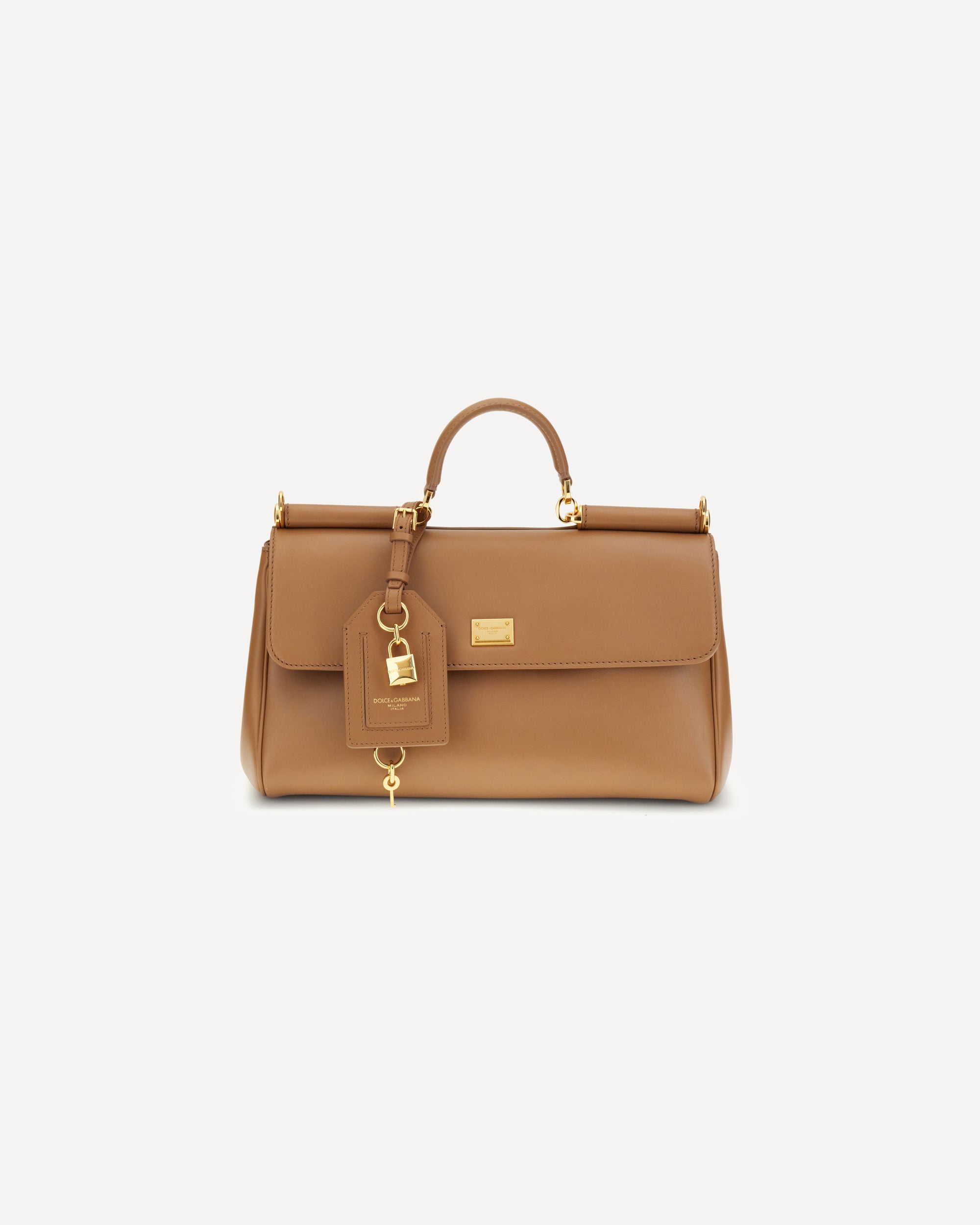 My Sicily leather Handbag by Dolce&Gabbana embodies the house's timeless elegance and signature sophistication. Featuring a rigid top handle, it offers sophisticated portability, while the flat, adjustable and removable shoulder strap adds practicality and versatility. The front flap closure with magnetic buttons provides security, while applied logo hardware on the front adds a distinctive touch. The interior, with a single compartment, is designed to store essentials in style and order.