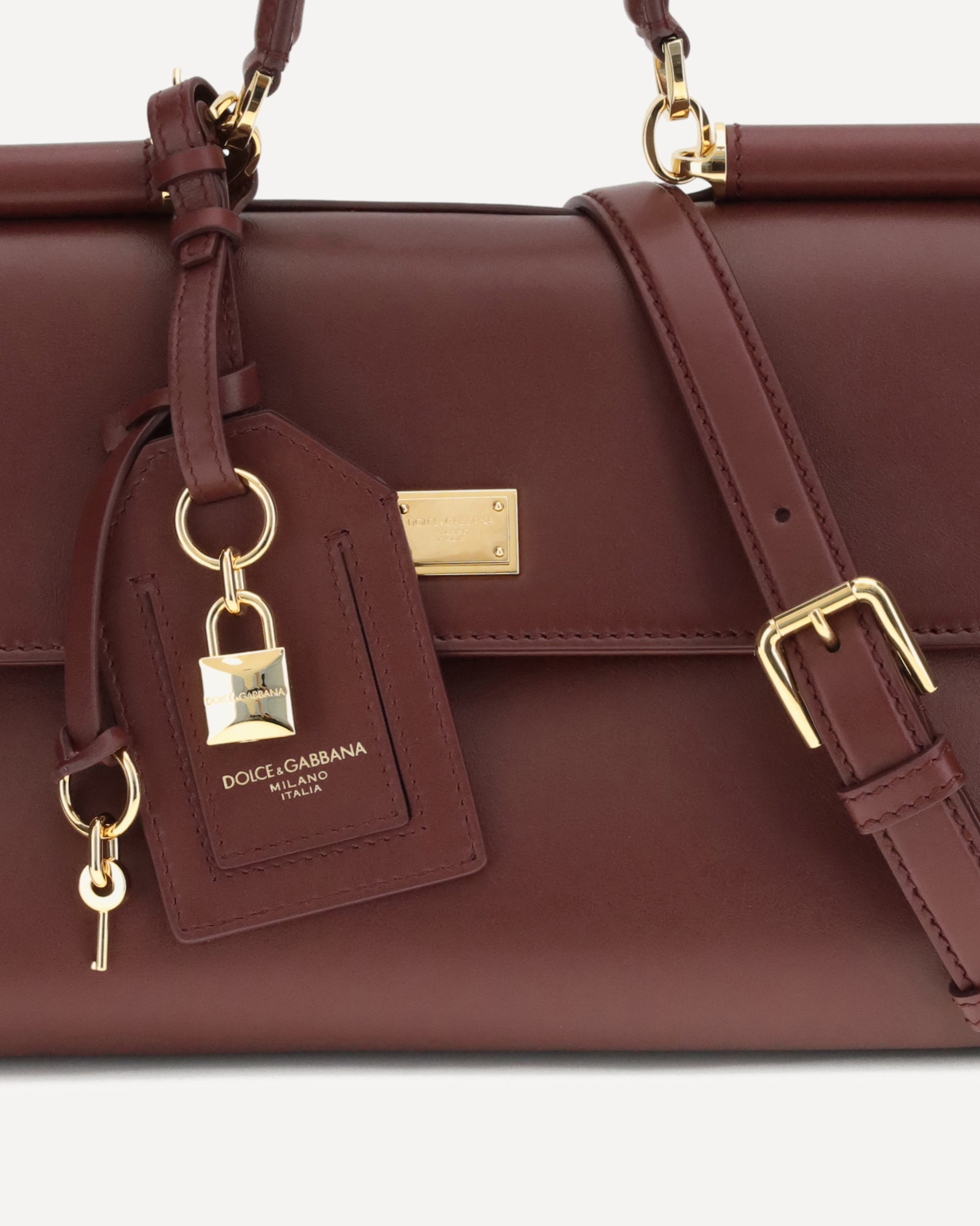 My Sicily leather Handbag by Dolce&Gabbana embodies the house's timeless elegance and signature sophistication. Featuring a rigid top handle, it offers sophisticated portability, while the flat, adjustable and removable shoulder strap adds practicality and versatility. The front flap closure with magnetic buttons provides security, while applied logo hardware on the front adds a distinctive touch. The interior, with a single compartment, is designed to store essentials in style and order.
