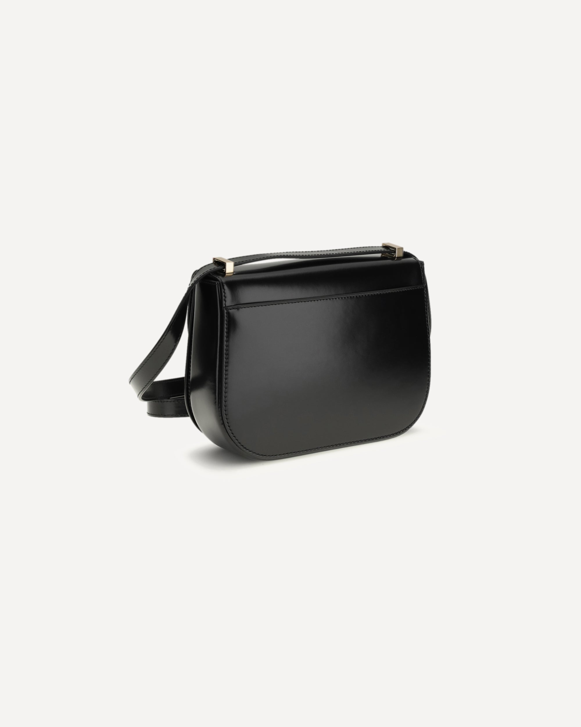 The North-South Double Gancini Shoulder Bag by Ferragamo is a sophisticated interpretation of the brand's tradition. Crafted in calfskin with a glossy finish, it features a shaped front flap decorated with double Gancini in a gold finish, a symbol of timeless elegance. The front pockets with gussets and the back pocket, together with the slots in the central compartment, offer ample space for personal belongings. The adjustable shoulder strap allows it to be worn comfortably across the body or on the shoulder.