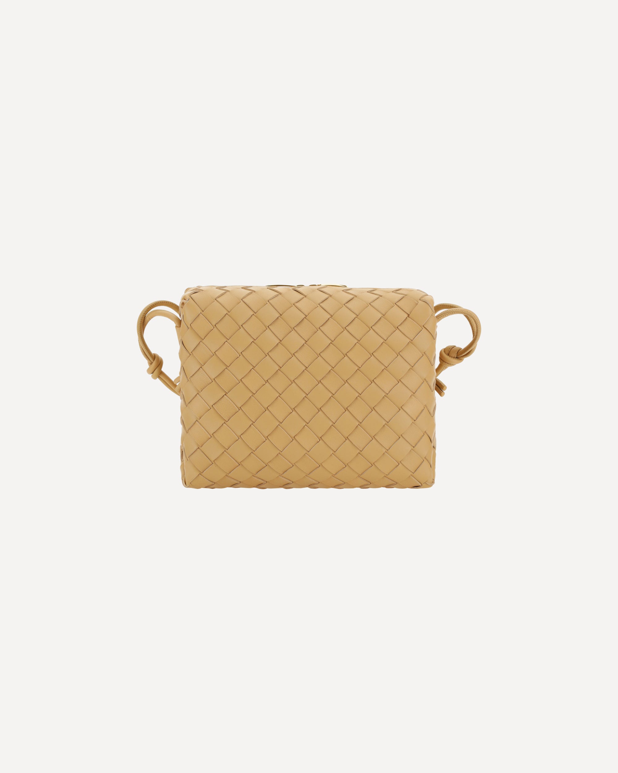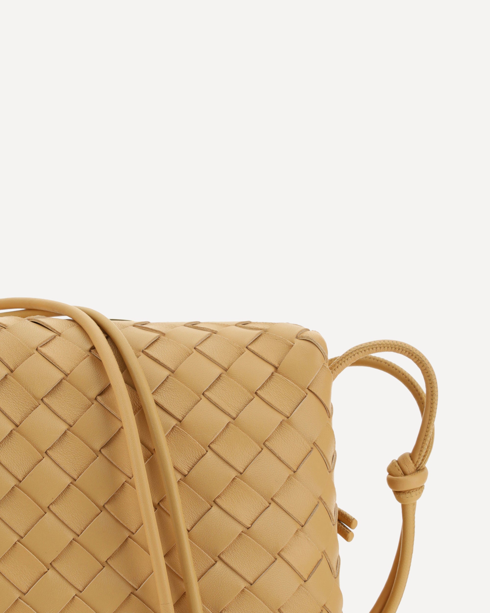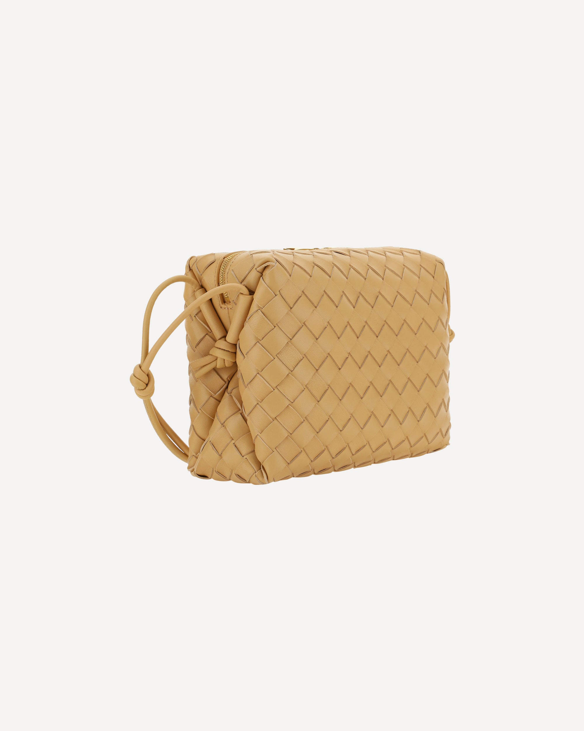 The lambskin Shoulder Bag by Bottega Veneta, double thin shoulder strap with iconic knotted details at the base, top closure by a double-slider zipper, the brand's iconic intrecciato design, lambskin-lined interior with Intrecciato pattern, single internal compartment.