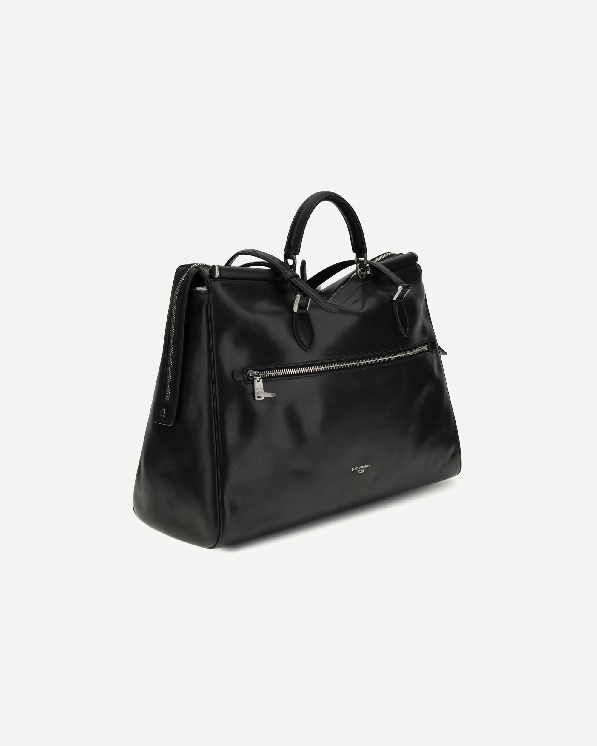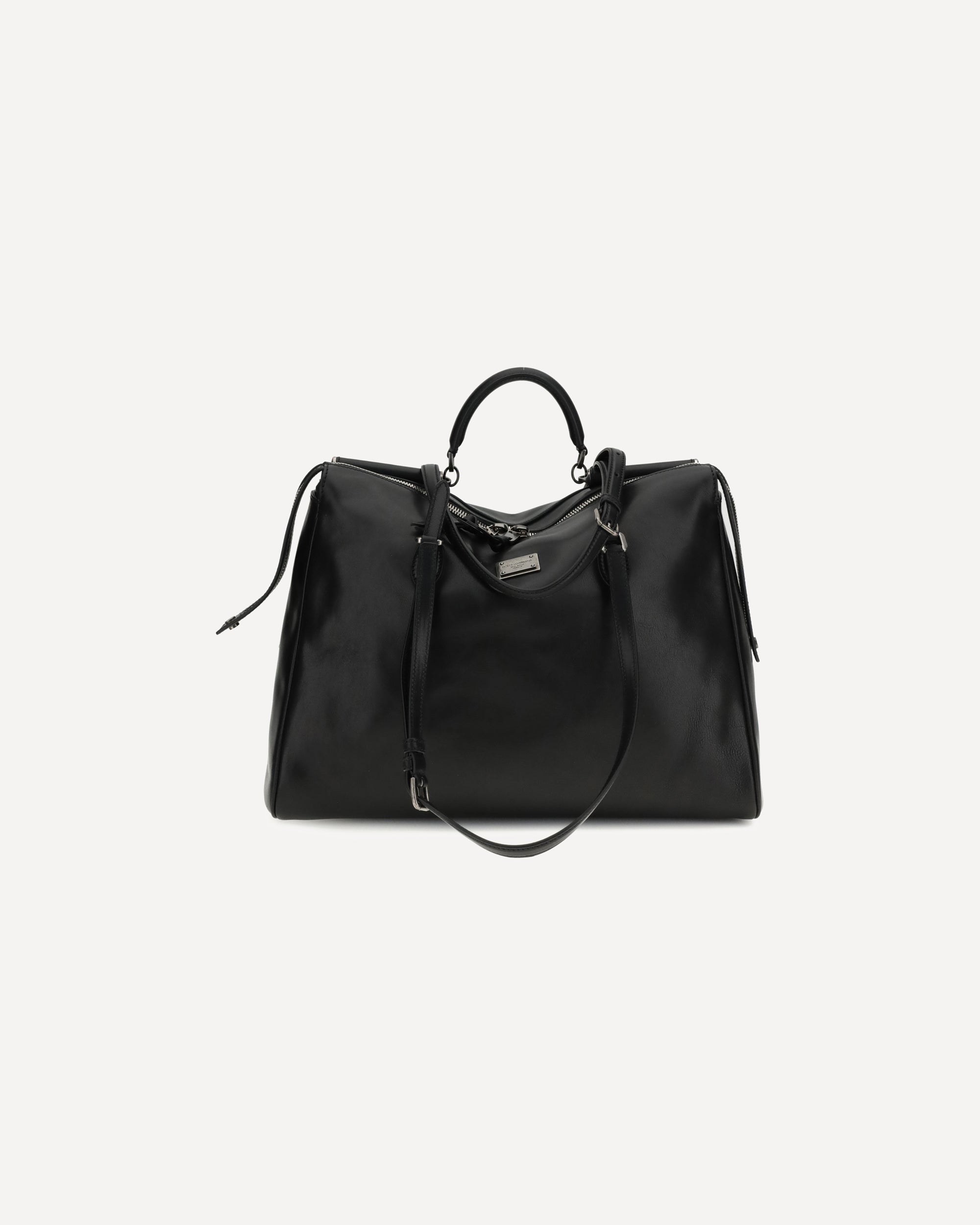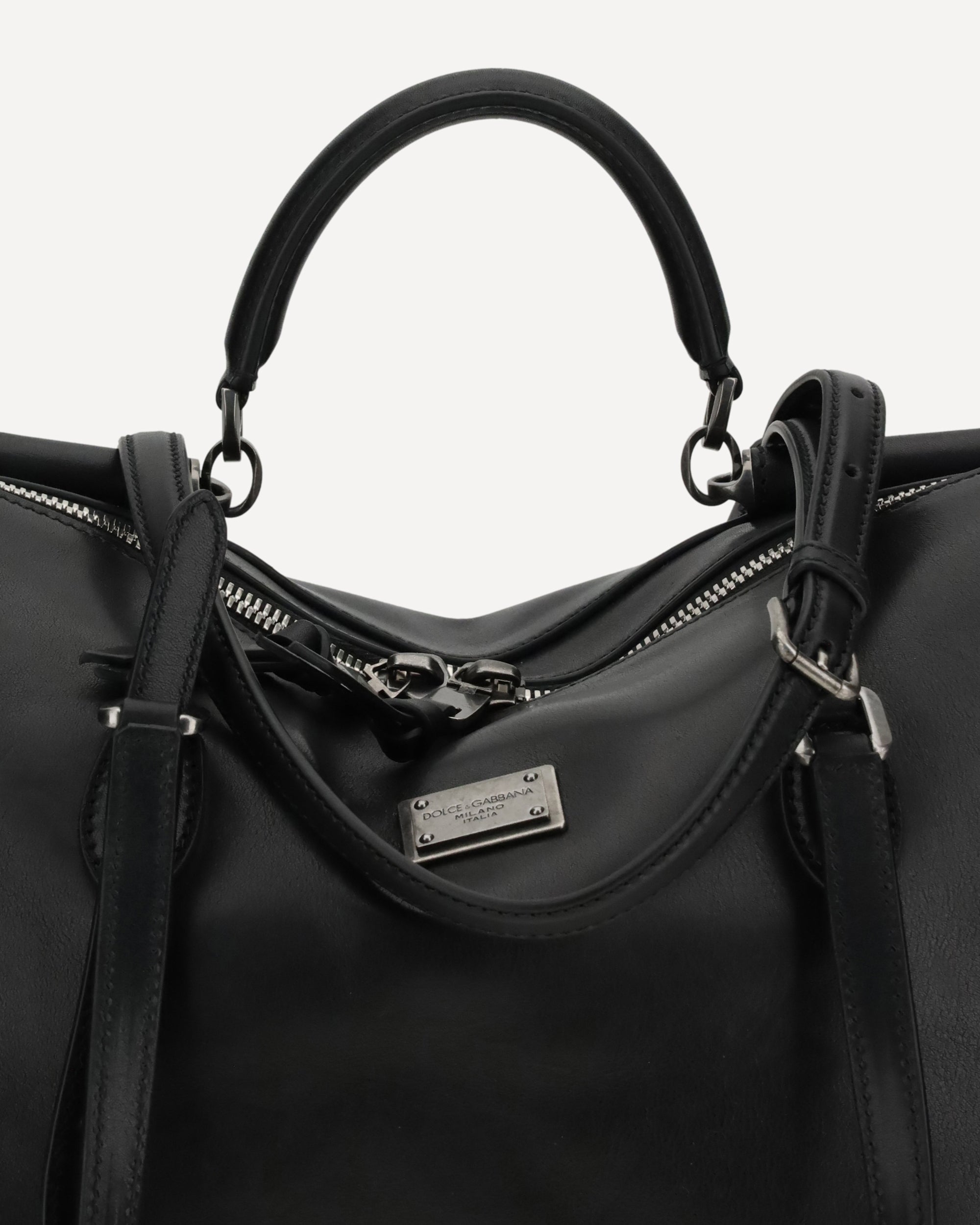 The Vittoria Shoulder Bag by Dolce & Gabbana is a sophisticated and structured piece, designed to accompany your everyday life in style. Crafted with leather handles and a top zip closure, it stands out for its matte antique nickel titanium plating, lending it a vintage elegance. The exterior is embellished with a mono-plated logo tag, while the interior features a personalized stamp and foil. The interior organization includes a zip pocket and a flat pocket, perfect for keeping everything neat and tidy.